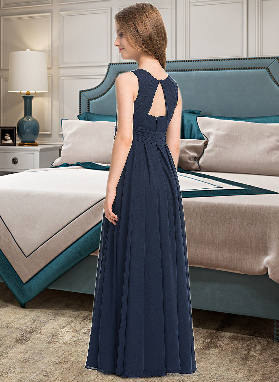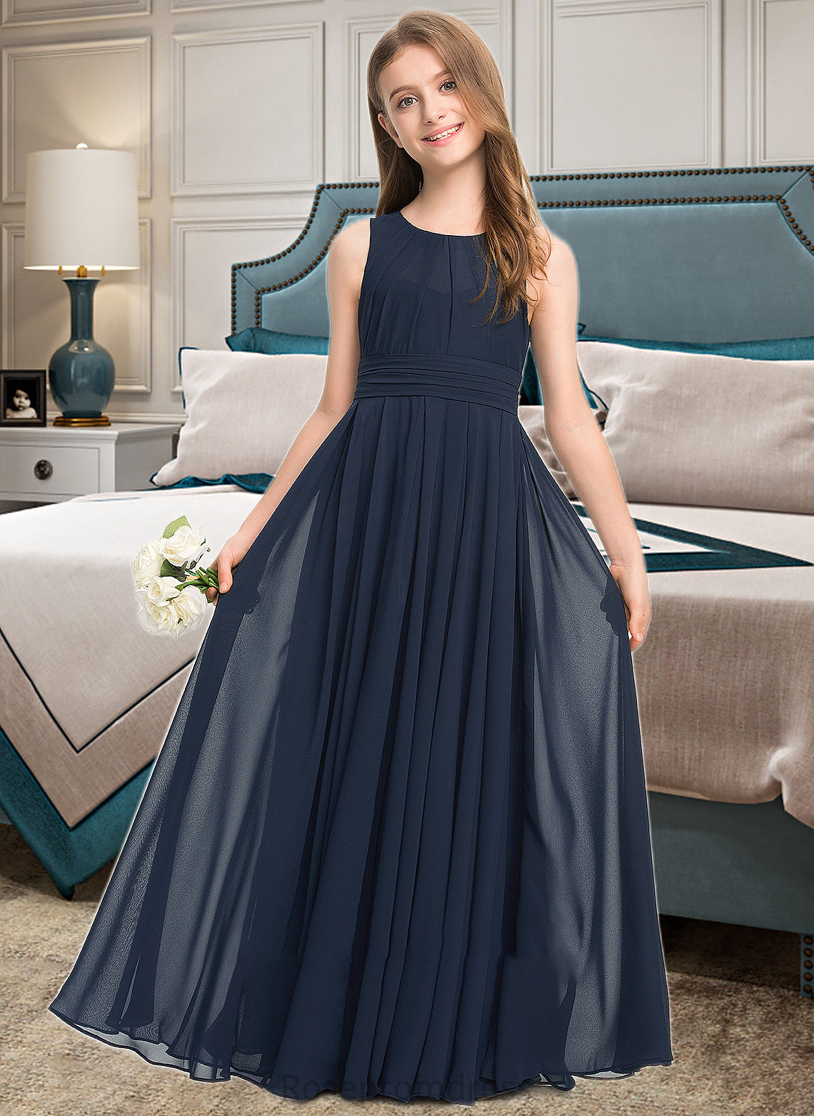Ashley A-Line Scoop Neck Floor-Length Chiffon Junior Bridesmaid Dress With Ruffle SRSP0013441