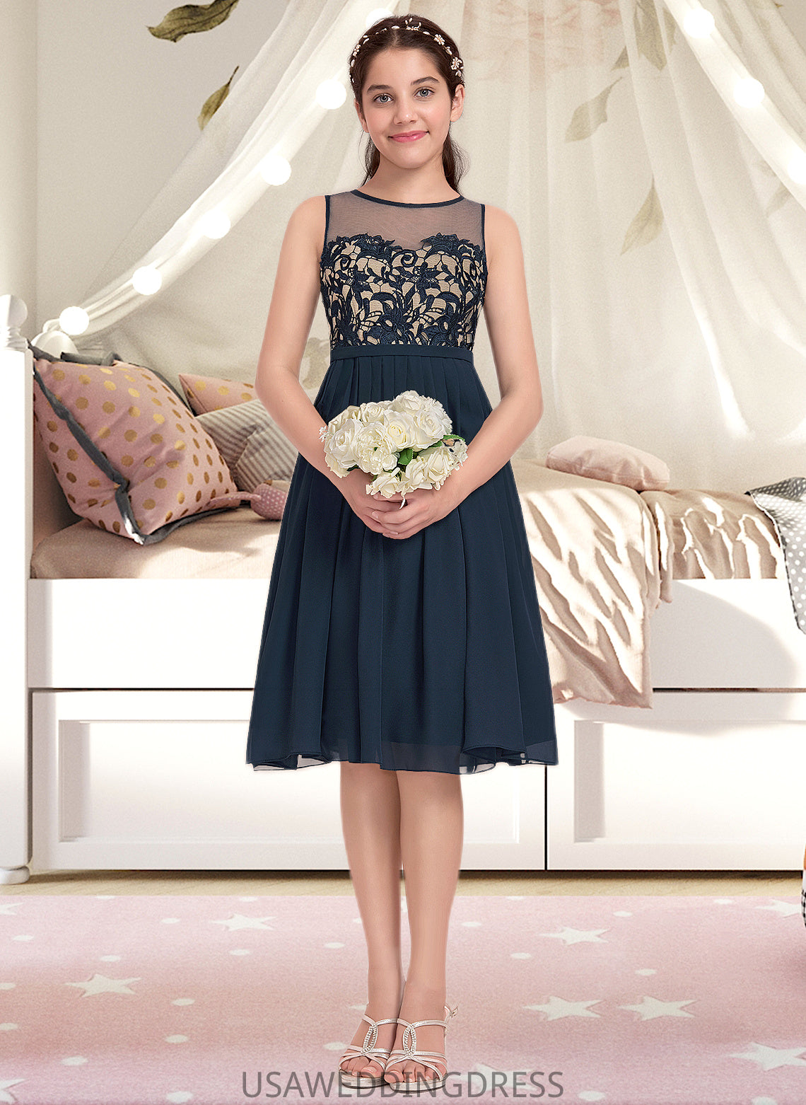 Ashley A-Line Scoop Neck Knee-Length Chiffon Junior Bridesmaid Dress DSP0013614