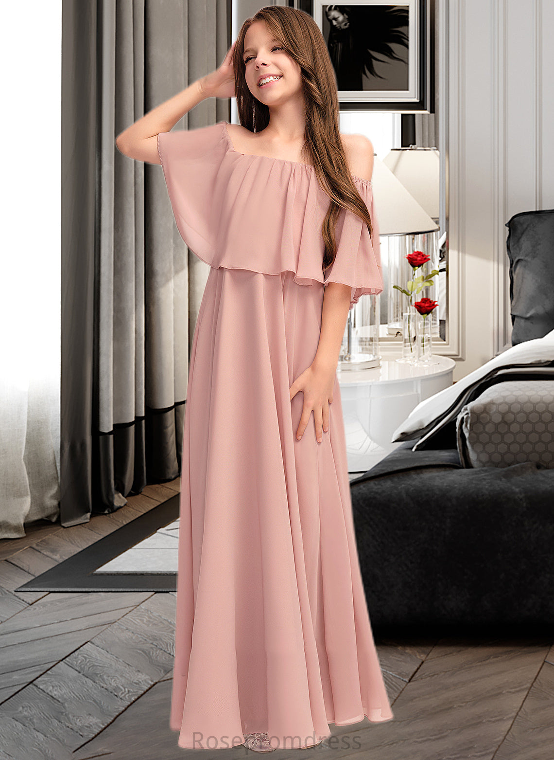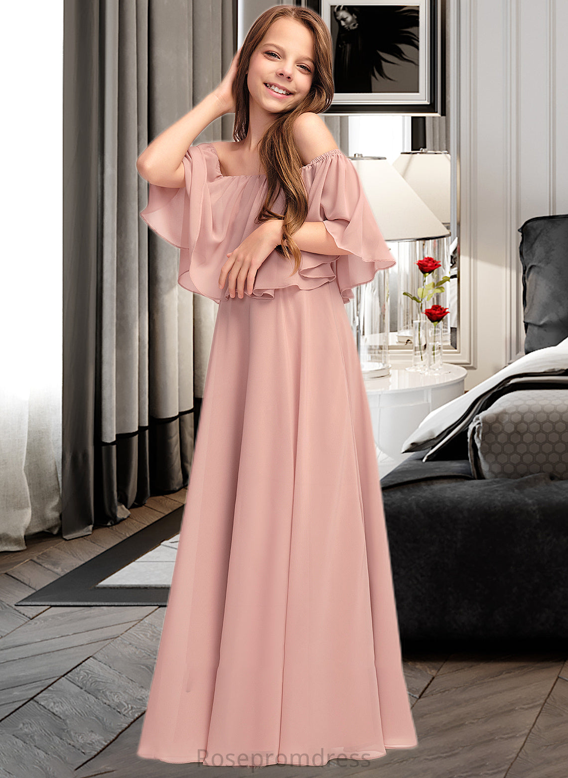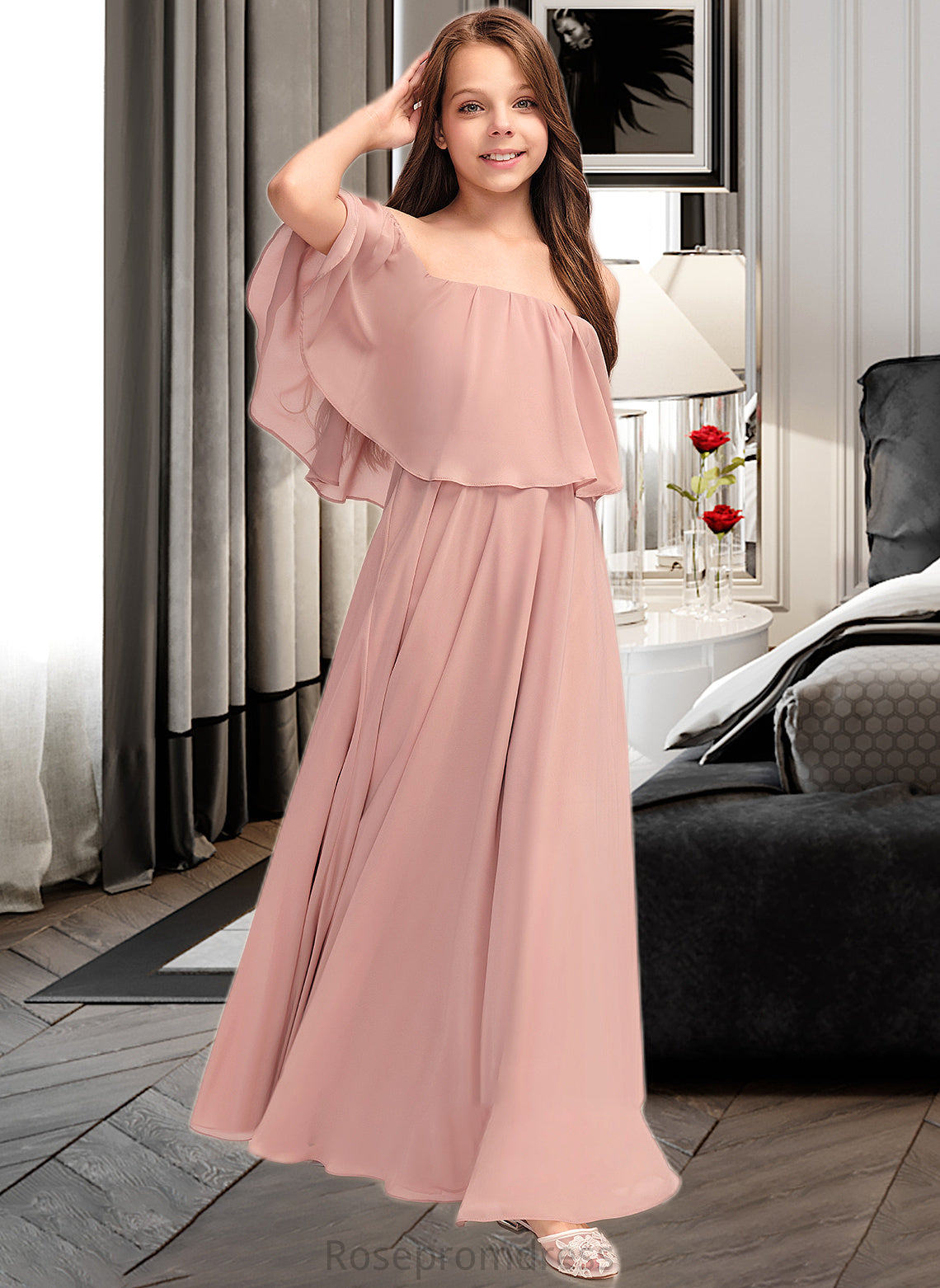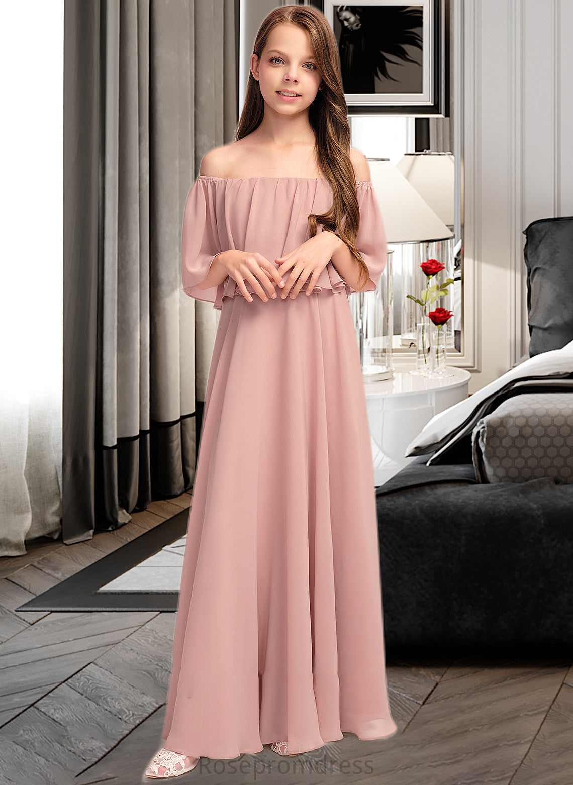 Aspen A-Line Off-the-Shoulder Floor-Length Chiffon Junior Bridesmaid Dress With Ruffle SRSP0013459