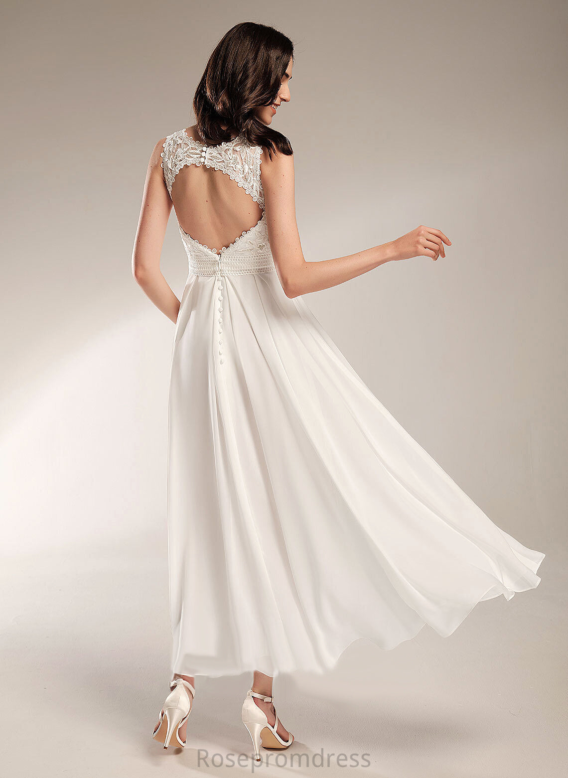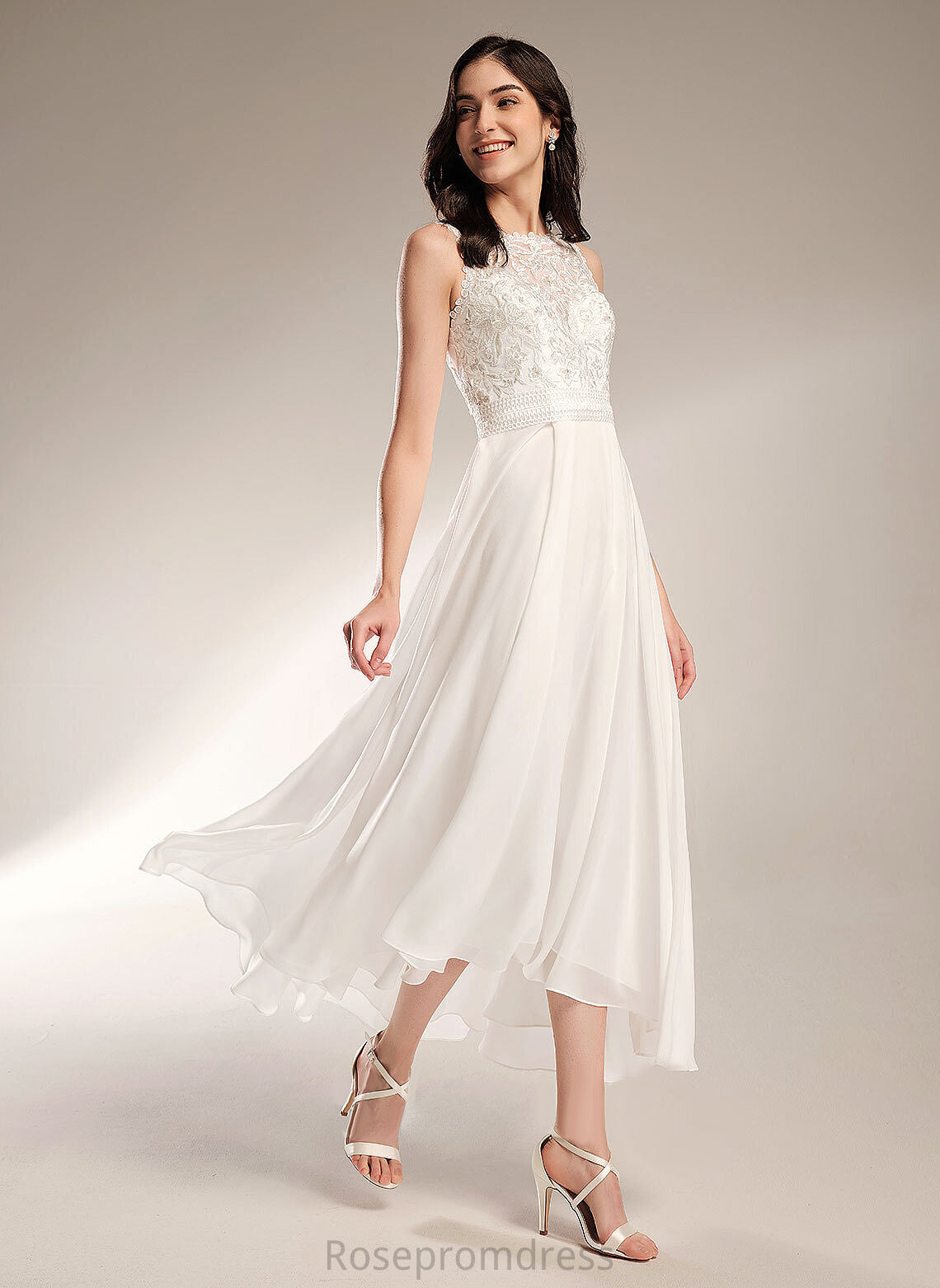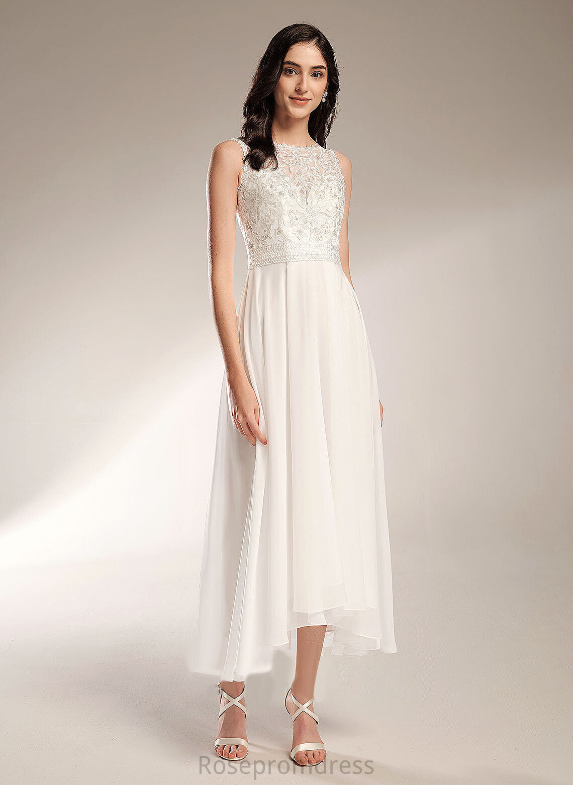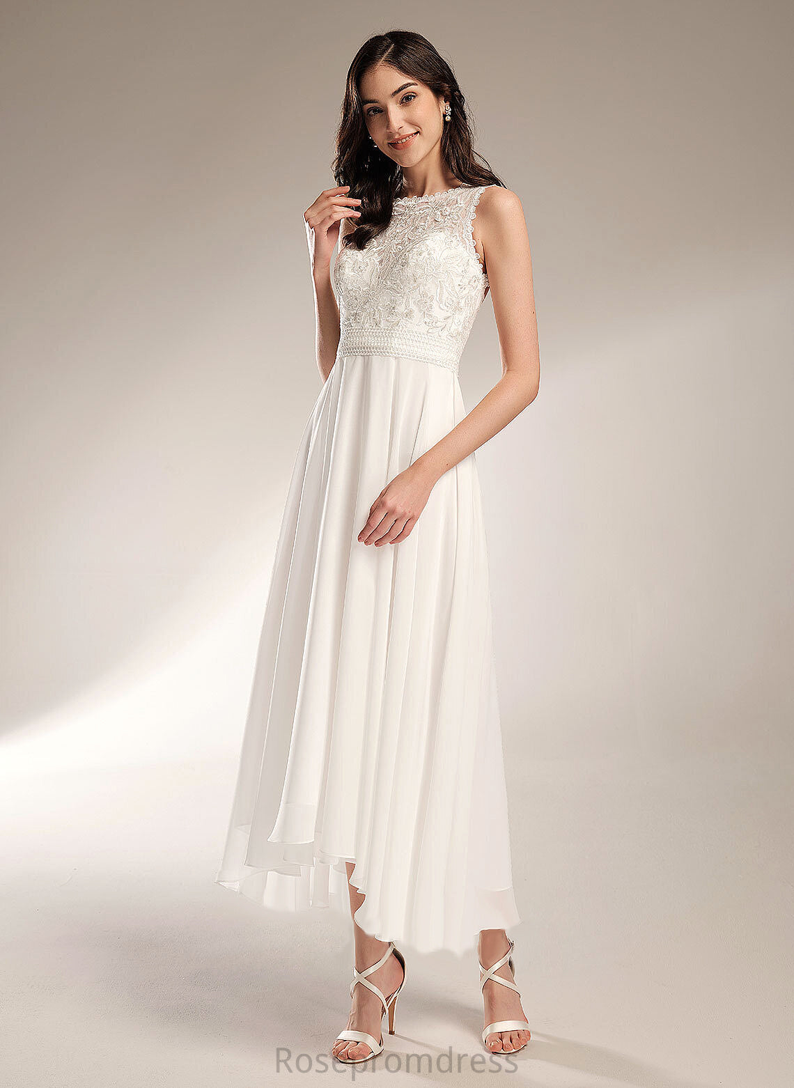 Asymmetrical A-Line Scoop Wedding Dress Lace Wedding Dresses Aracely Chiffon