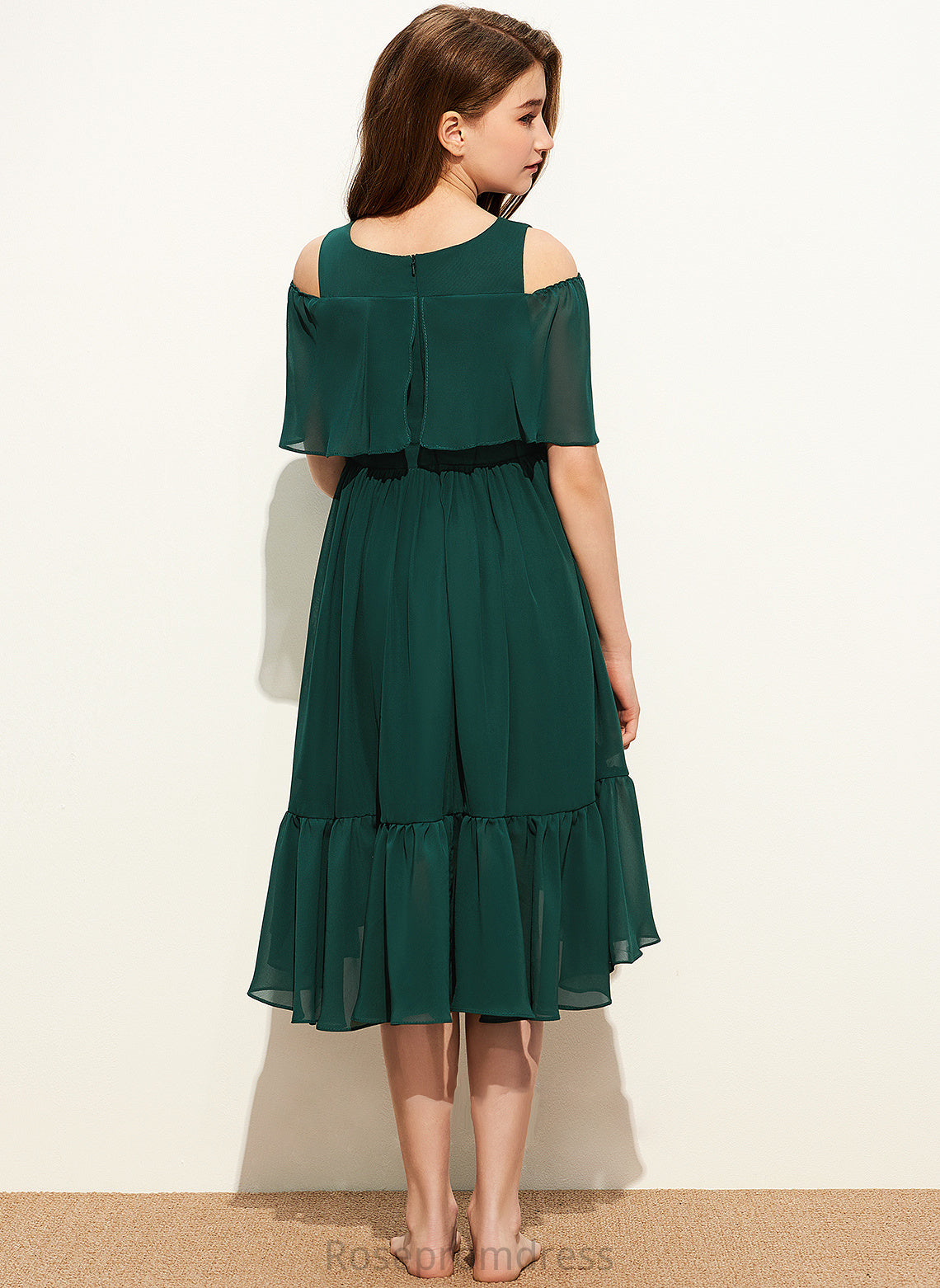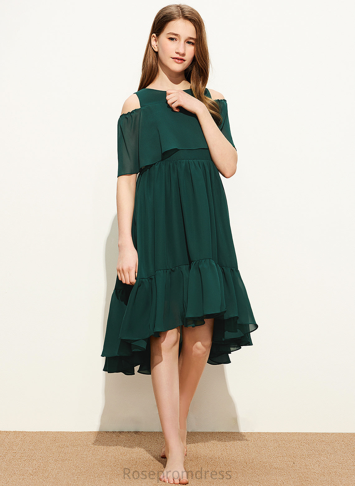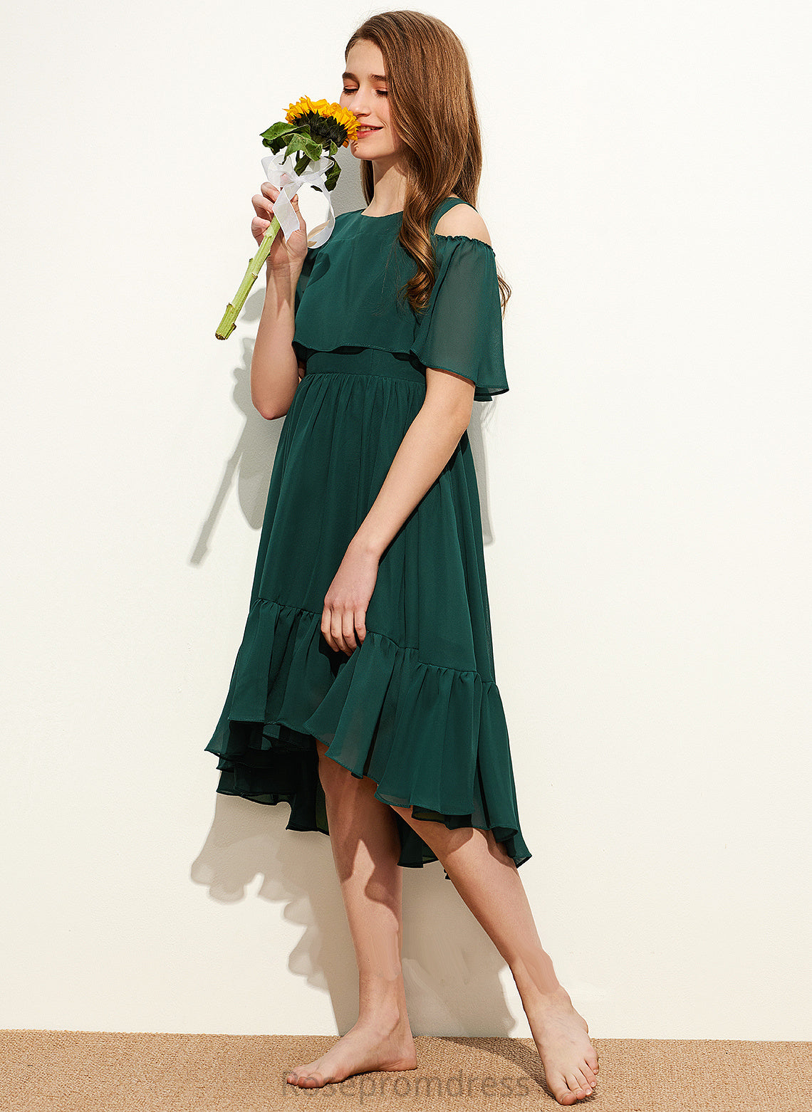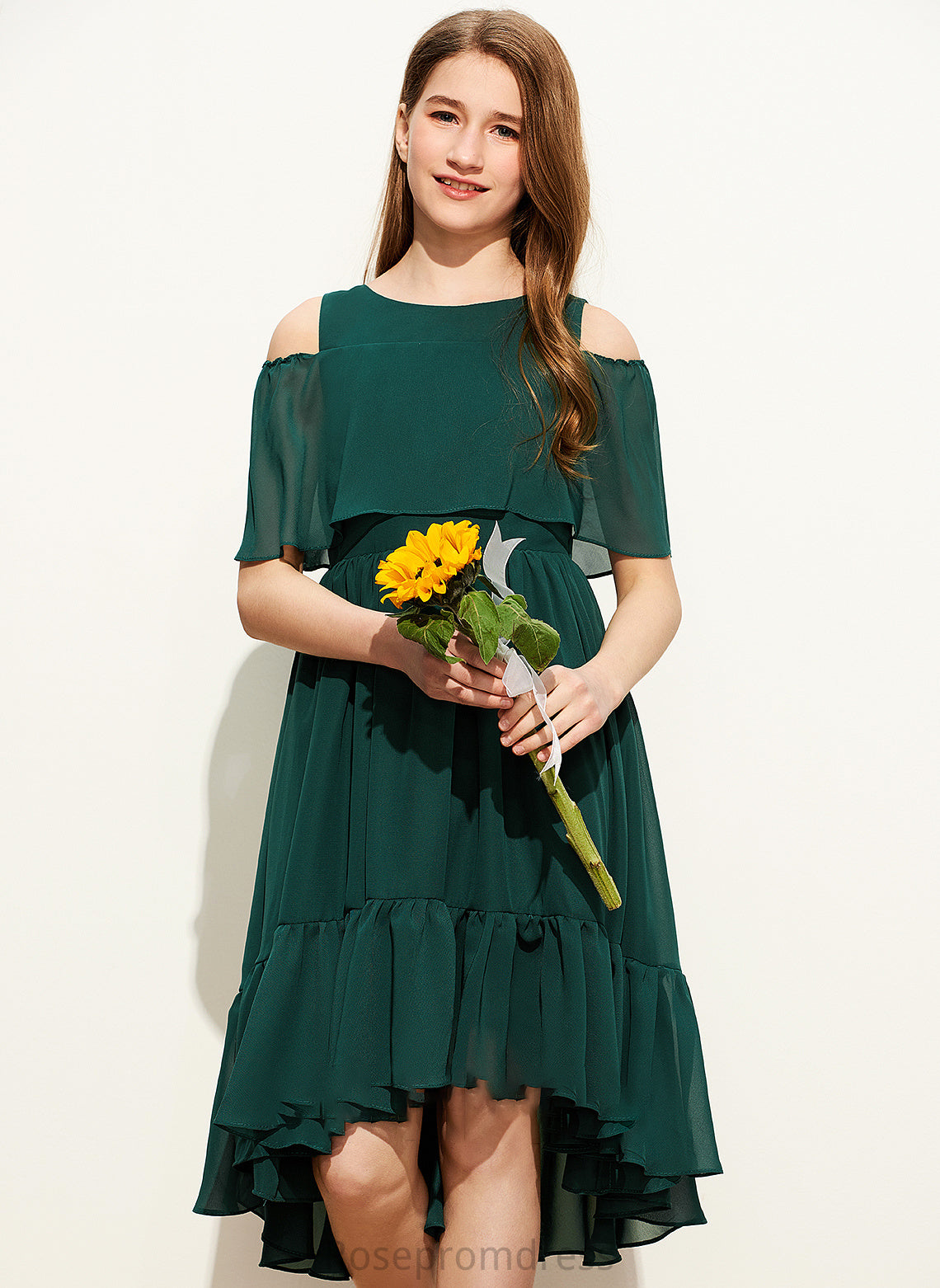 Asymmetrical Junior Bridesmaid Dresses With Cascading Scoop A-Line Lyric Ruffles Chiffon Neck