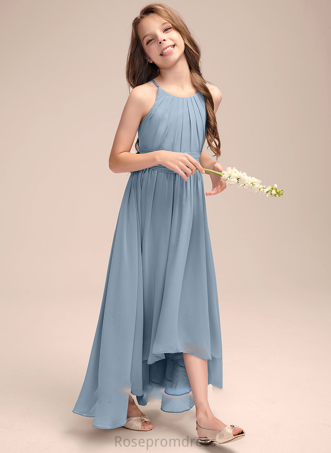 Asymmetrical Junior Bridesmaid Dresses With Ruffle A-Line Neck Chiffon Scoop Persis Bow(s)