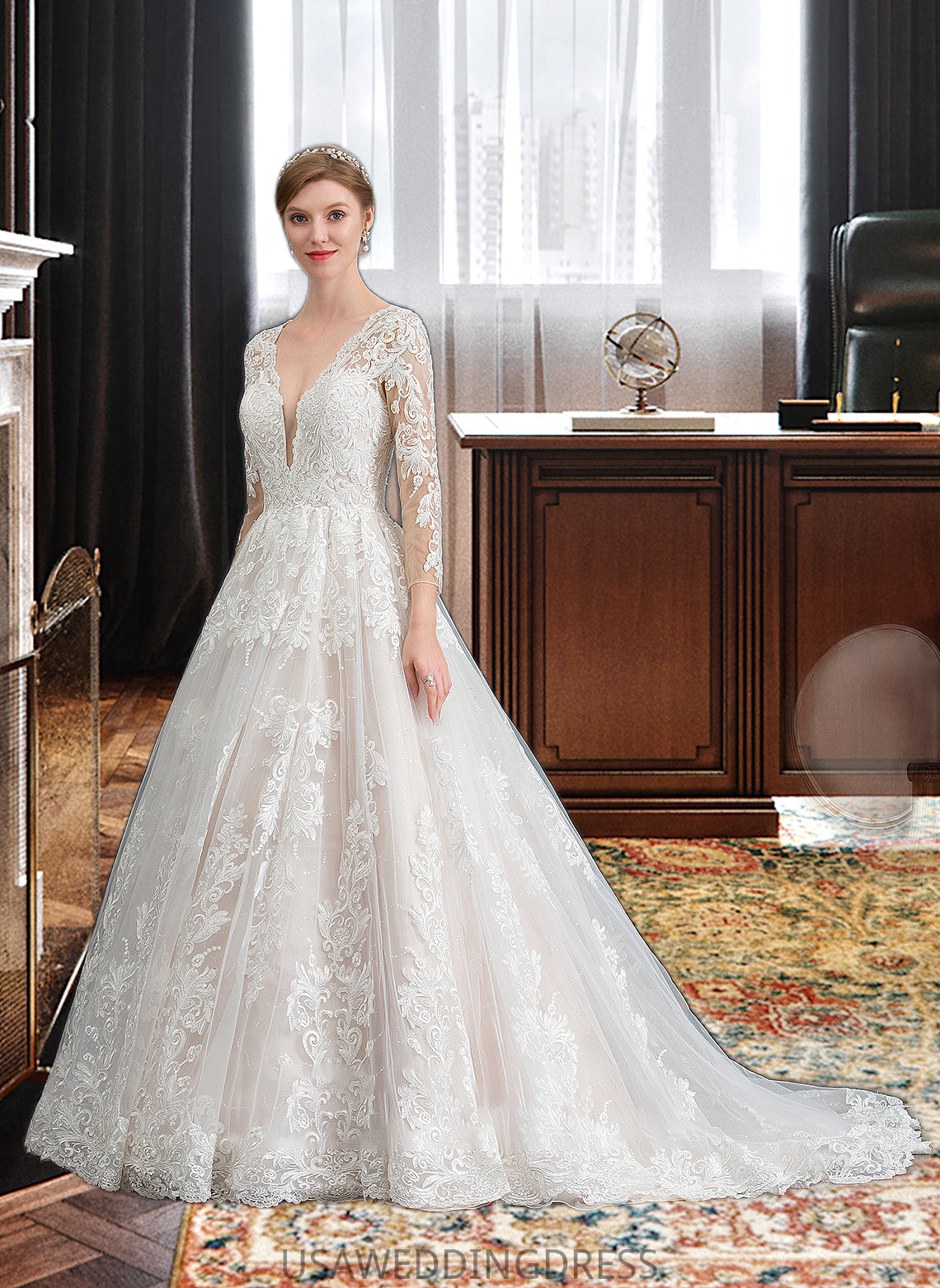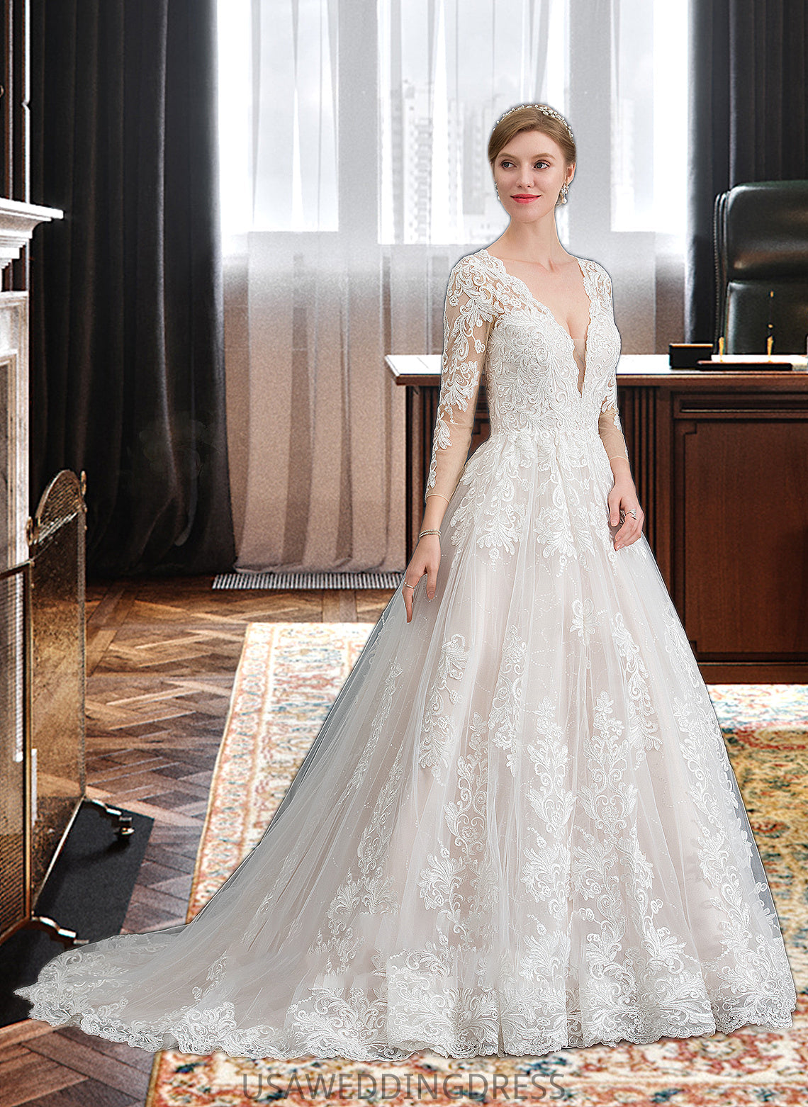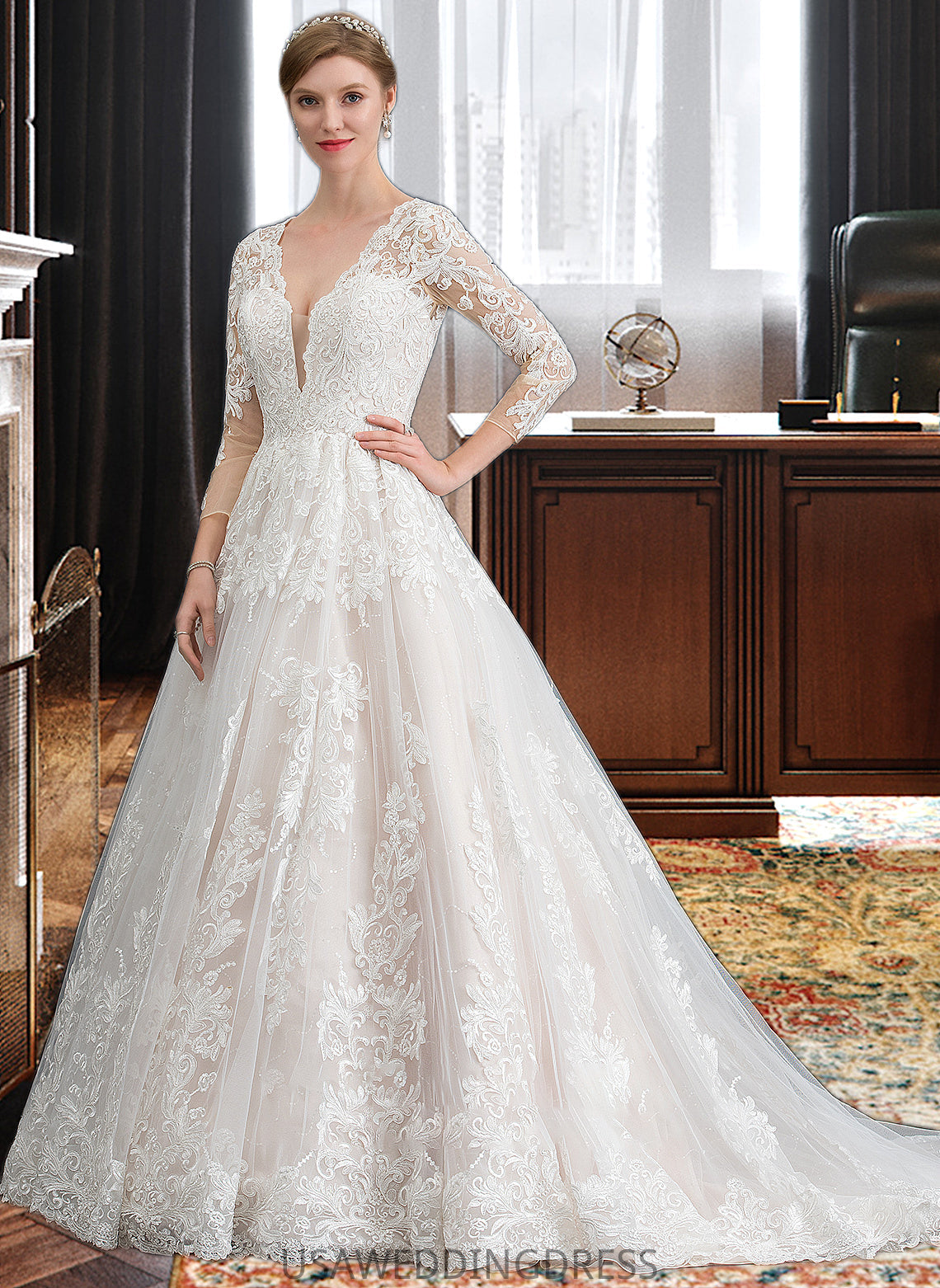 Athena Ball-Gown/Princess V-neck Chapel Train Tulle Wedding Dress DSP0013735