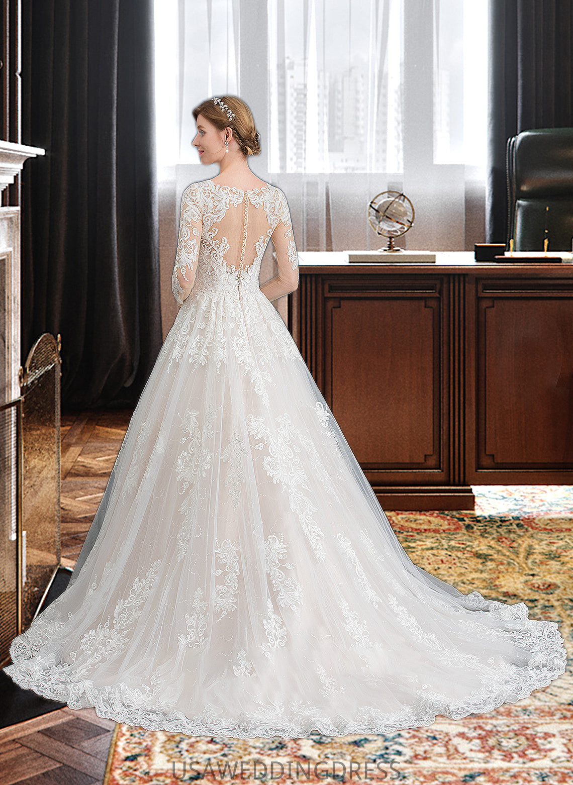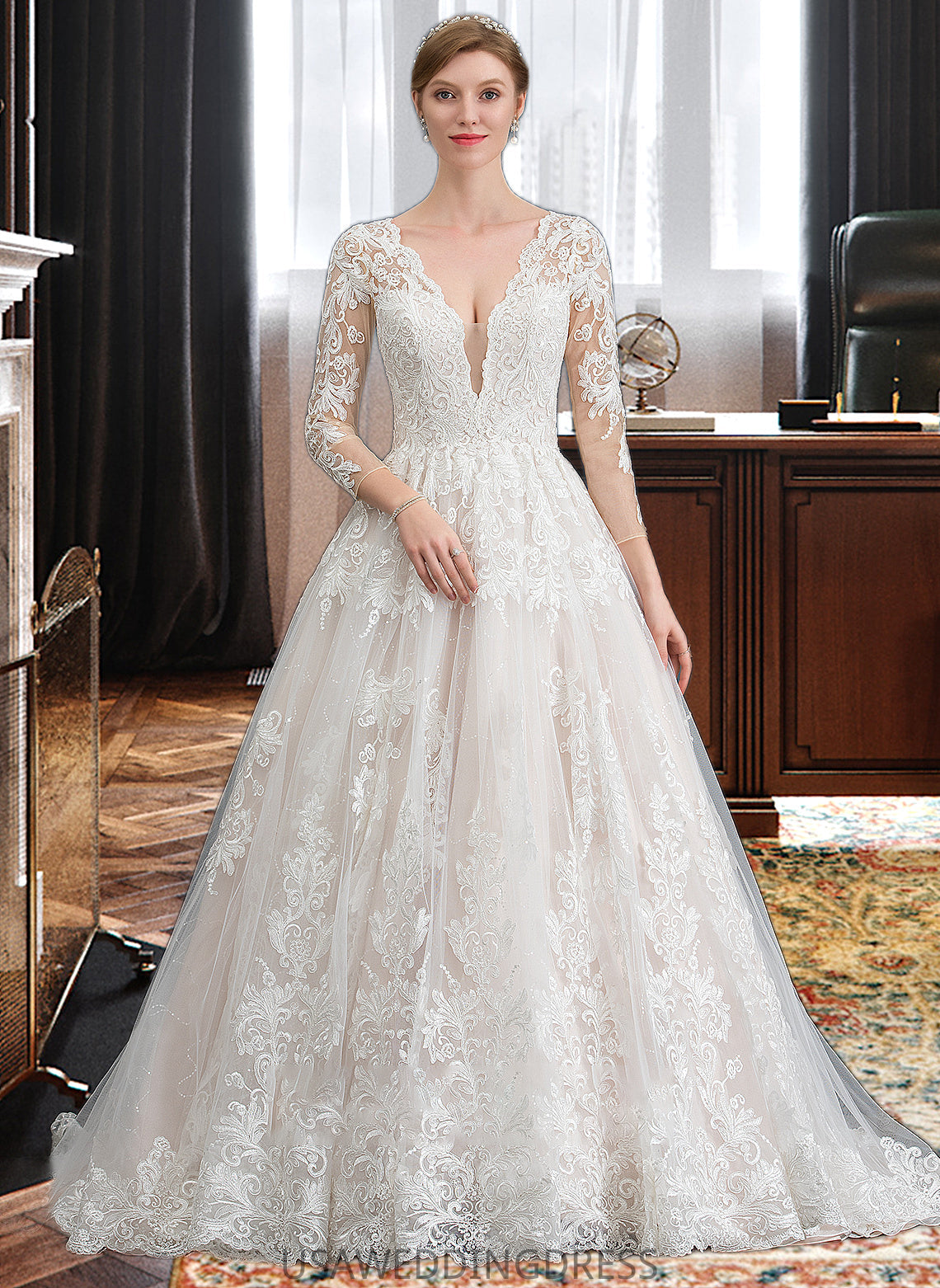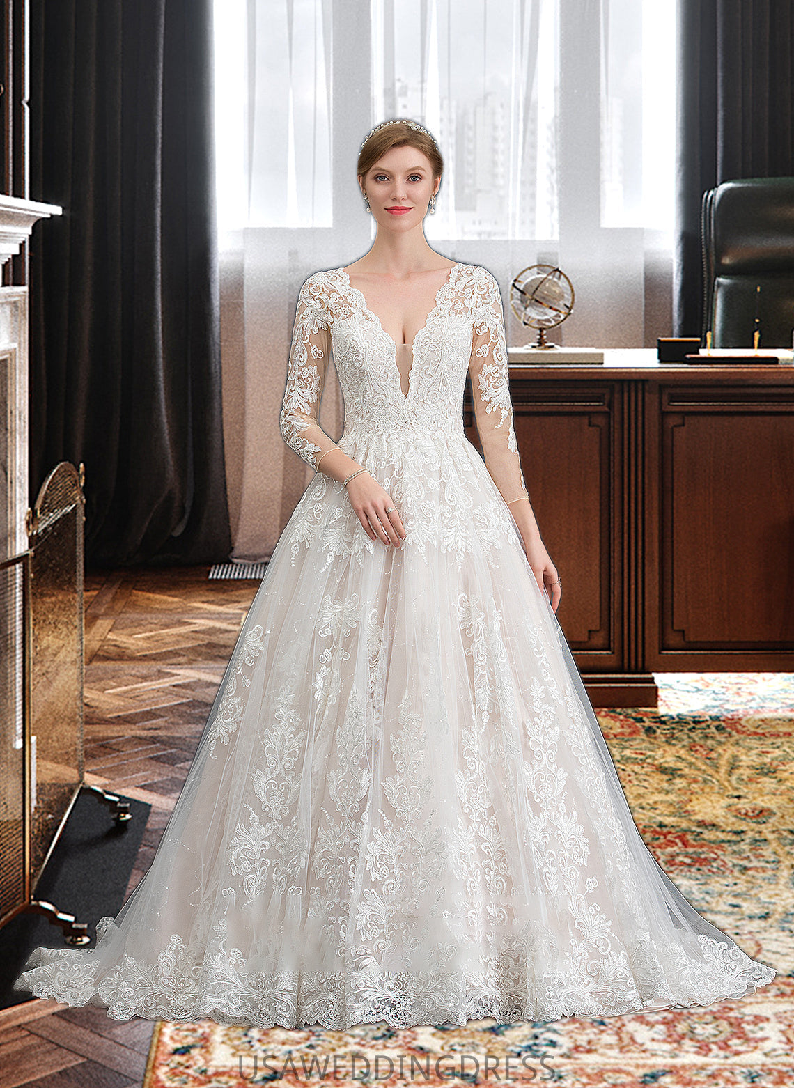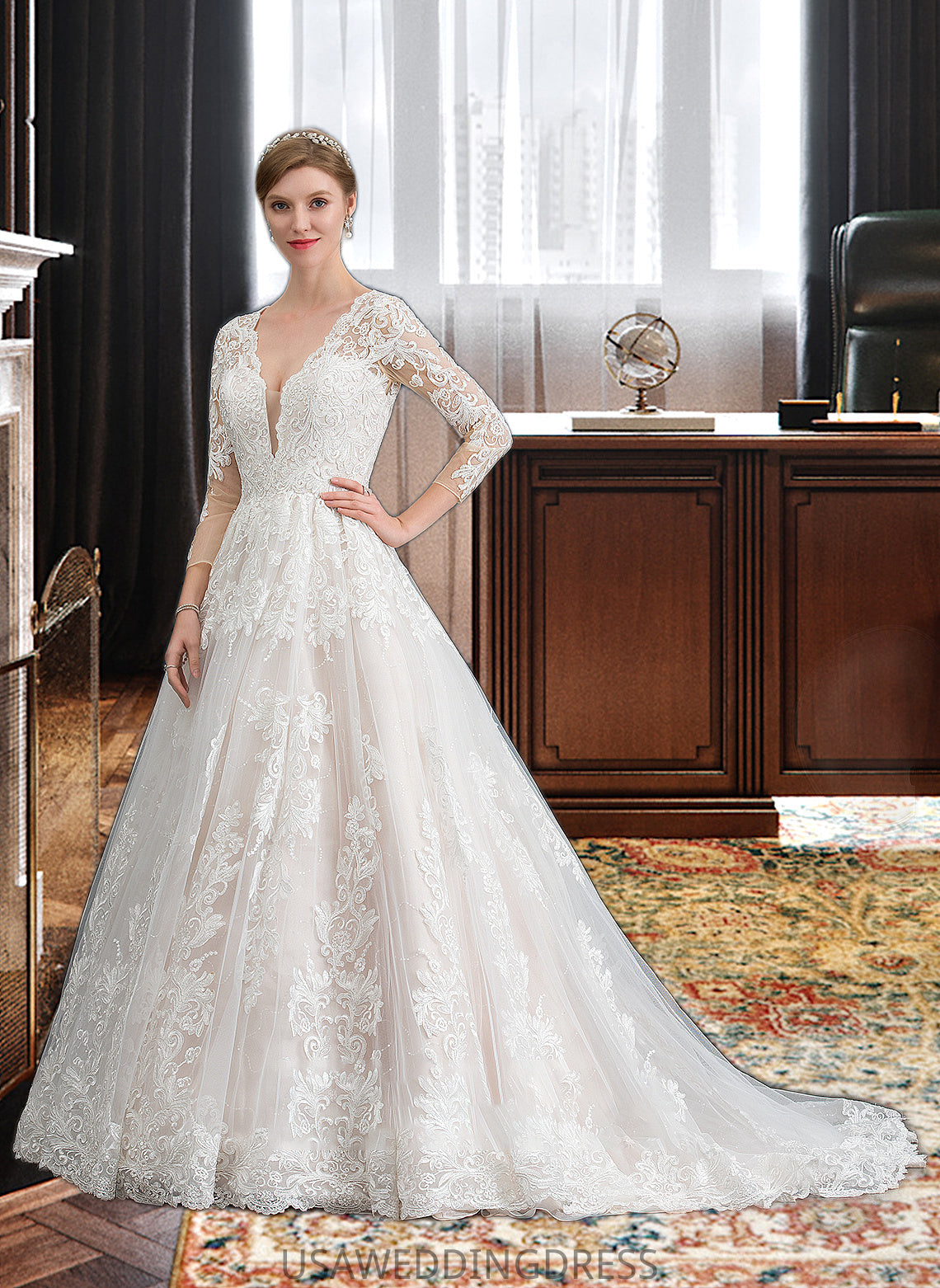 Athena Ball-Gown/Princess V-neck Chapel Train Tulle Wedding Dress DSP0013735