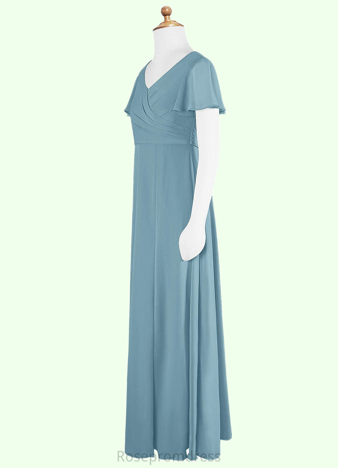 Aubrey A-Line Ruched Chiffon Floor-Length Junior Bridesmaid Dress SRSP0020004