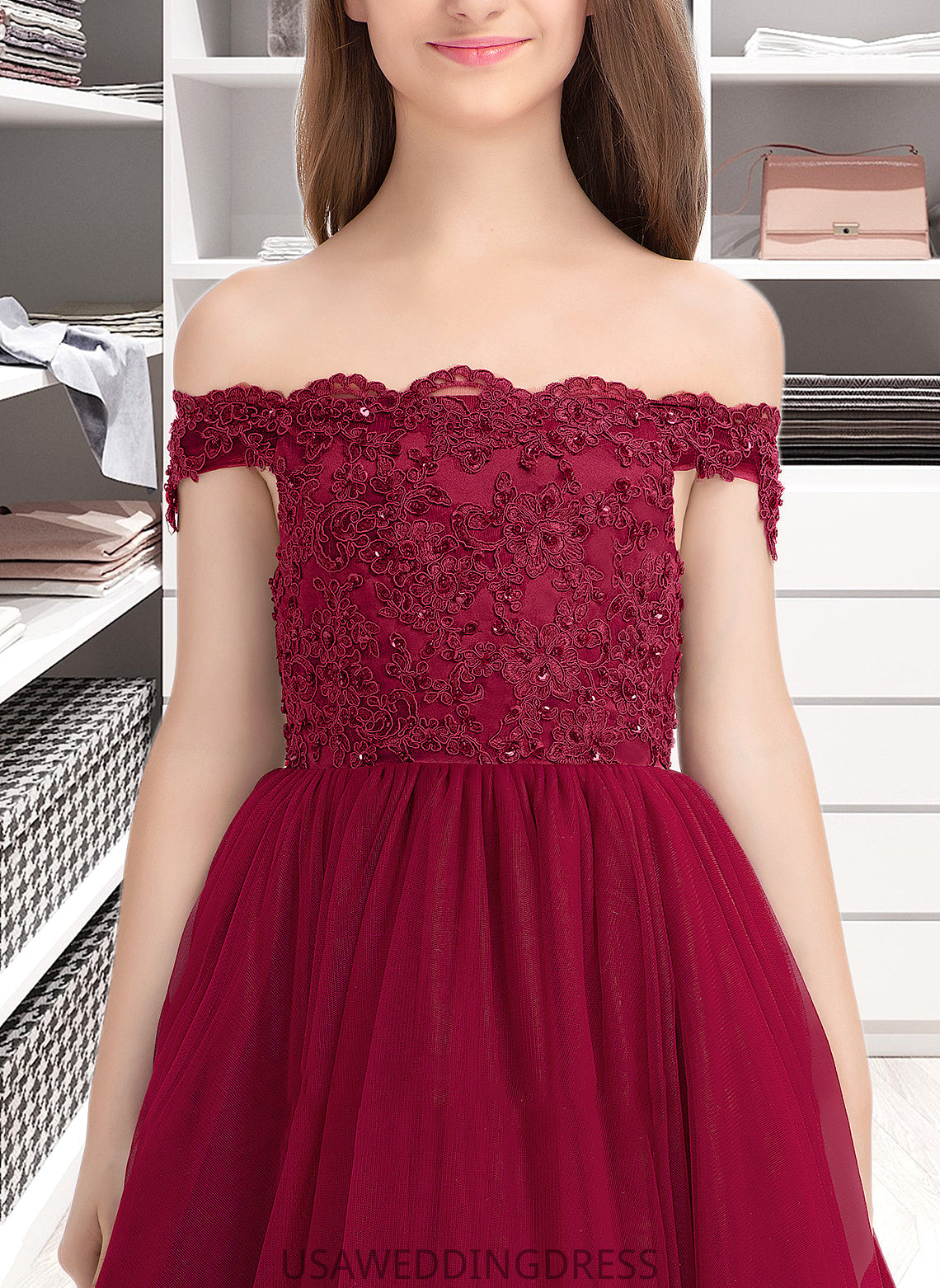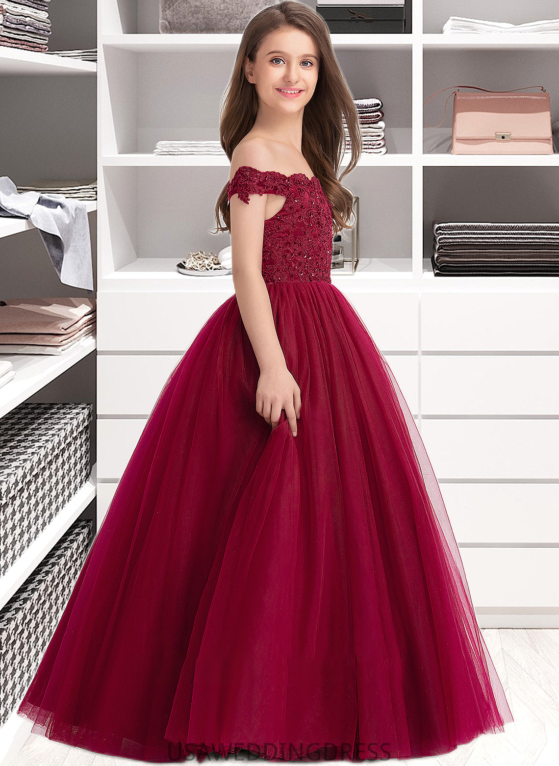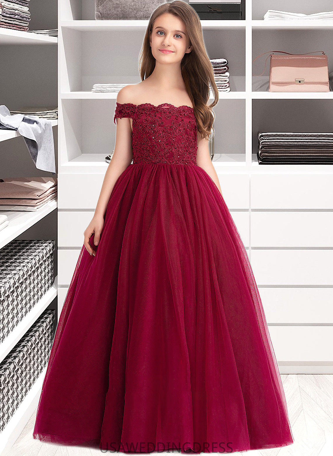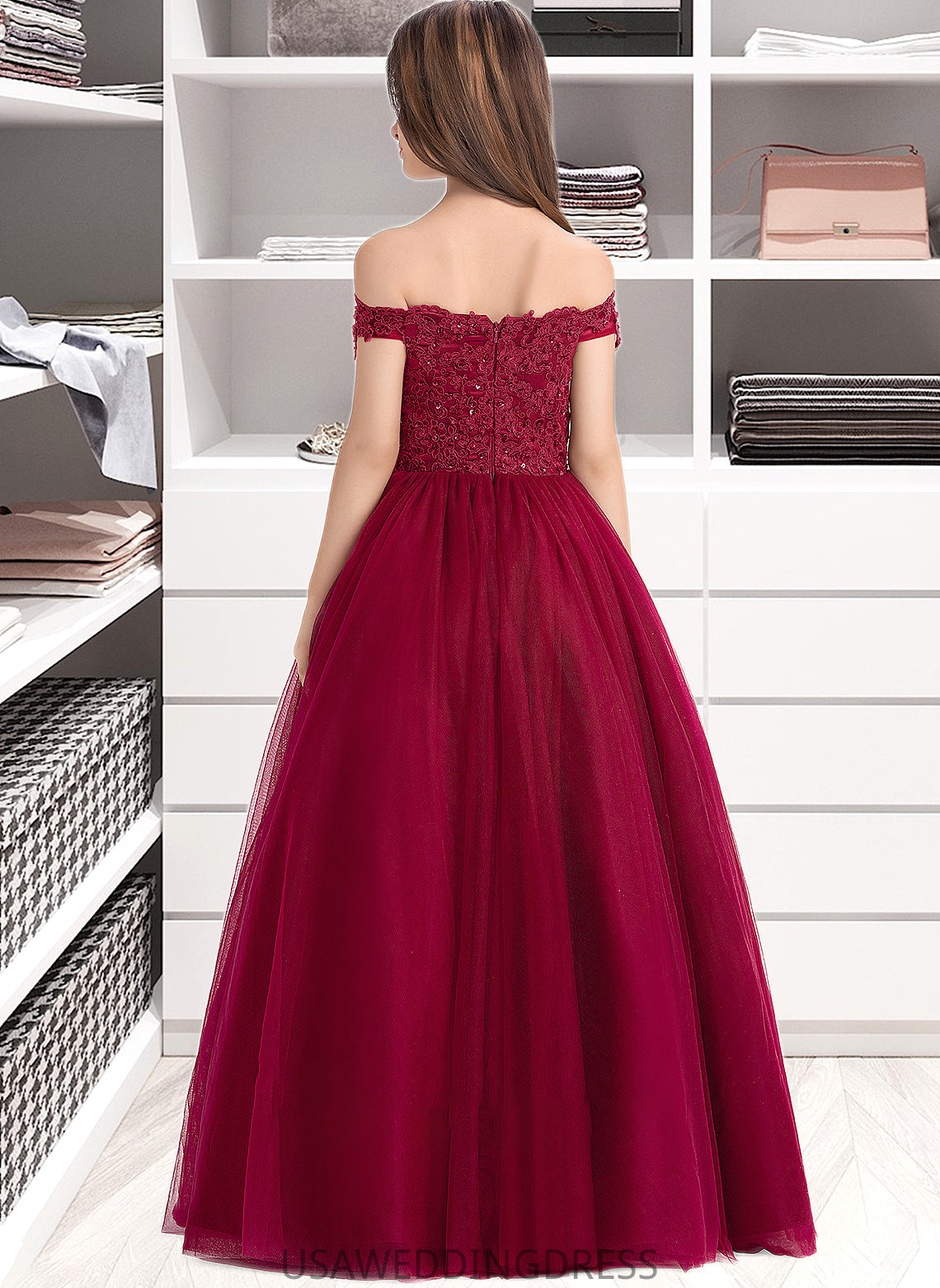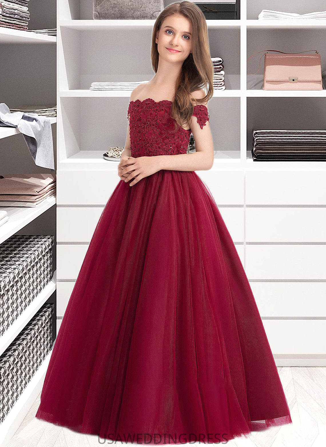 Autumn Ball-Gown/Princess Off-the-Shoulder Floor-Length Tulle Lace Junior Bridesmaid Dress With Beading Sequins DSP0013440