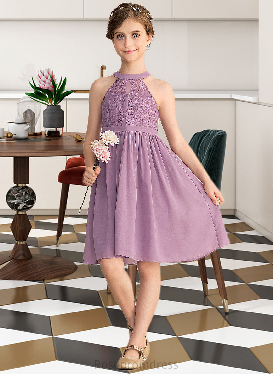 Averi A-Line Scoop Neck Knee-Length Chiffon Lace Junior Bridesmaid Dress SRSP0013401