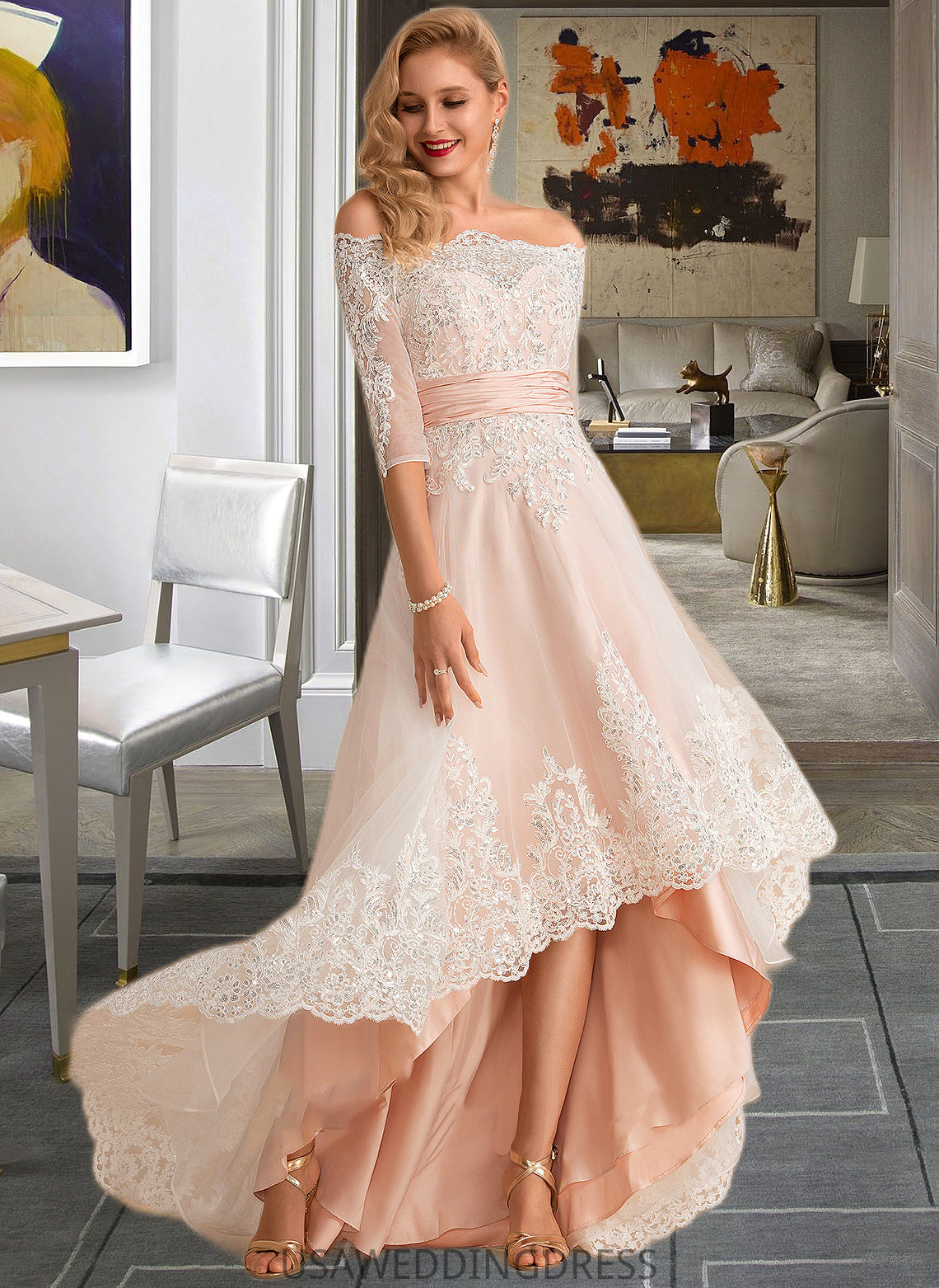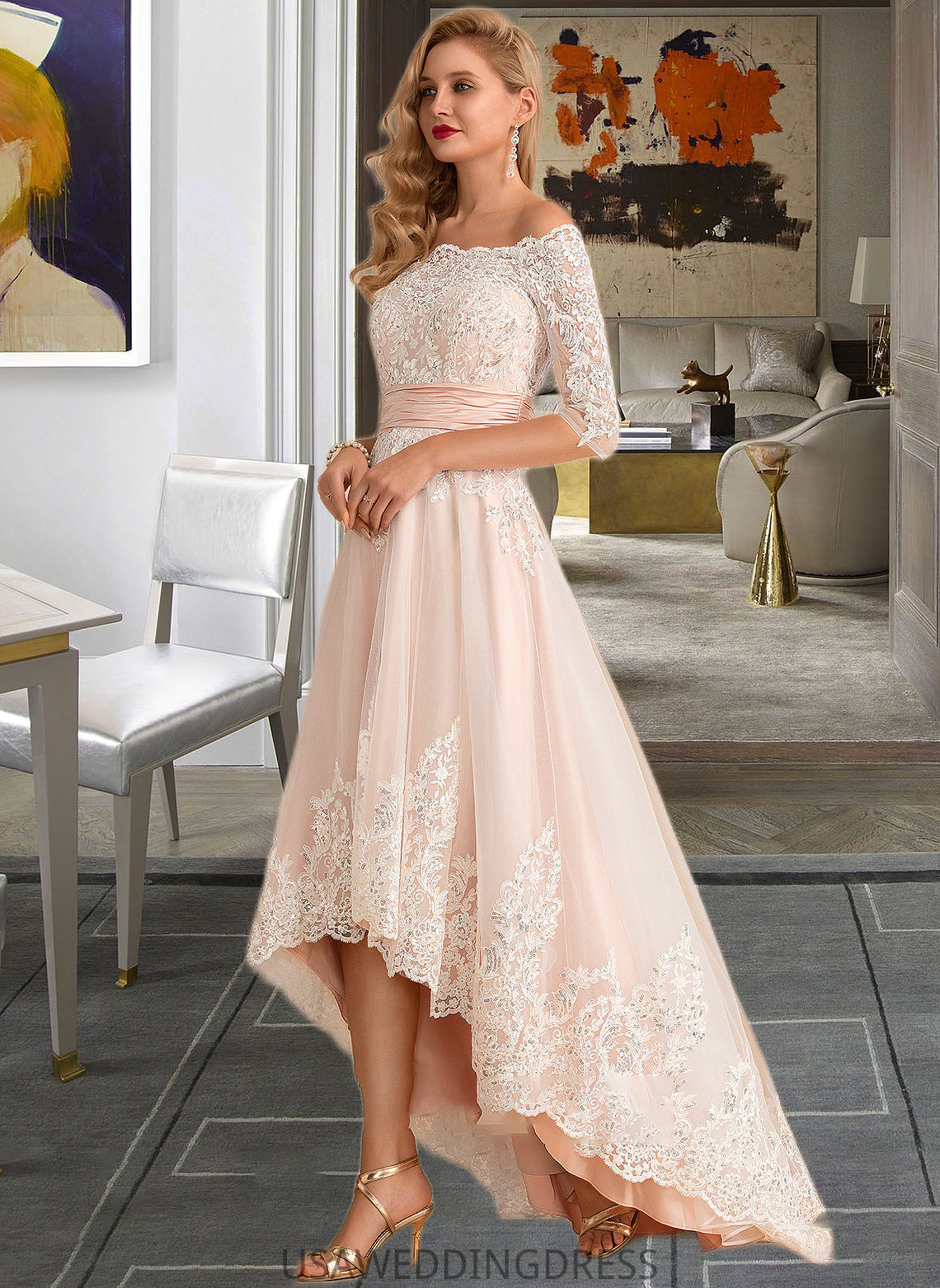 Avery A-Line Asymmetrical Satin Tulle Lace Wedding Dress With Sequins DSP0013769
