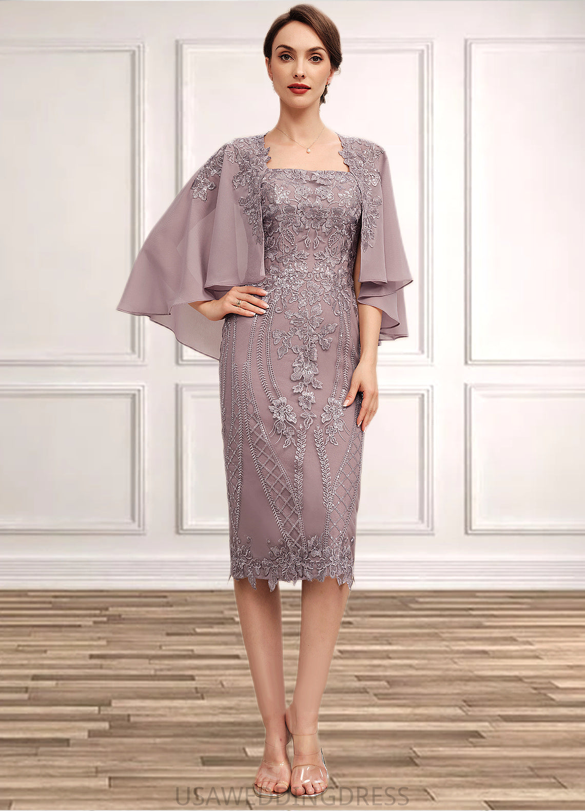 Ayla Sheath/Column Square Neckline Knee-Length Chiffon Lace Mother of the Bride Dress With Sequins DS126P0014653