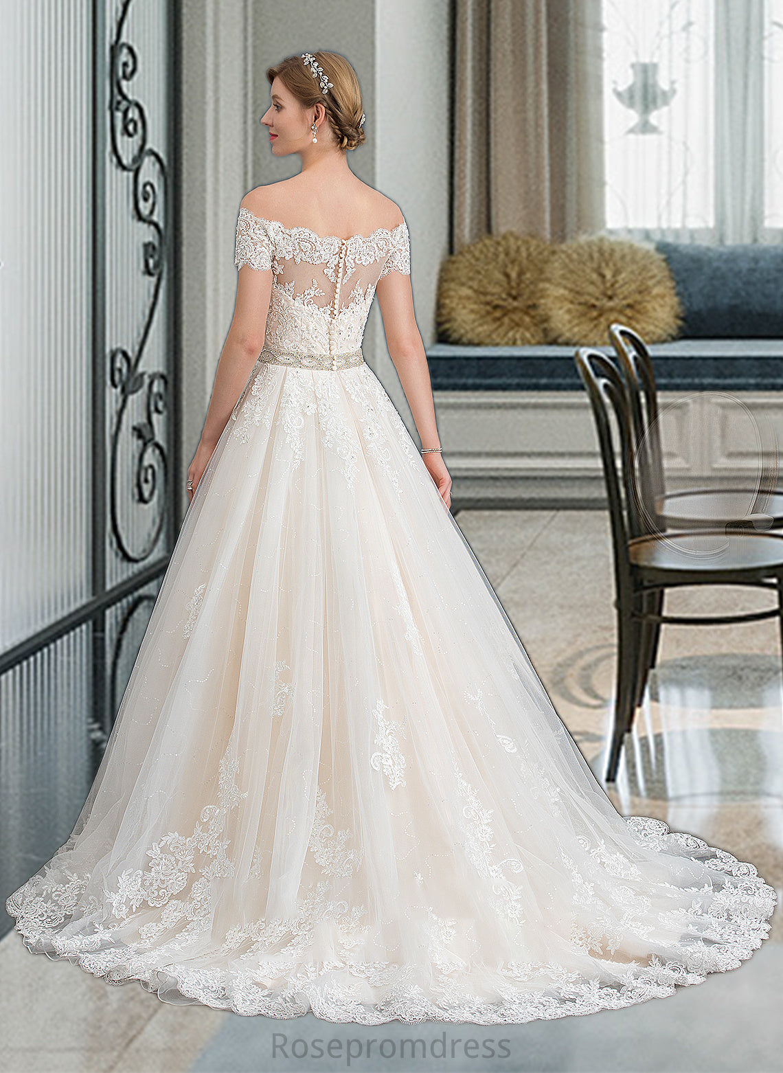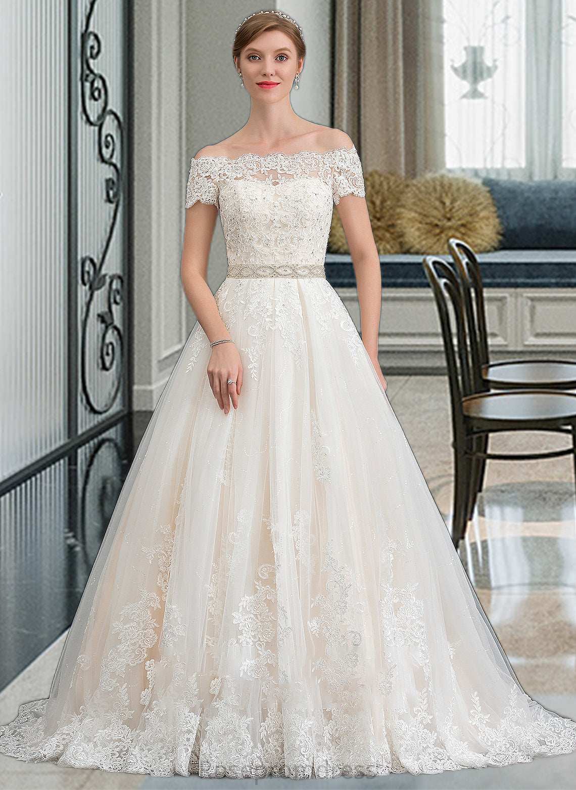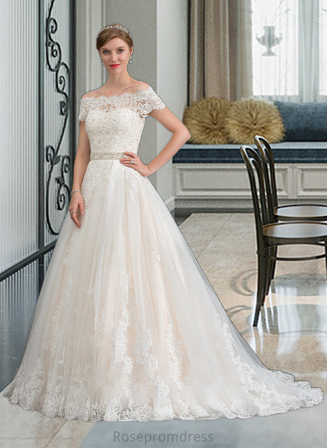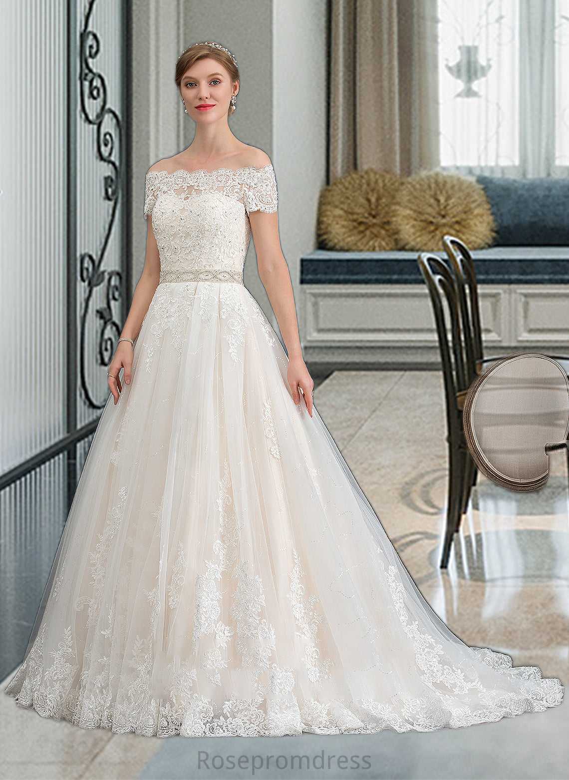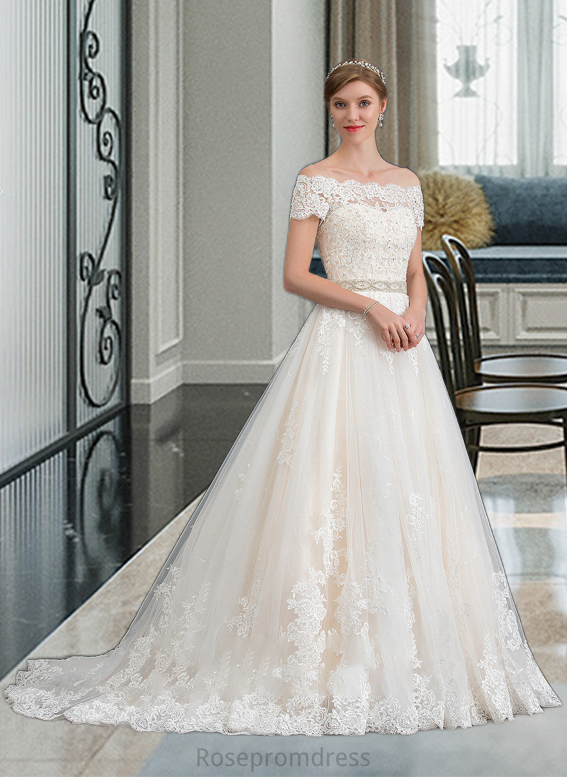 Azaria Ball-Gown/Princess Court Train Tulle Wedding Dress With Beading Sequins SRSP0013770