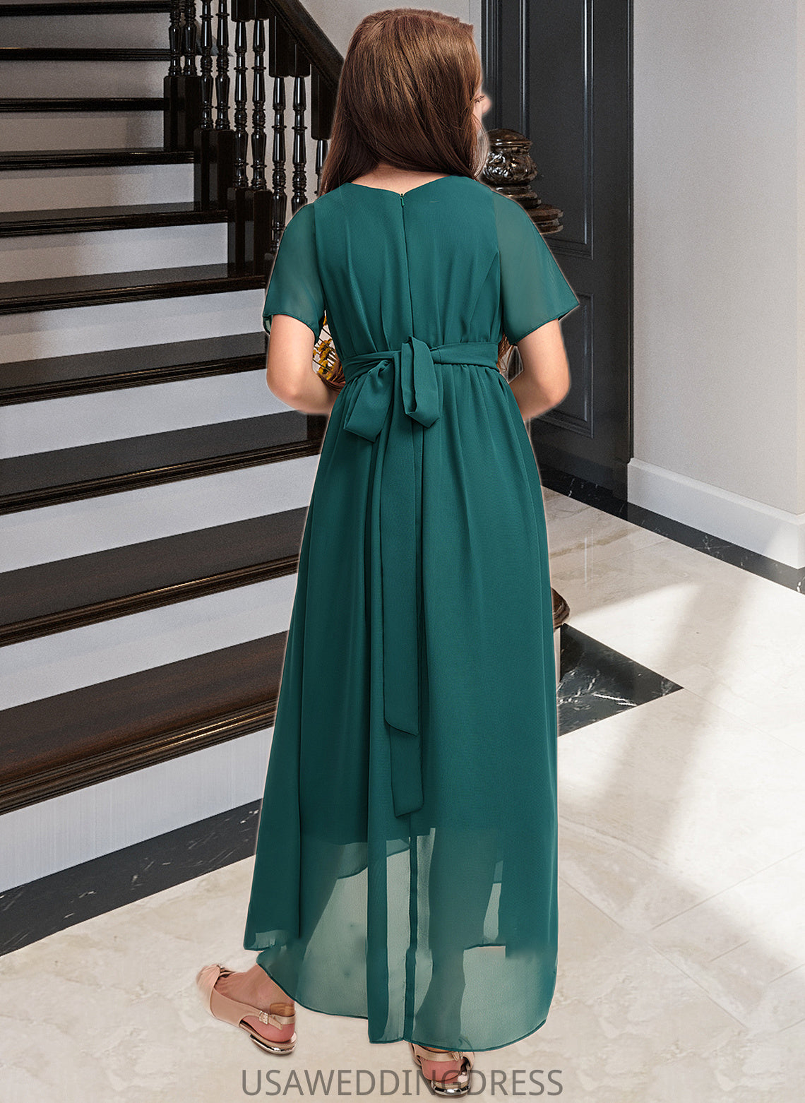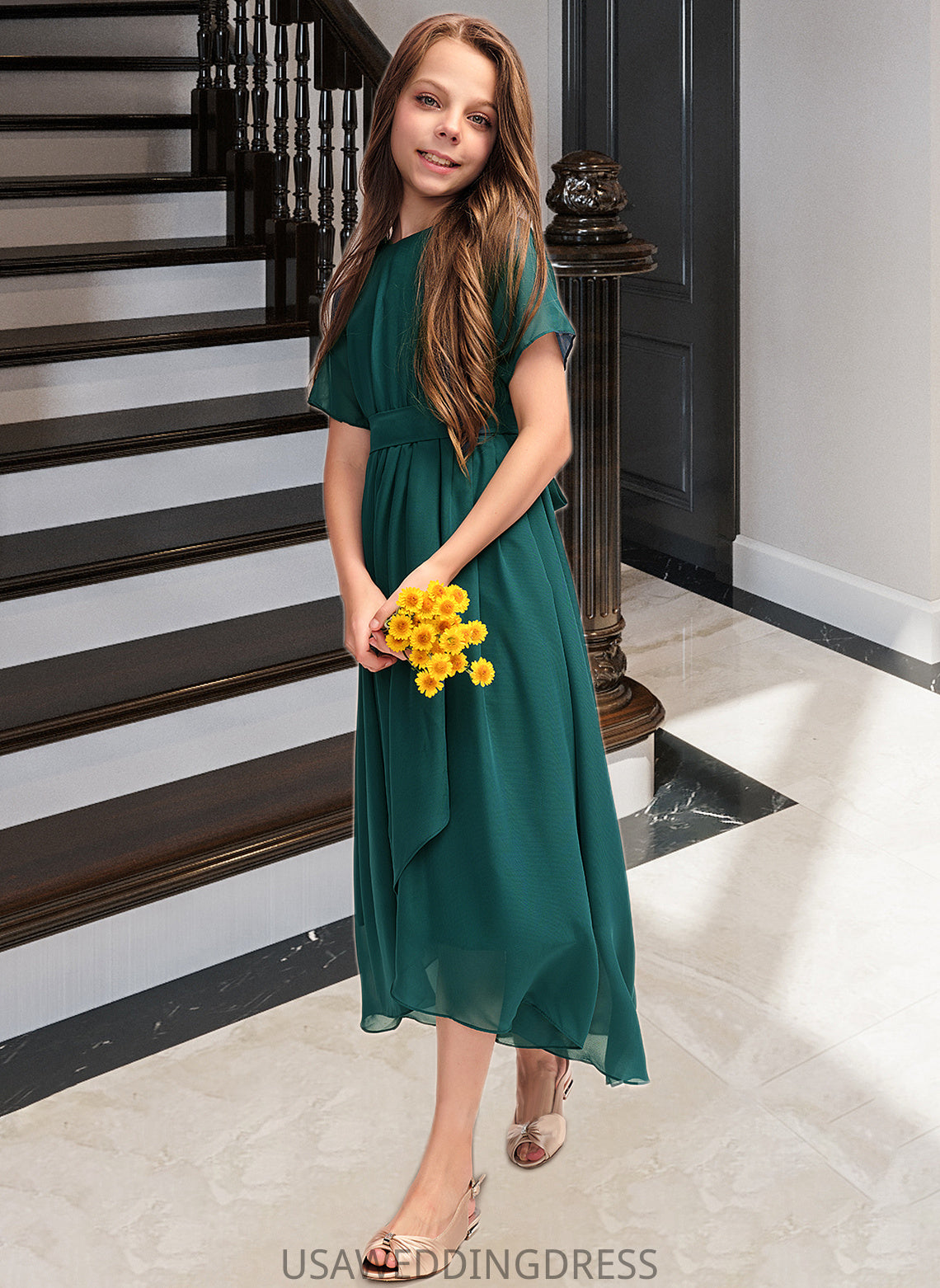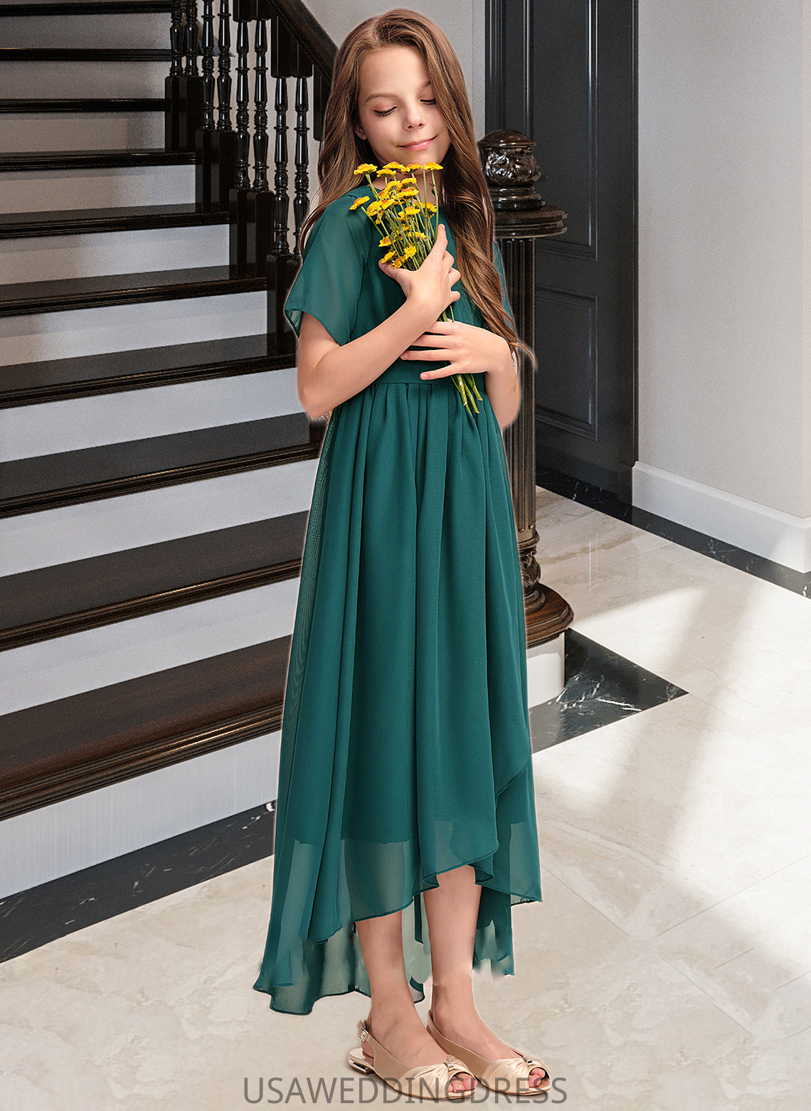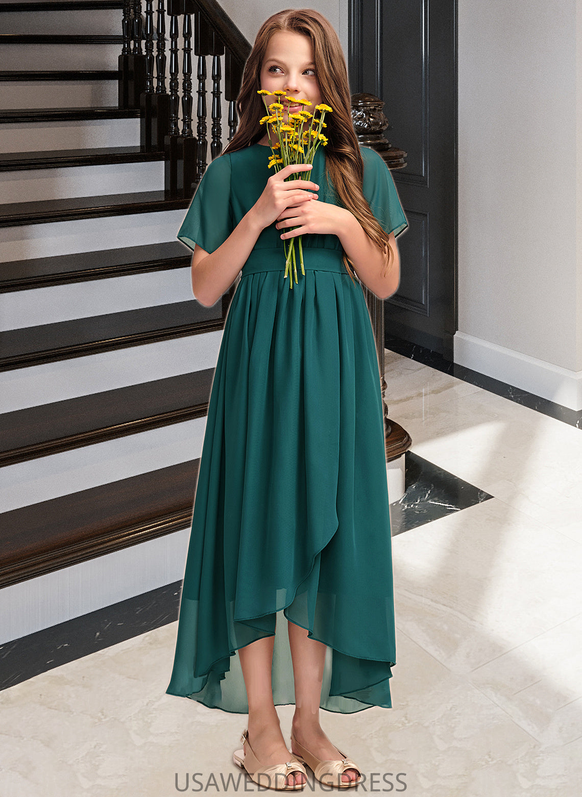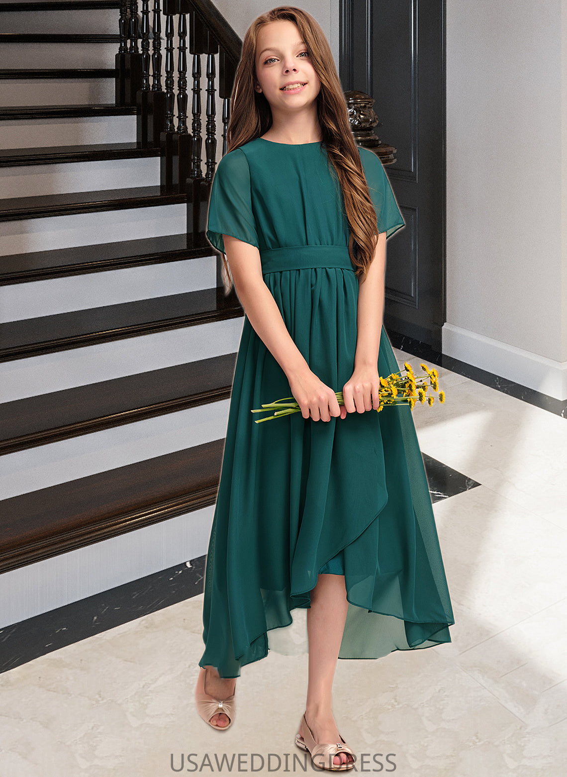 Bailee A-Line Scoop Neck Asymmetrical Chiffon Junior Bridesmaid Dress With Ruffle Bow(s) DSP0013403