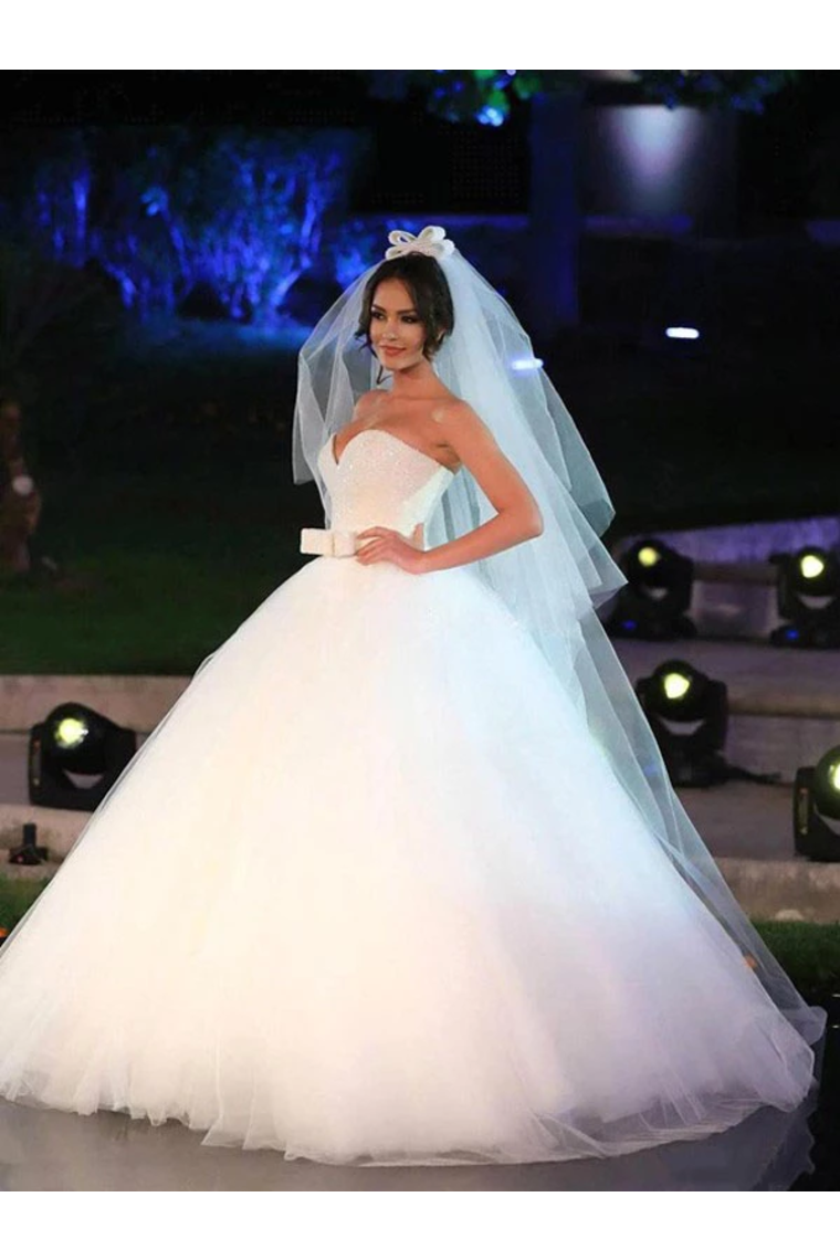 Ball Gown Bowknot Sweetheart Tulle Wedding Dresses Strapless Wedding Gowns