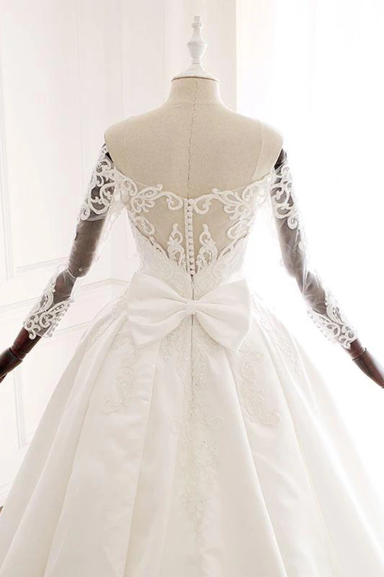 Ball Gown Long Sleeves Wedding Dress With Appliques Satin Bridal SRSP1JNP34P