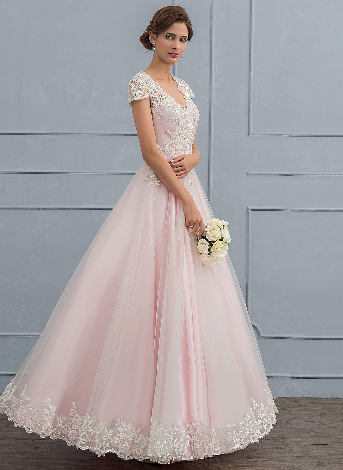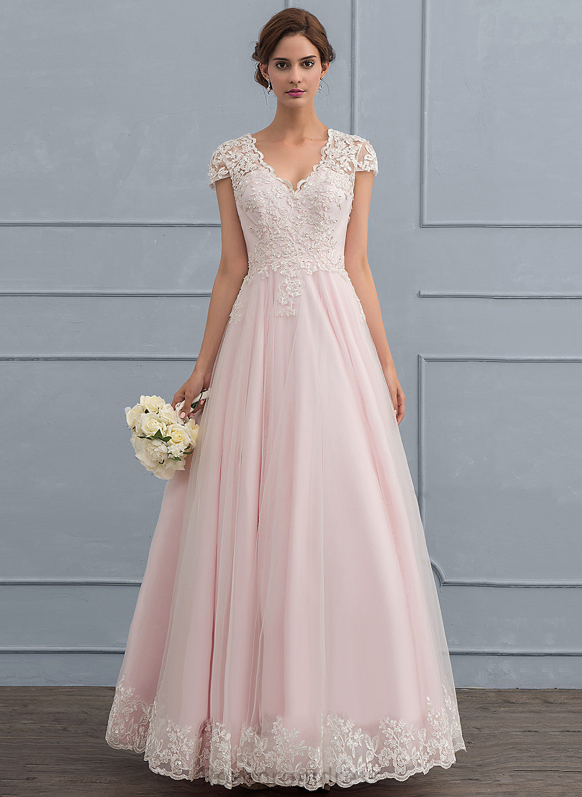 Ball-Gown/Princess Mya Wedding Dresses V-neck Dress Tulle Beading Floor-Length Wedding With Lace Sequins