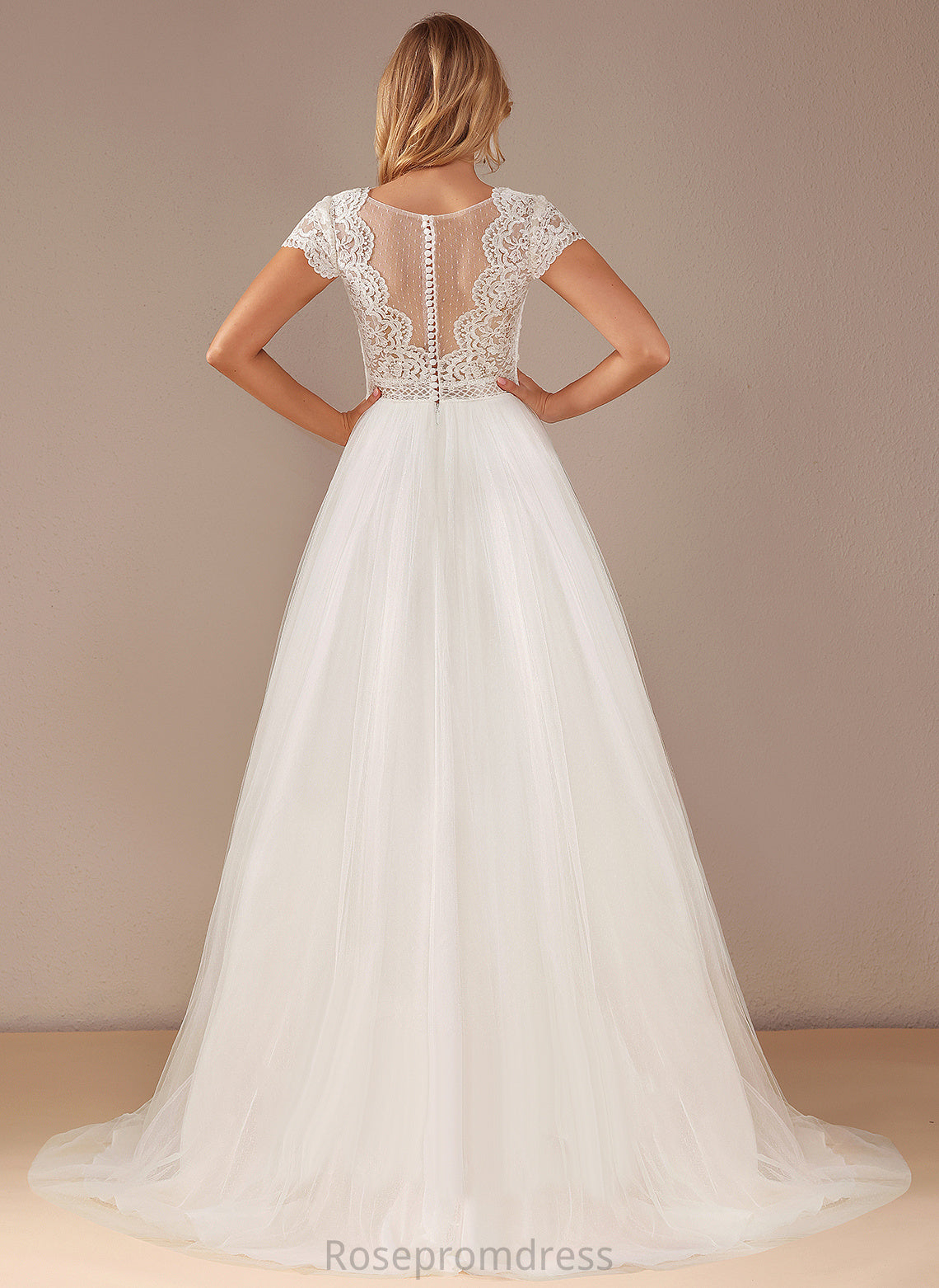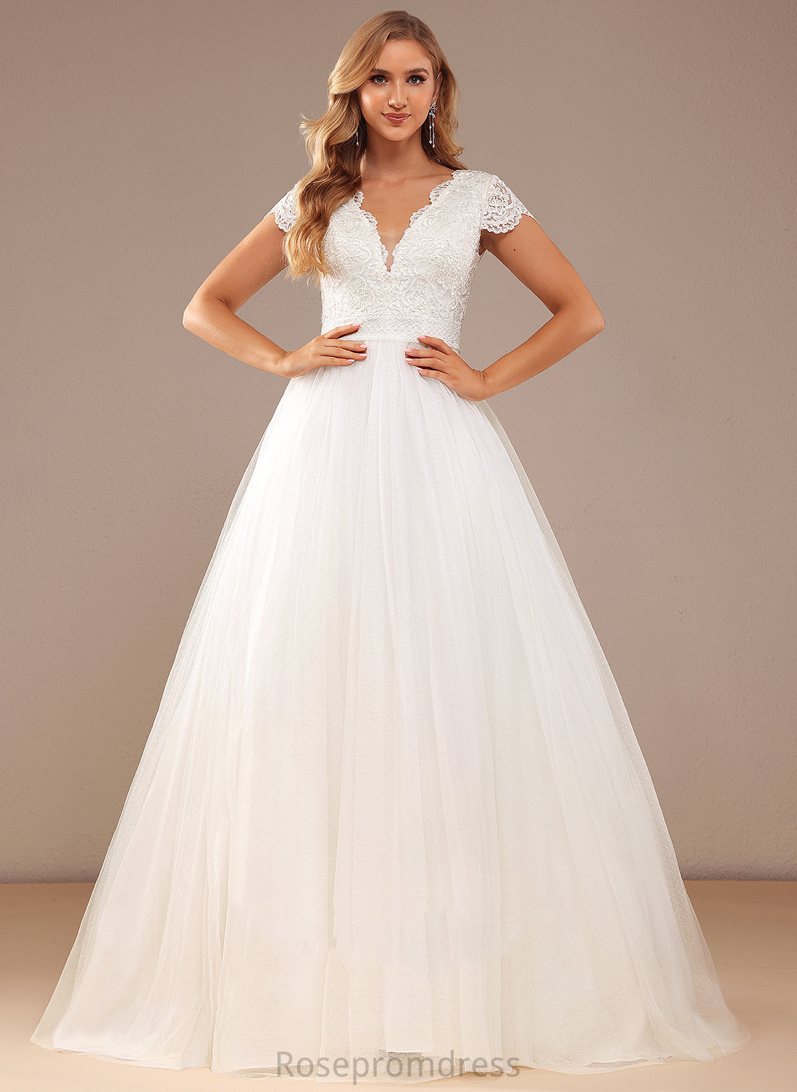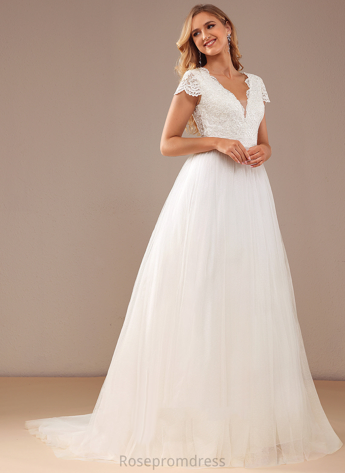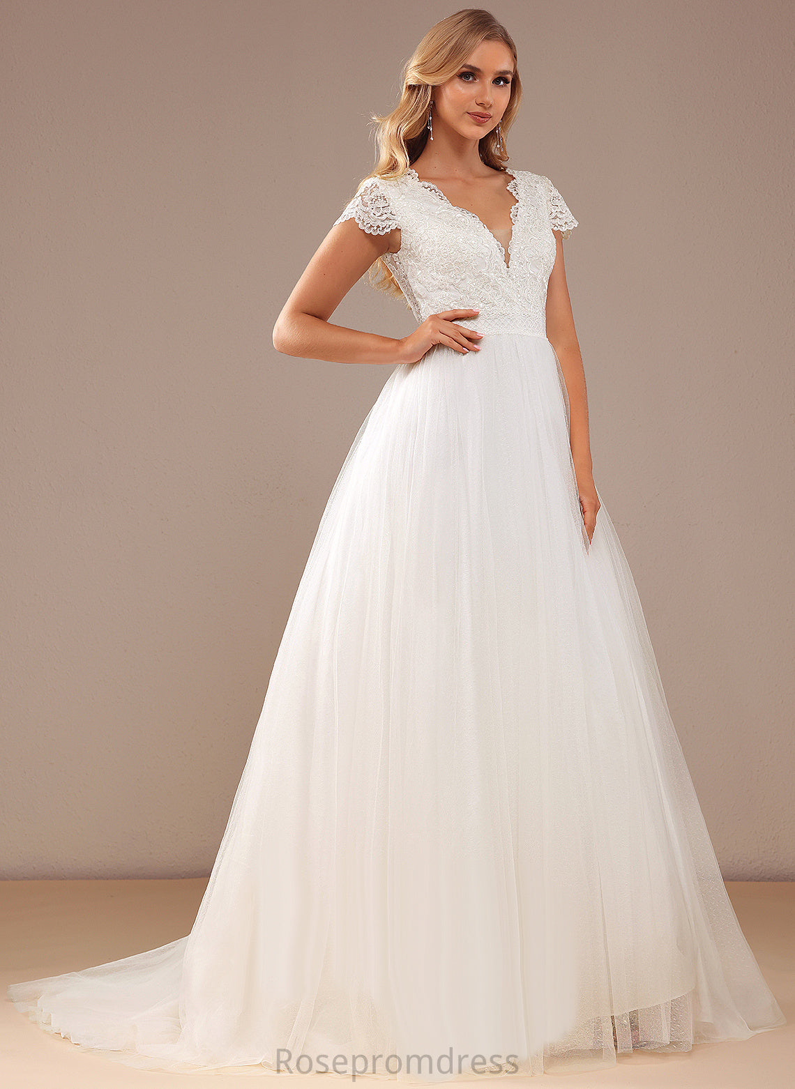 Ball-Gown/Princess Wedding Wedding Dresses Lace V-neck Myla Sequins Court Lace Tulle With Dress Train