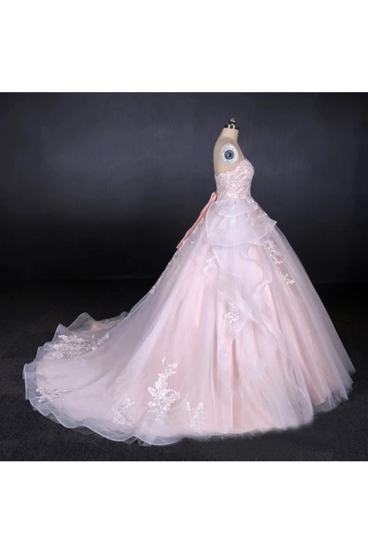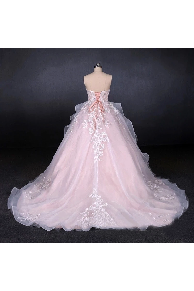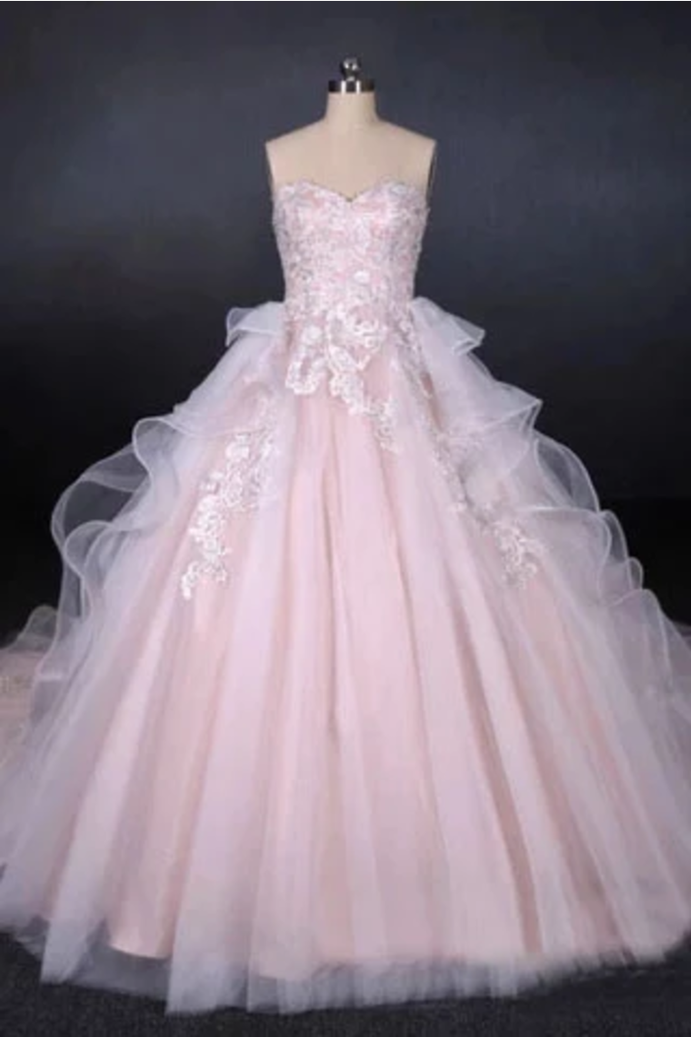 Ball Gown Strapless Sweetheart Wedding Dresses With Lace Applique, Tulle Prom Dresses