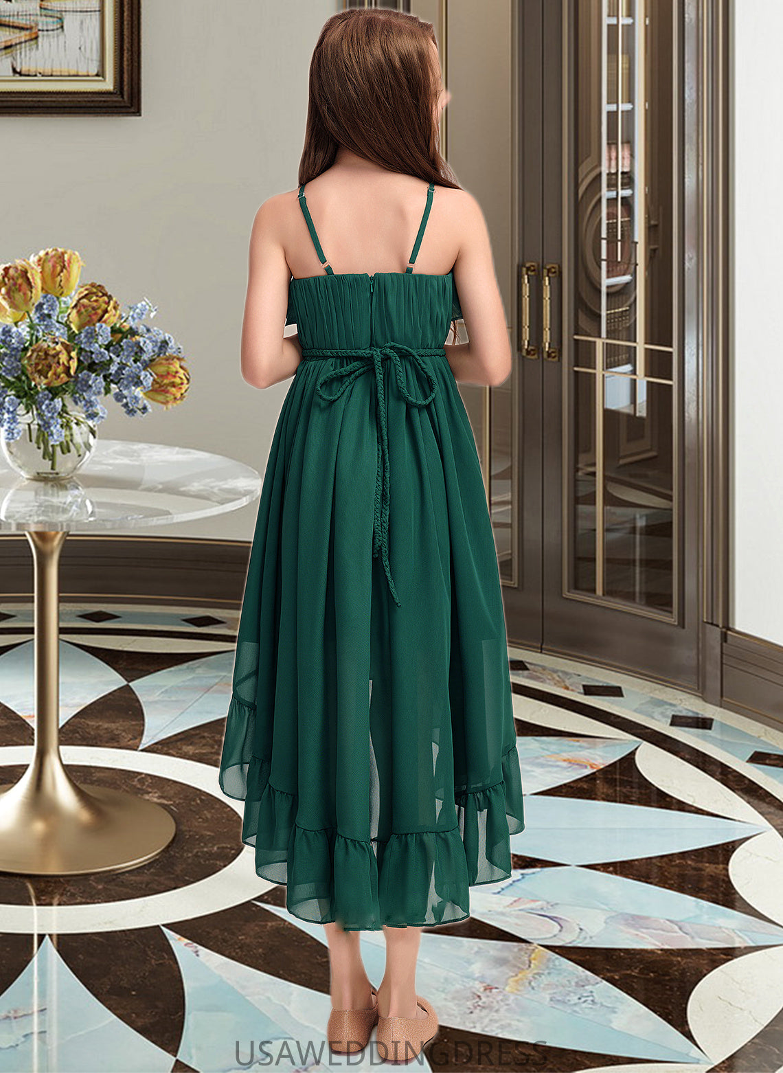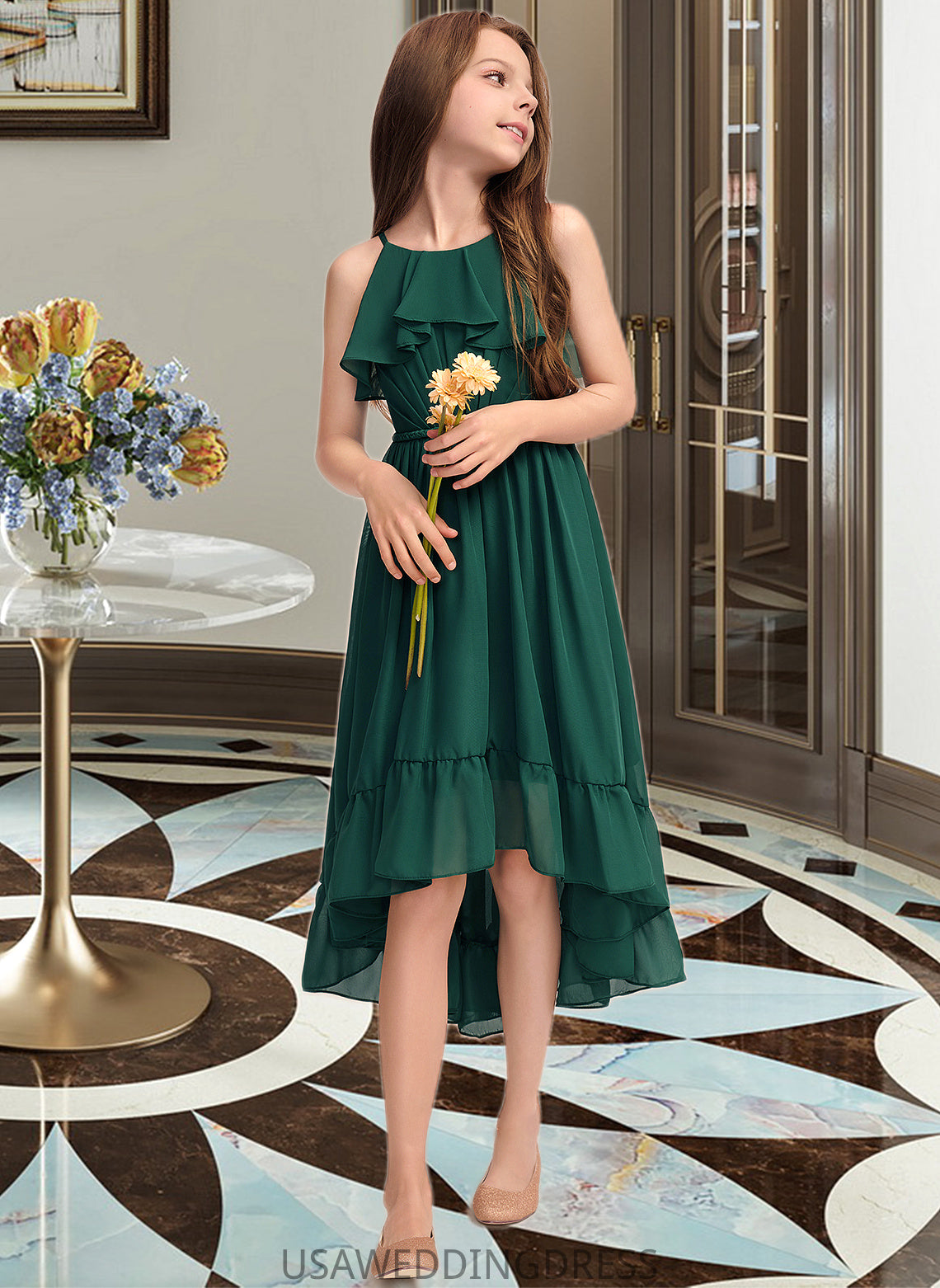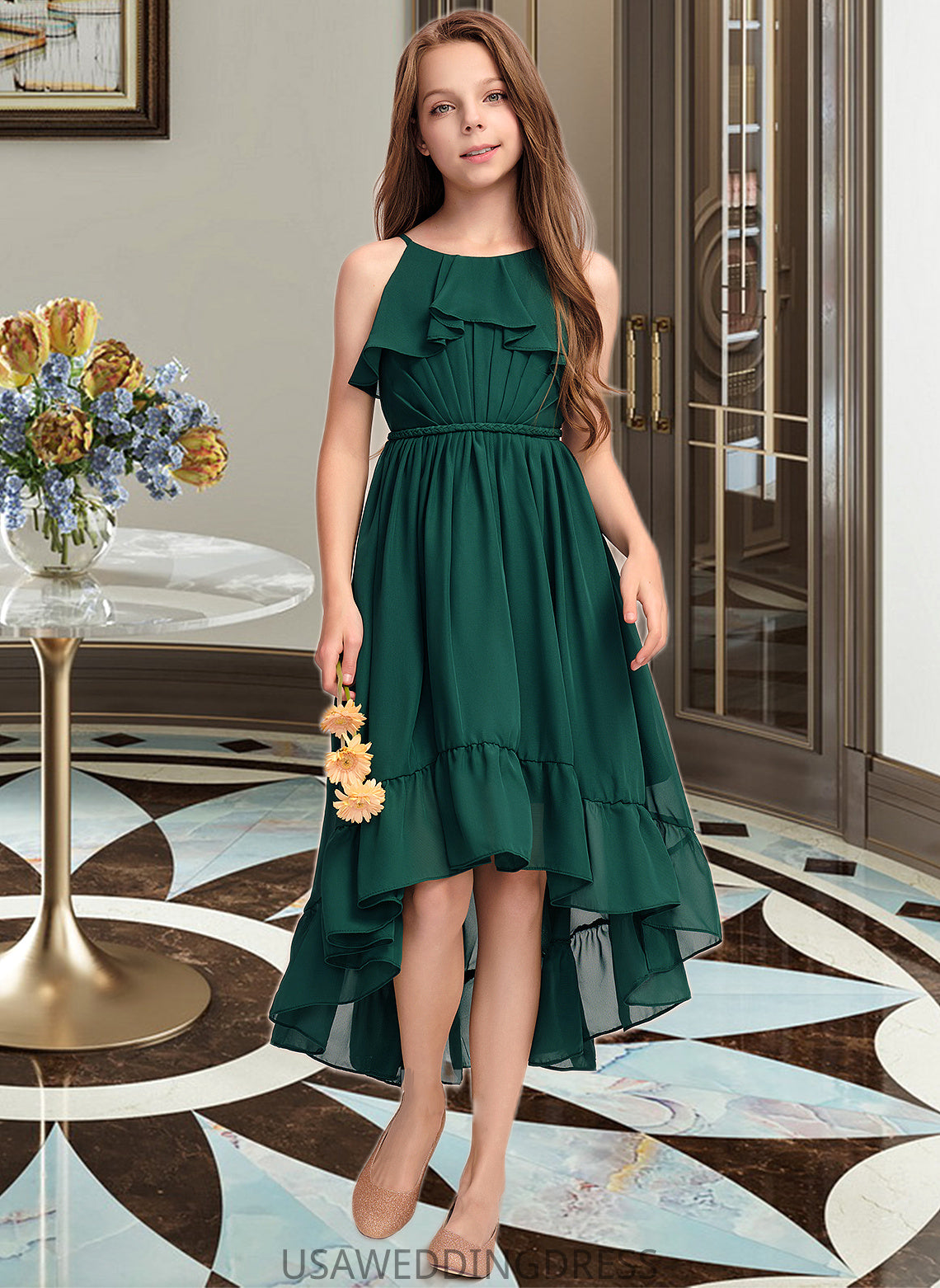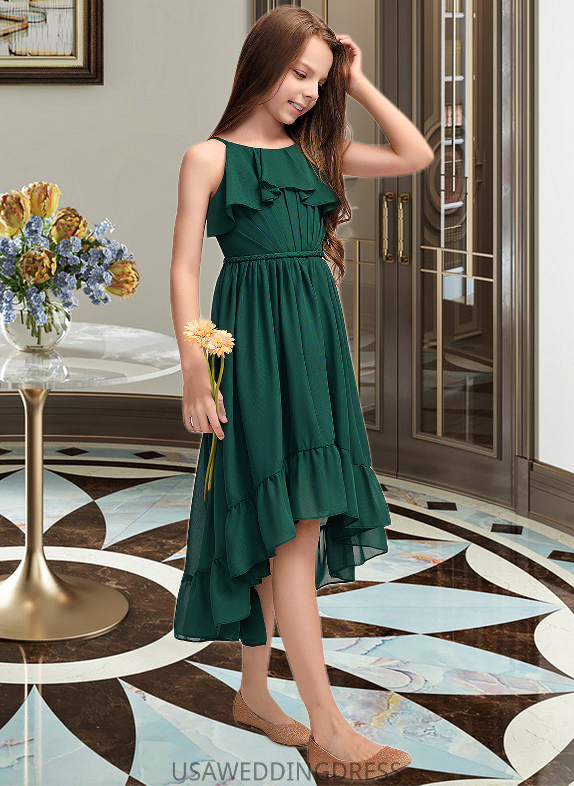 Barbara A-Line Scoop Neck Asymmetrical Chiffon Junior Bridesmaid Dress With Cascading Ruffles DSP0013395