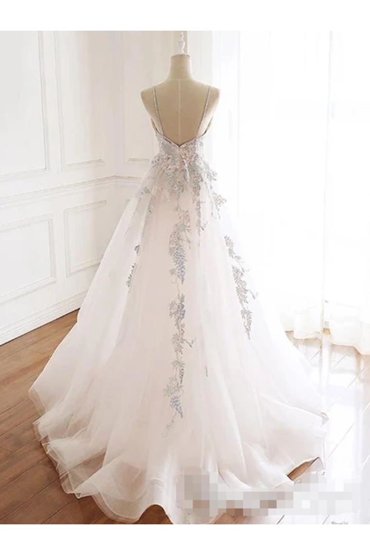 Beaded Spaghetti Strap Illusion V Neckline Wedding Dress With Colorful SRSPH7CQTB3