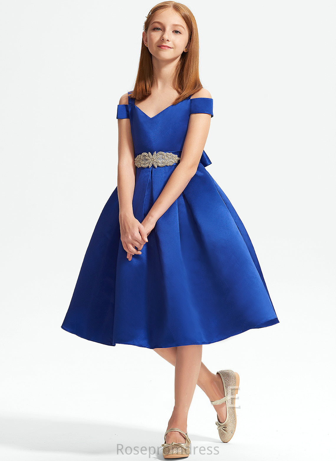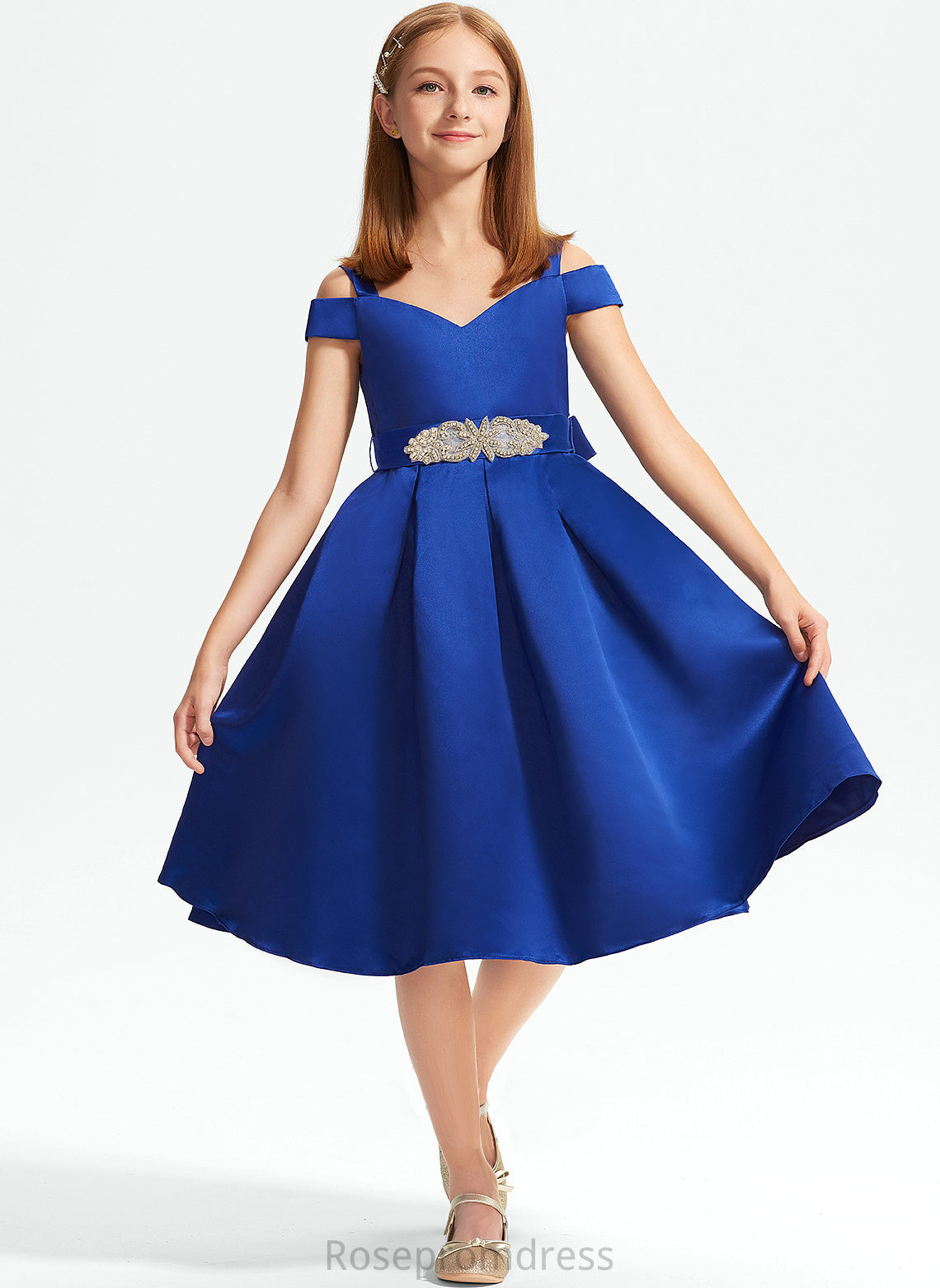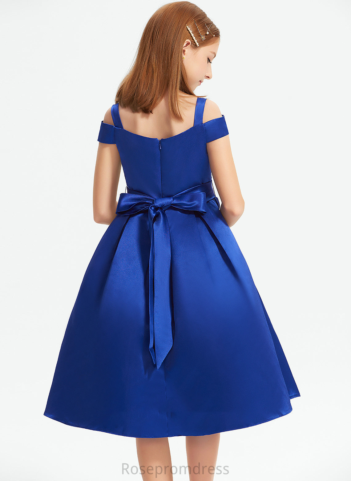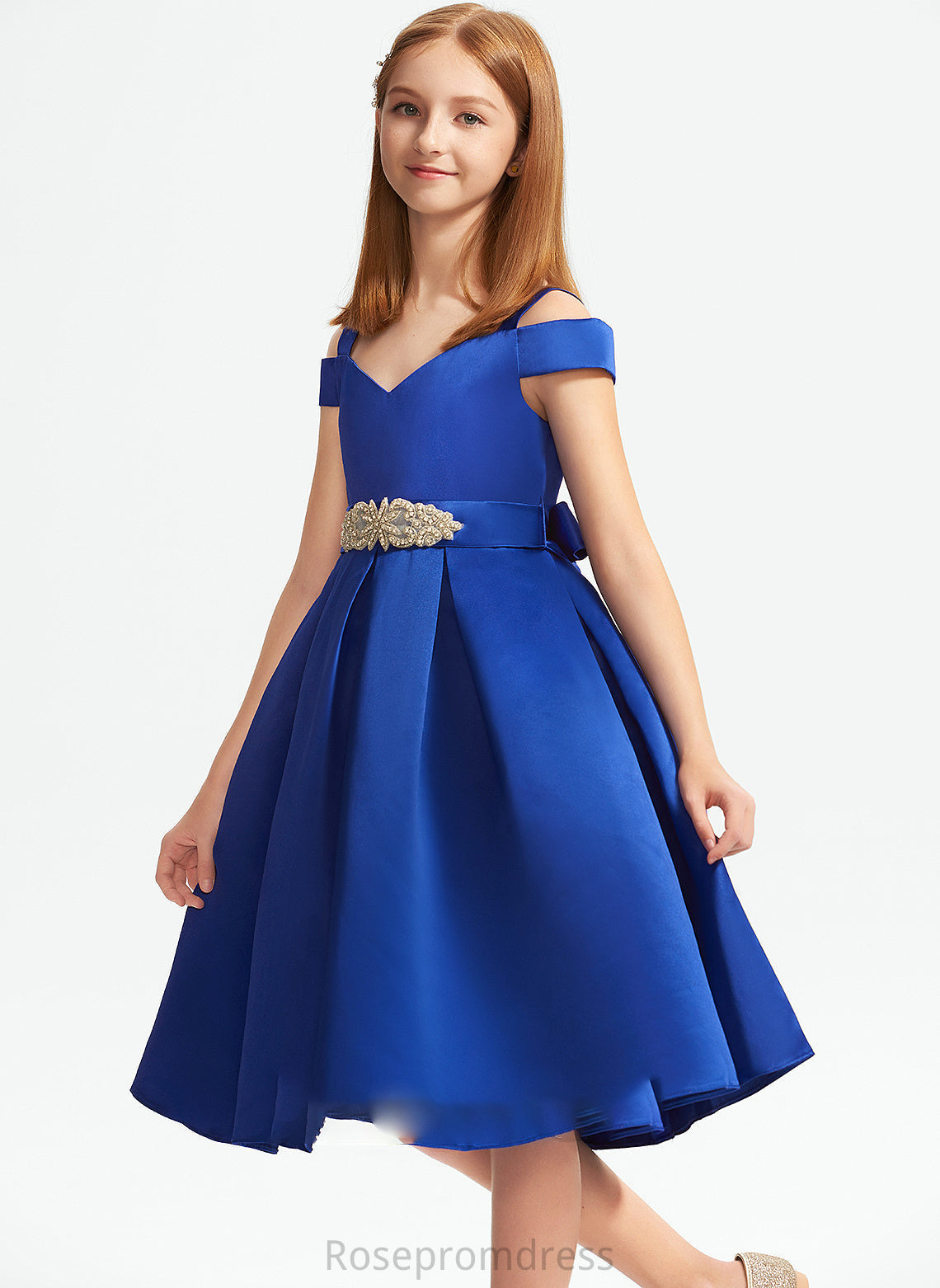Beading Knee-Length A-Line Raven Satin Bow(s) Off-the-Shoulder With Junior Bridesmaid Dresses
