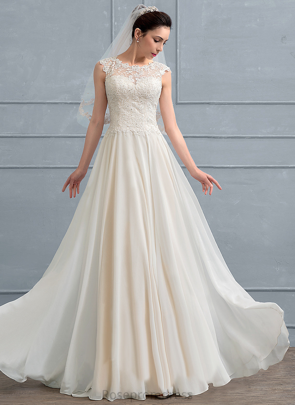 Beading Neck Floor-Length Scoop Dress Chiffon Sequins A-Line Wedding With Wedding Dresses Lace Nathalie