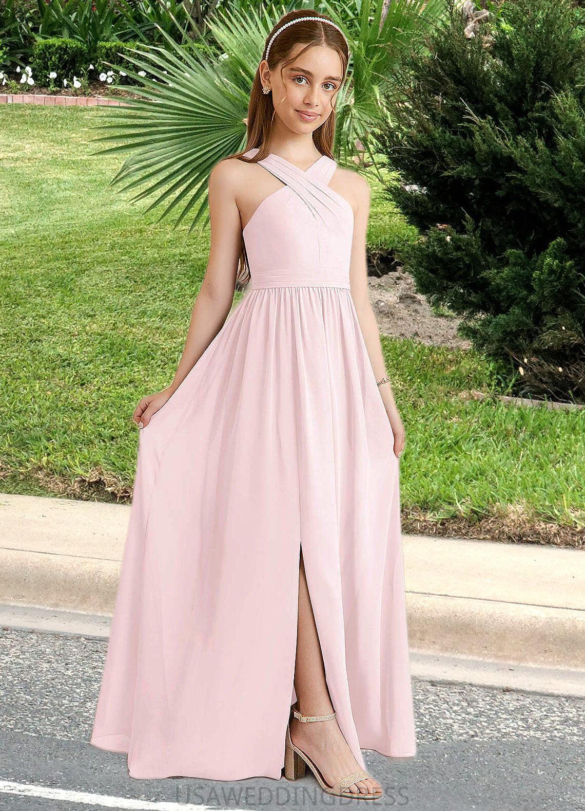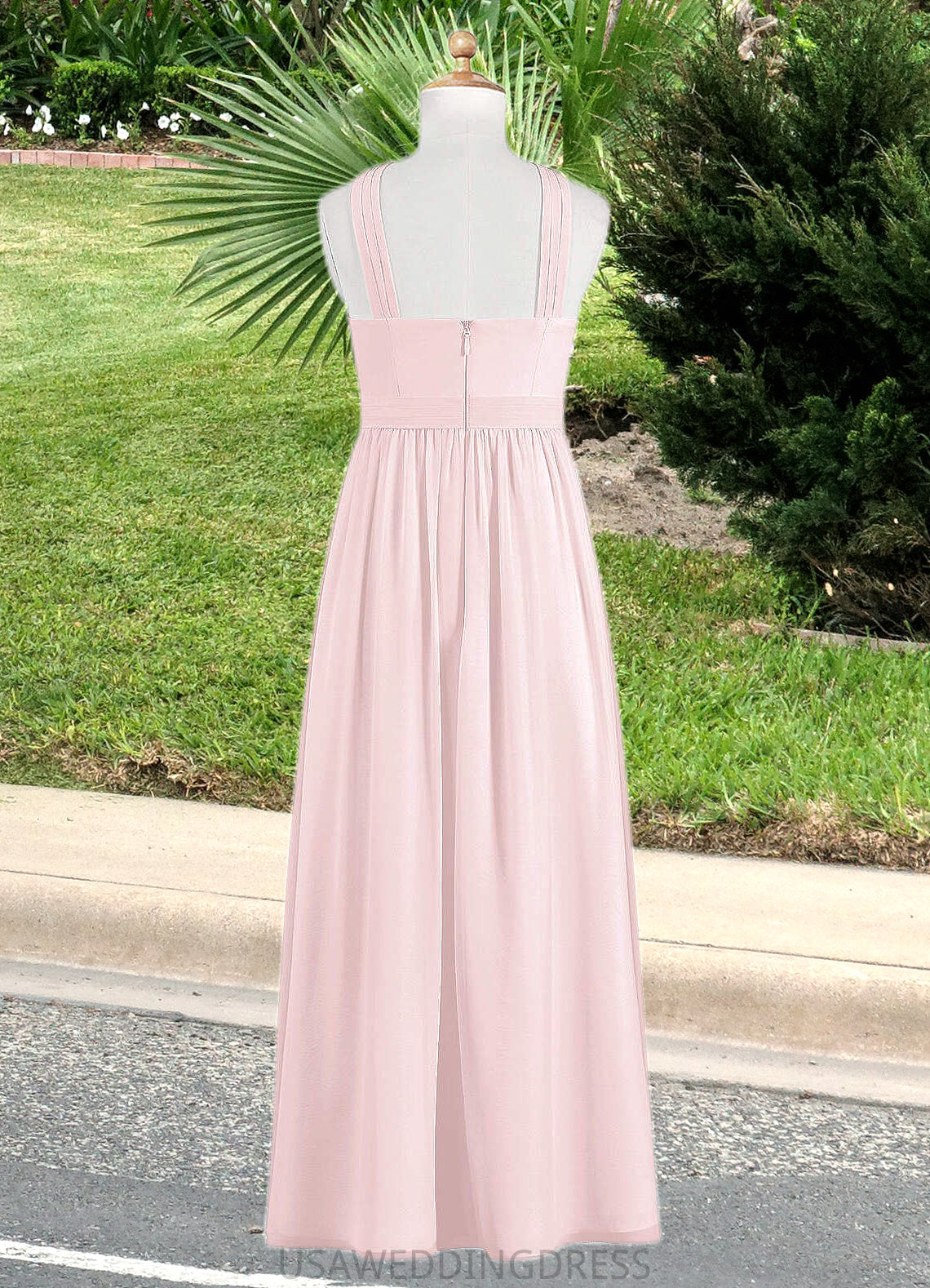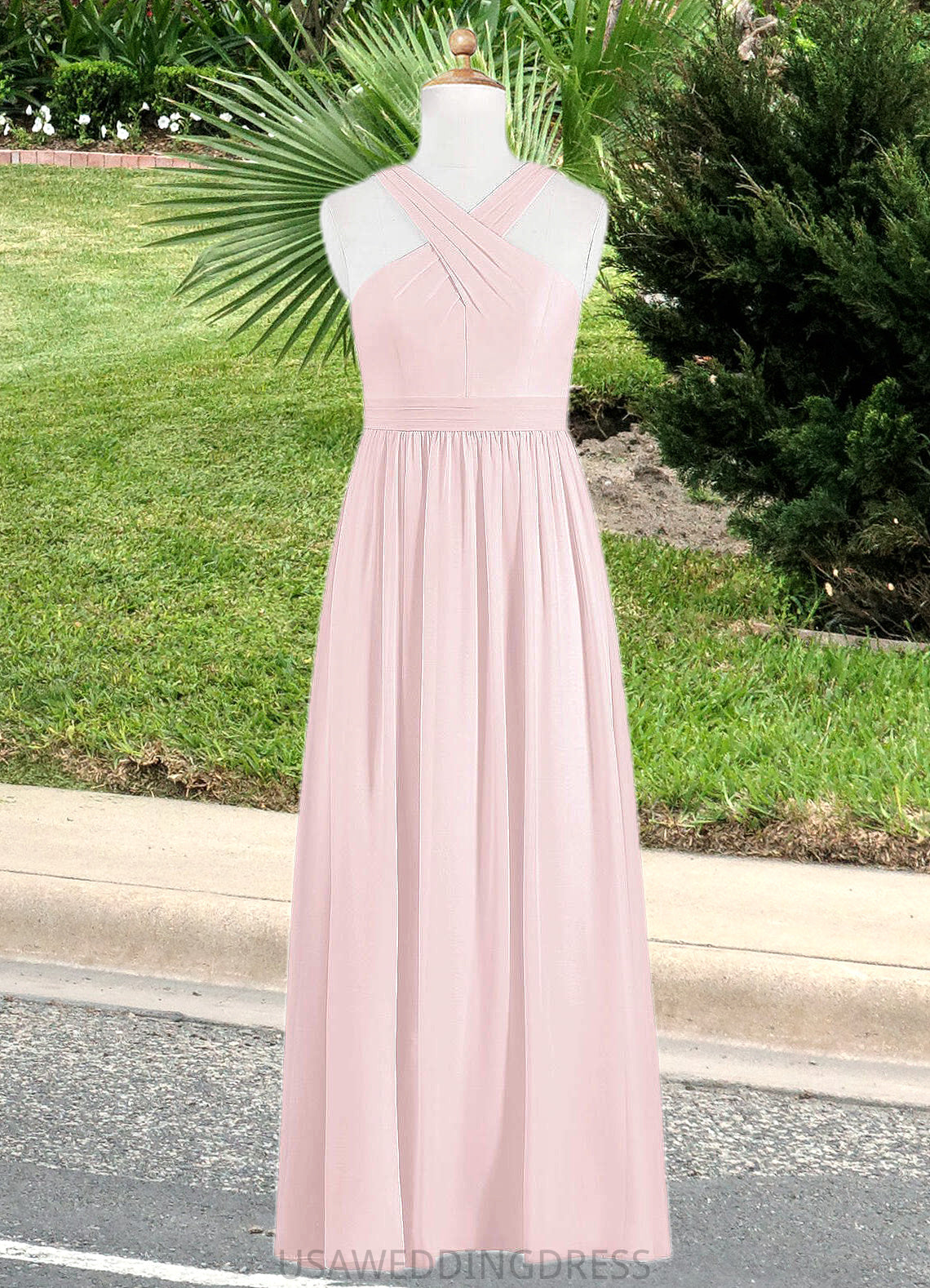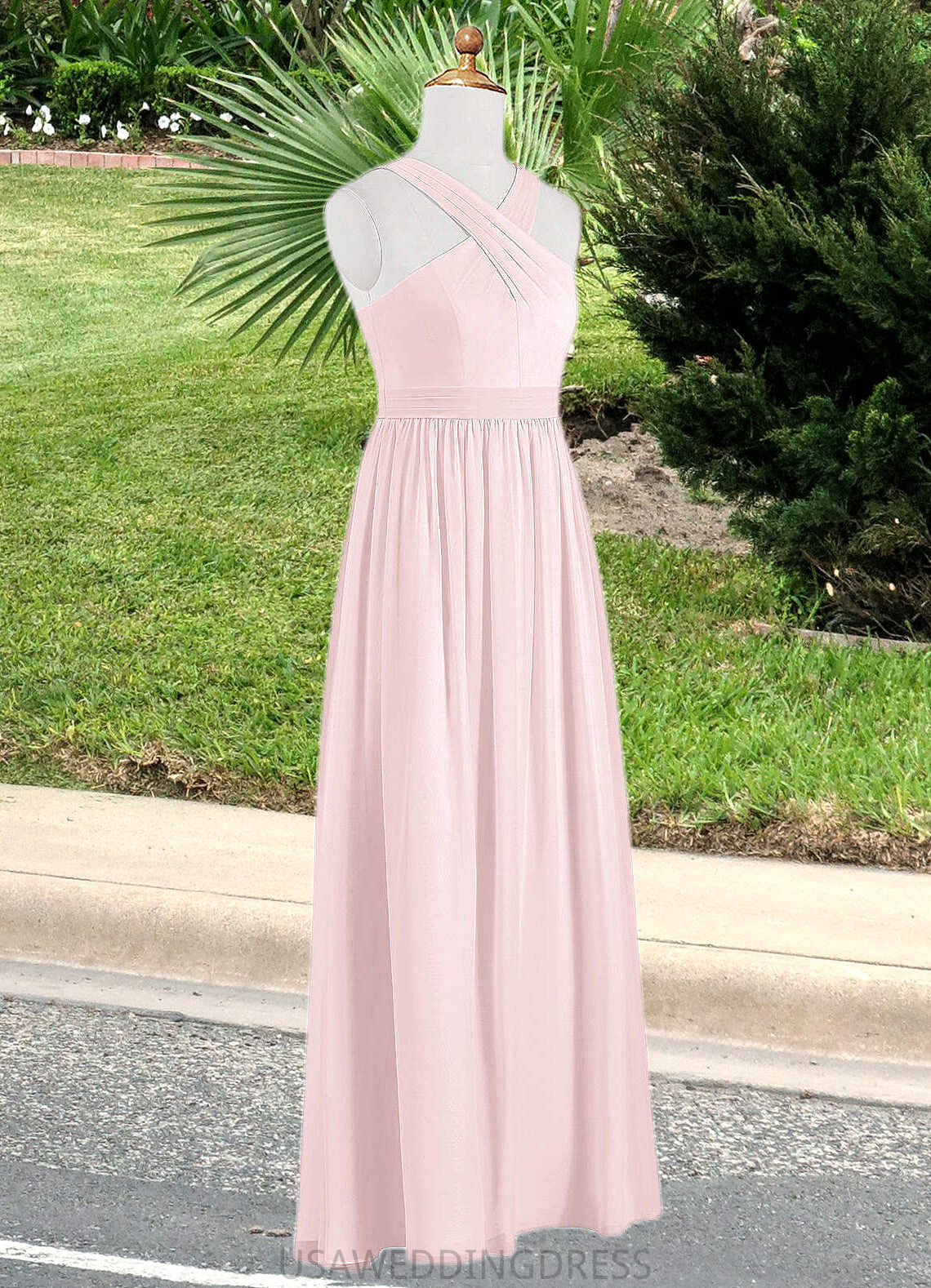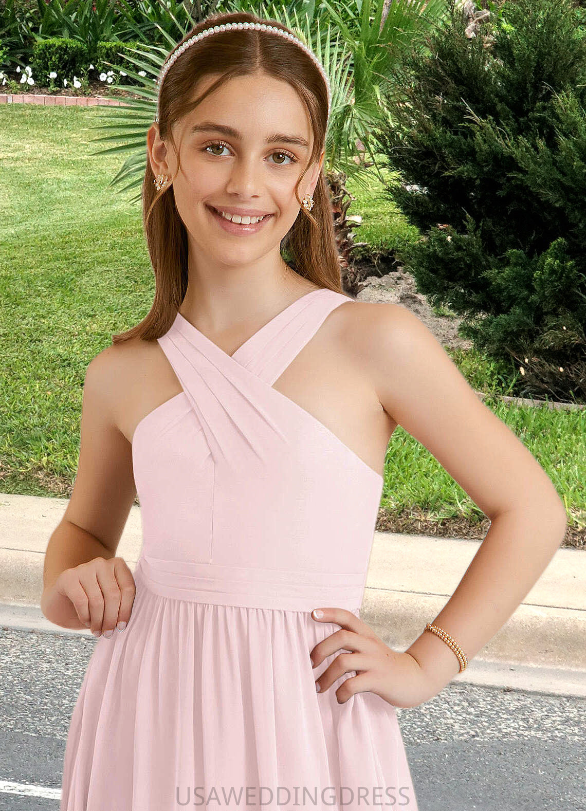 Bianca A-Line Pleated Chiffon Floor-Length Junior Bridesmaid Dress Blushing Pink DSP0022849