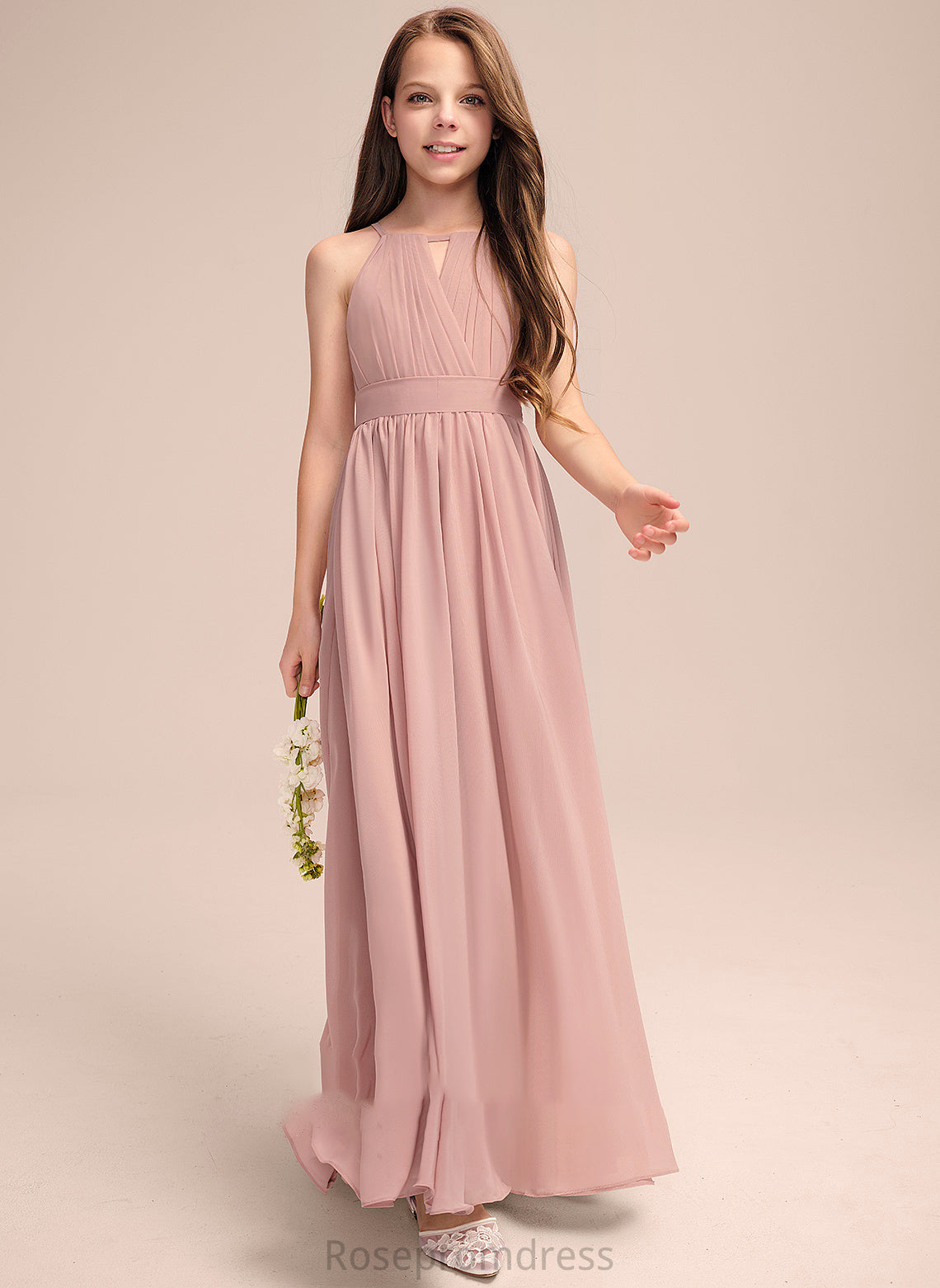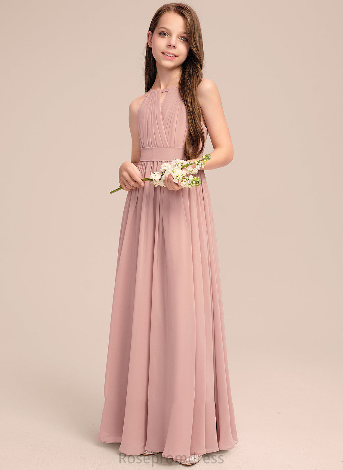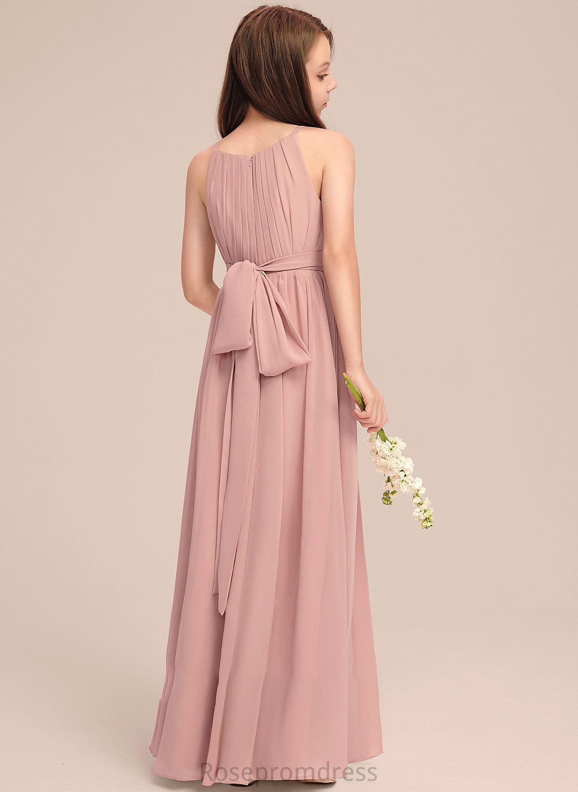 Bow(s) With Floor-Length Junior Bridesmaid Dresses Neck Scoop A-Line Ruffle Chiffon Belinda