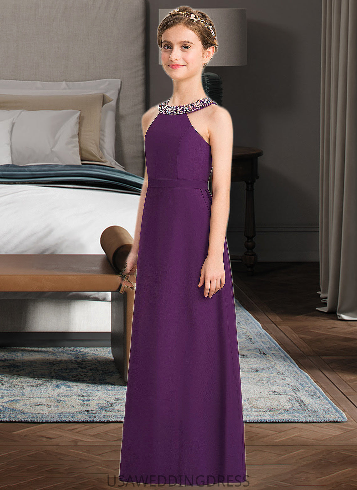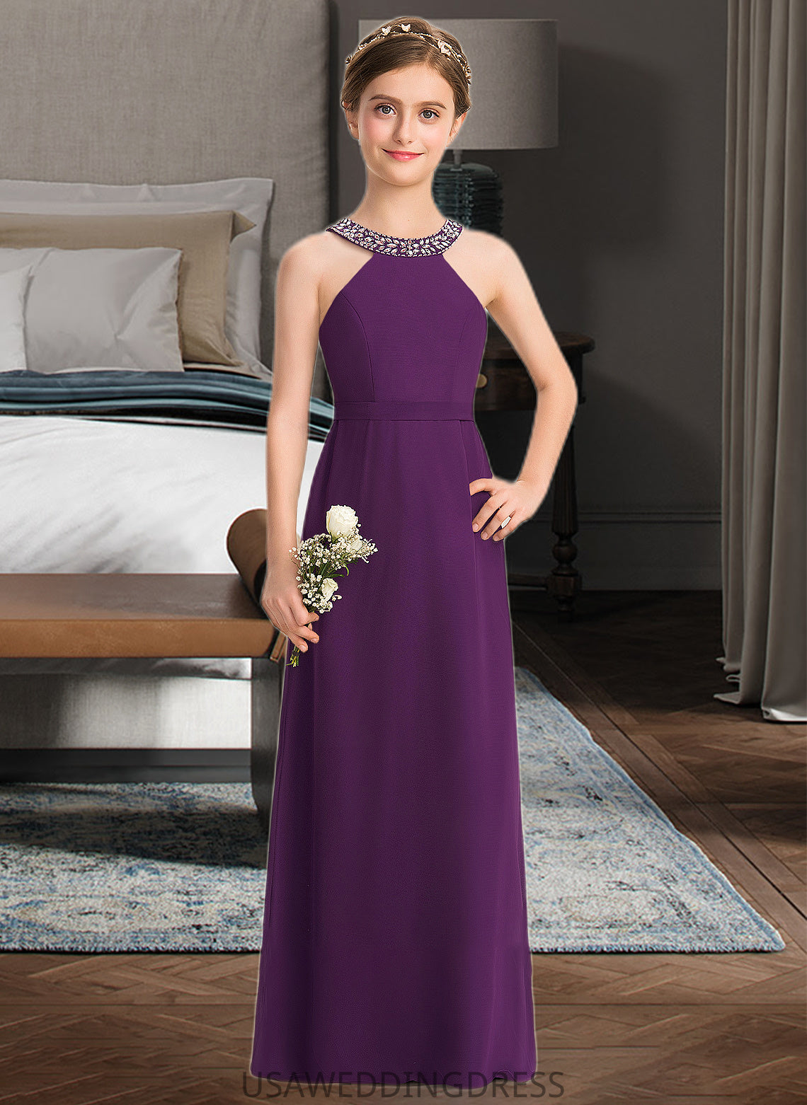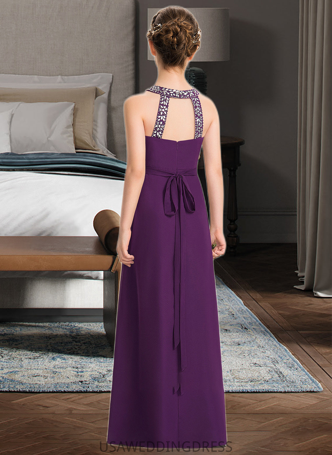 Brooke A-Line Scoop Neck Floor-Length Chiffon Junior Bridesmaid Dress With Beading Bow(s) DSP0013361