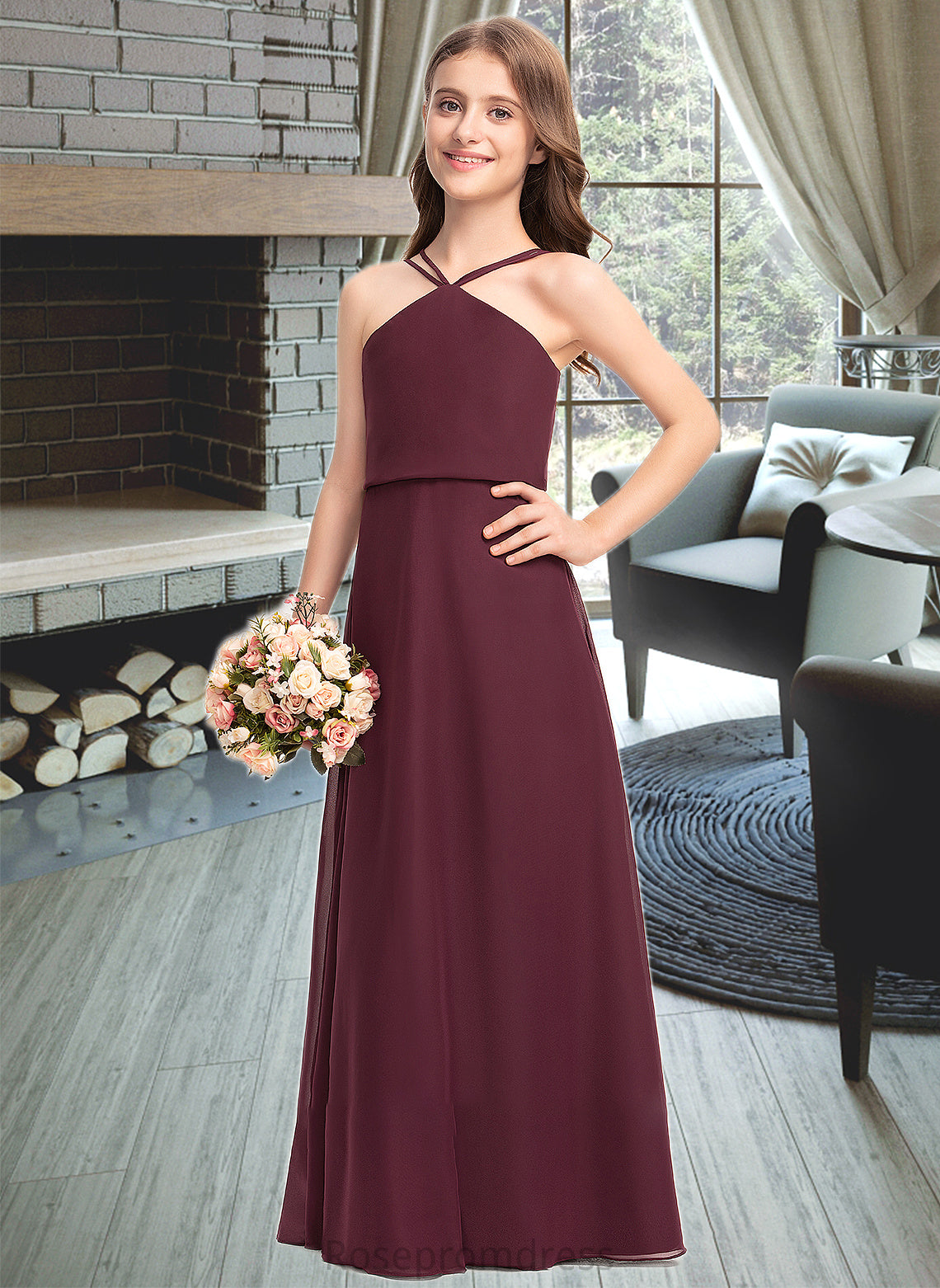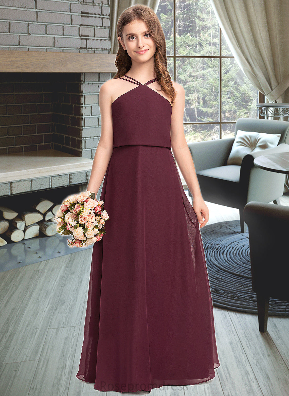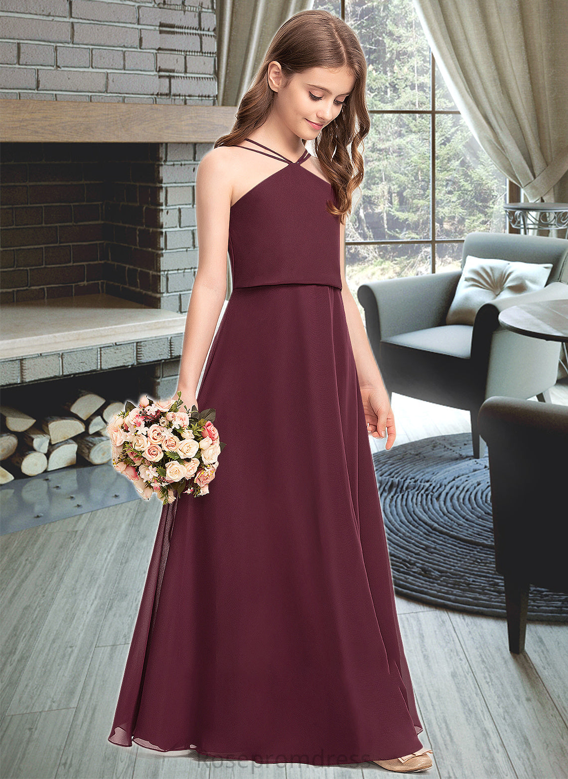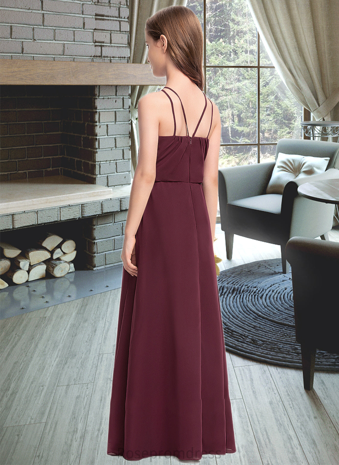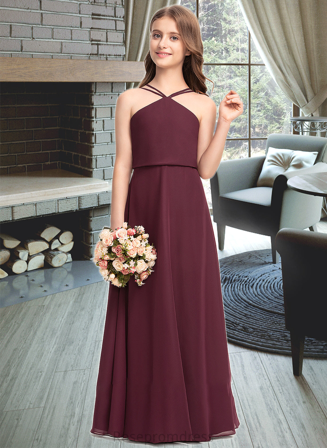 Brooklynn A-Line V-neck Floor-Length Chiffon Junior Bridesmaid Dress SRSP0013577