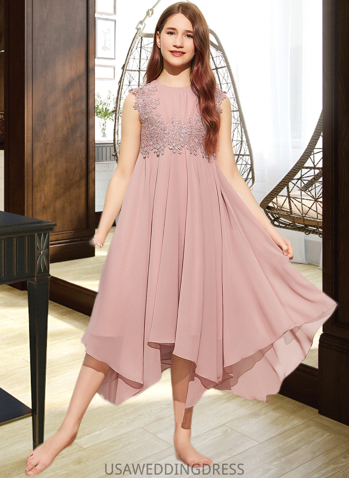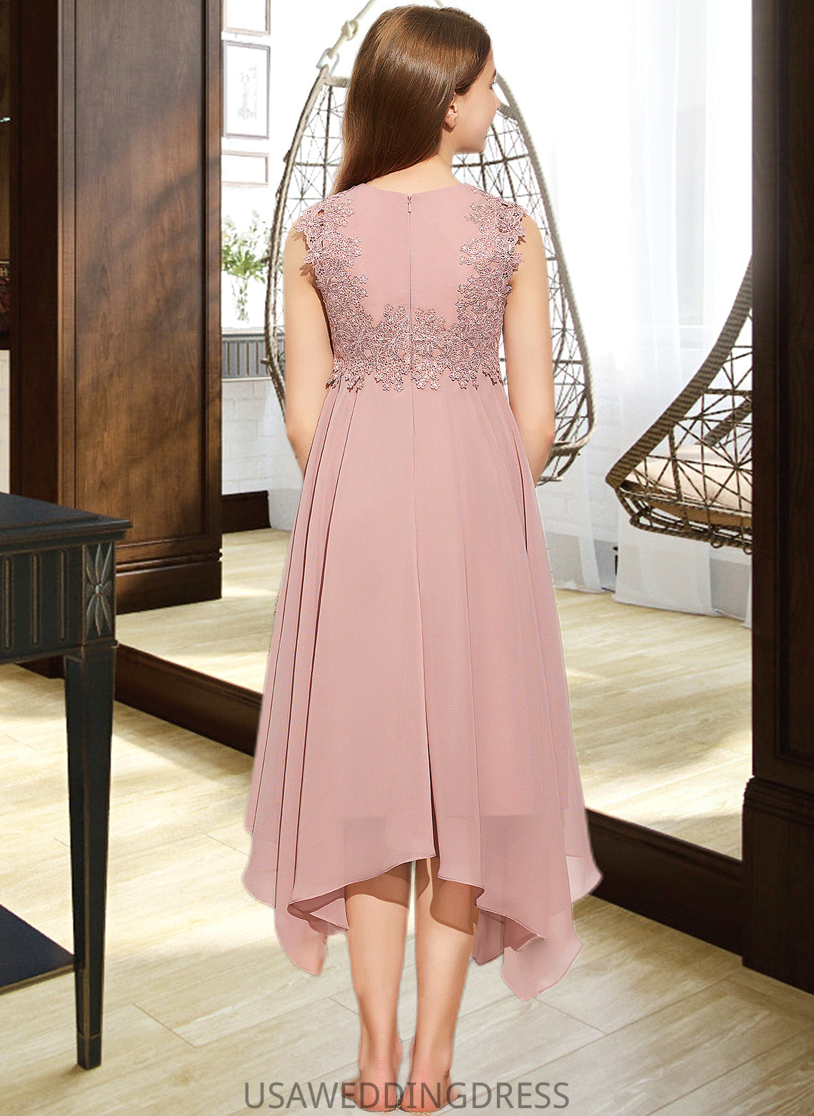 Bryanna A-Line Scoop Neck Tea-Length Chiffon Lace Junior Bridesmaid Dress DSP0013547