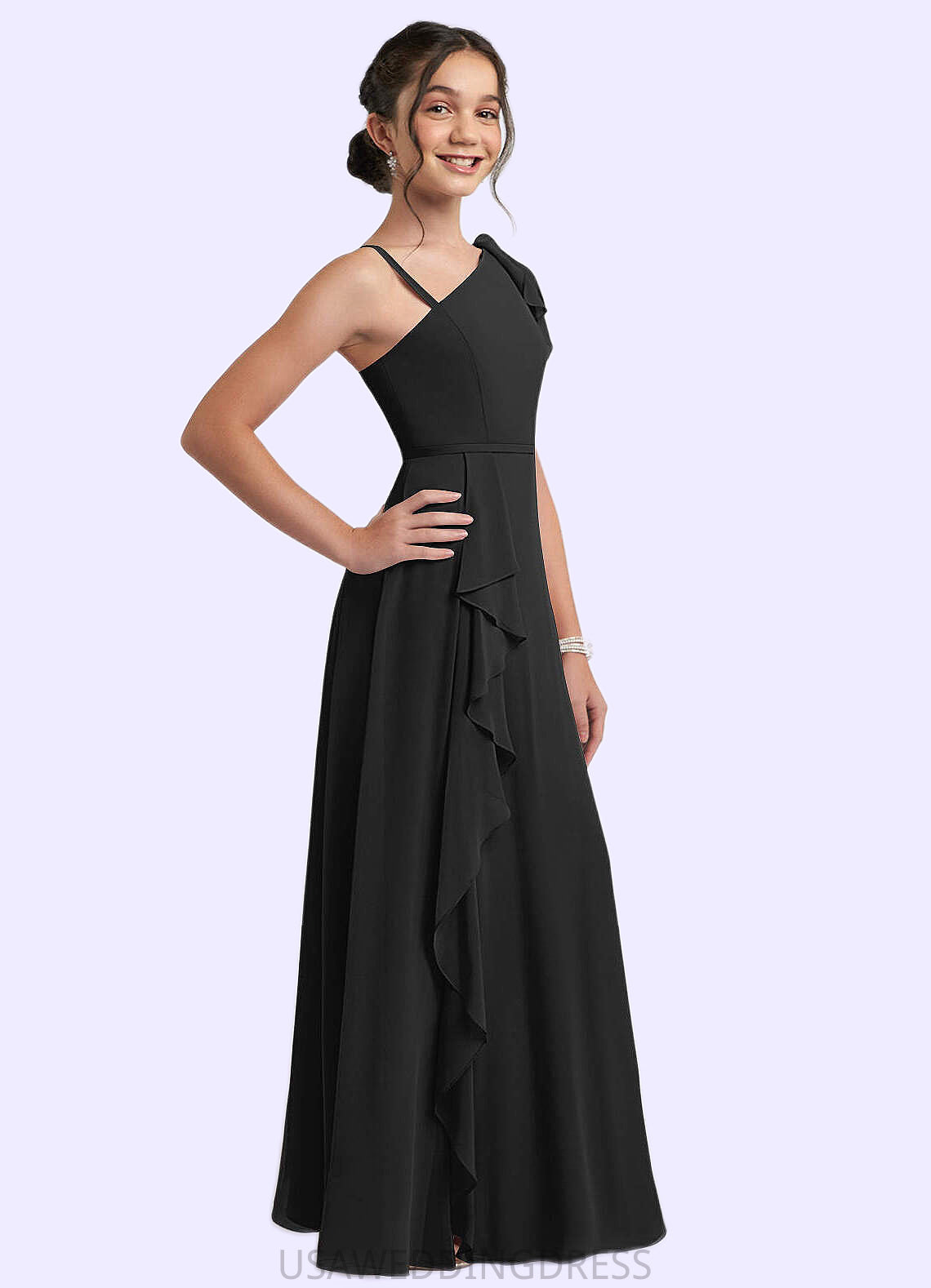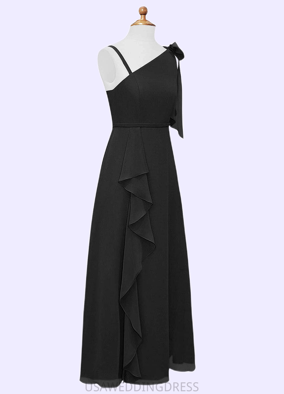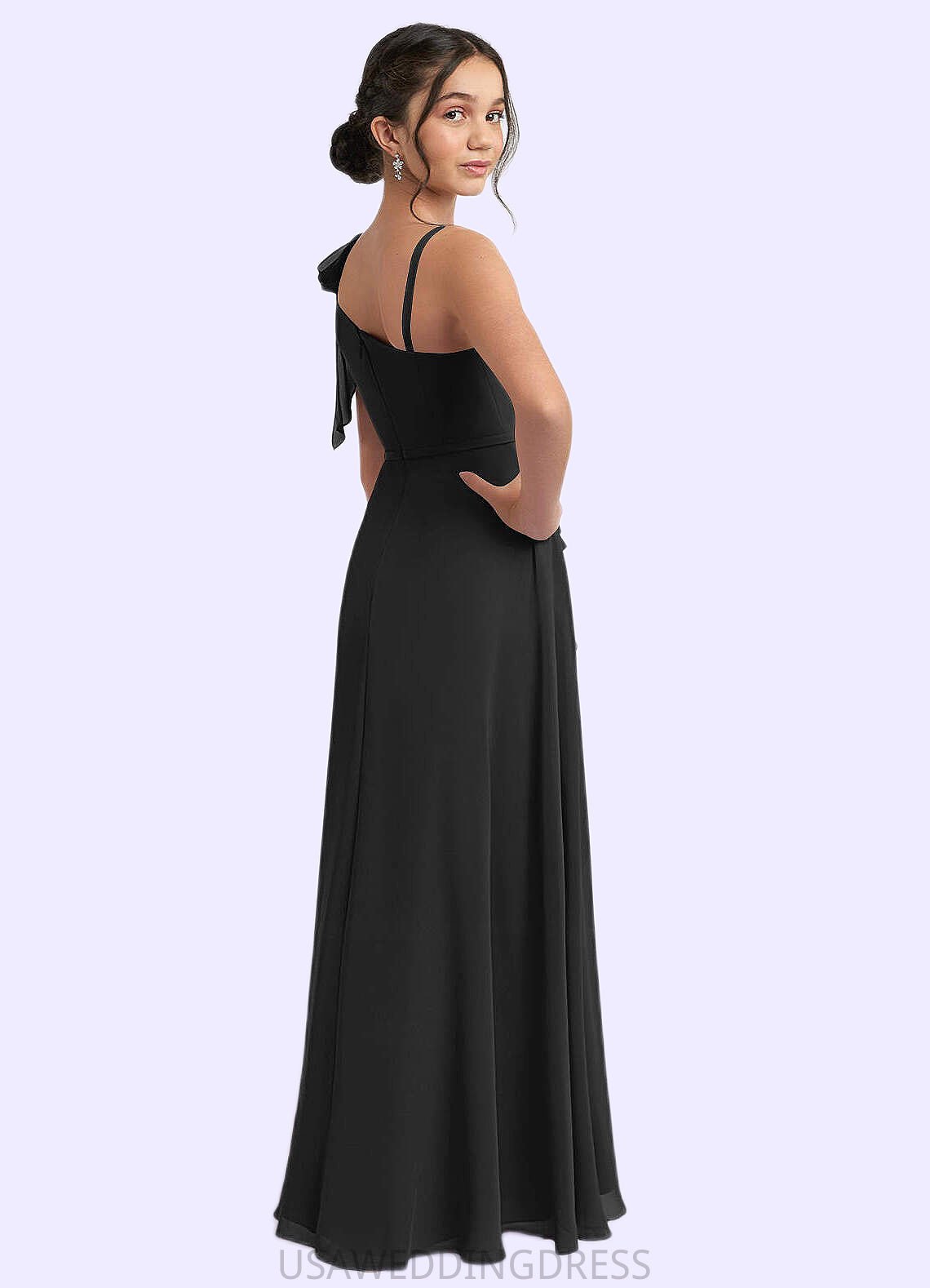 Brynlee A-Line Bow Chiffon Floor-Length Junior Bridesmaid Dress black DSP0022850