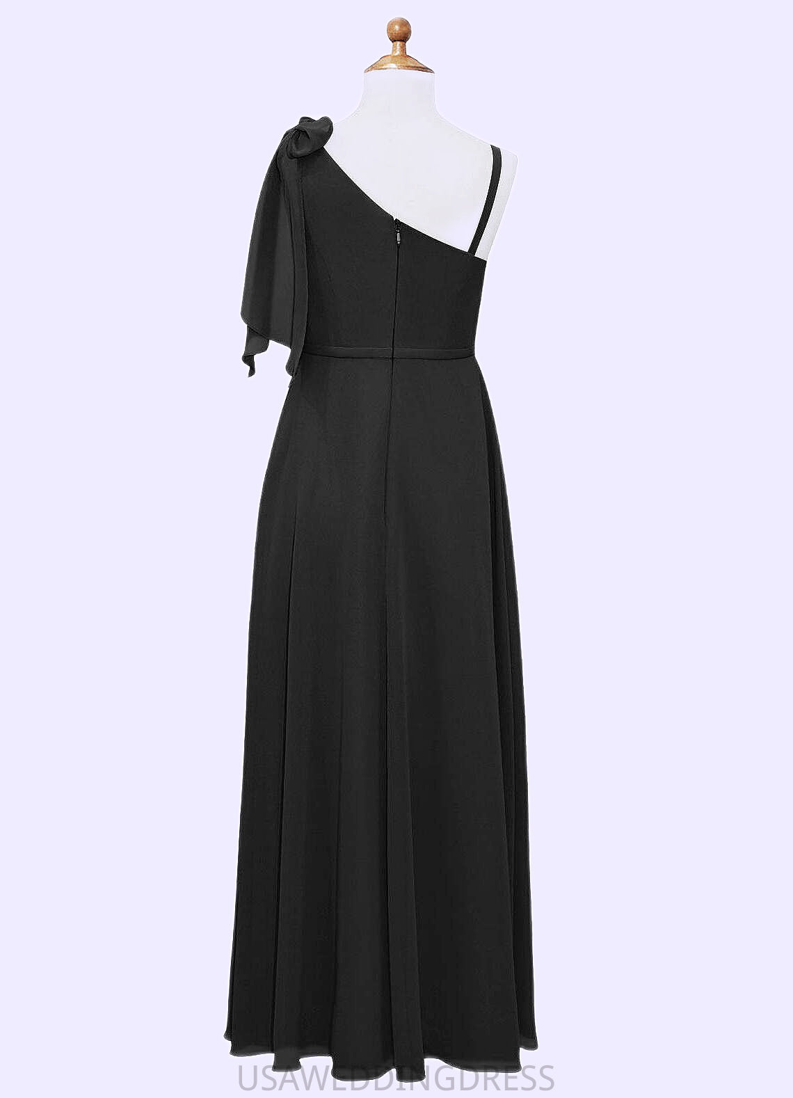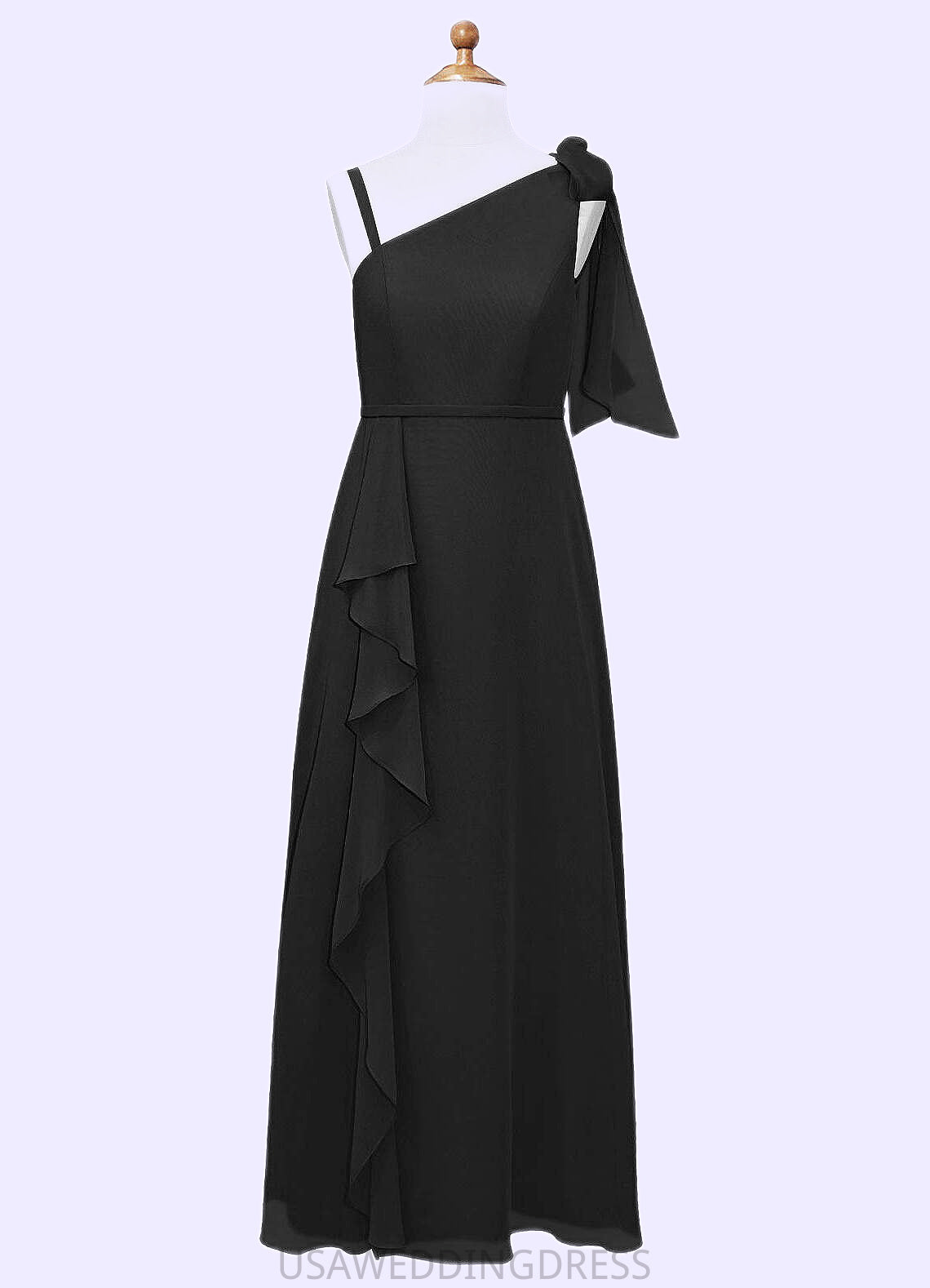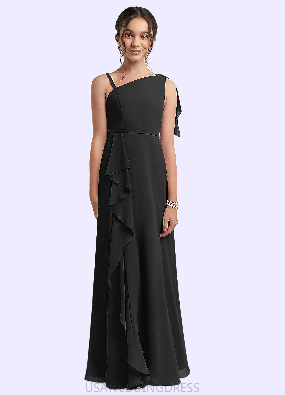 Brynlee A-Line Bow Chiffon Floor-Length Junior Bridesmaid Dress black DSP0022850