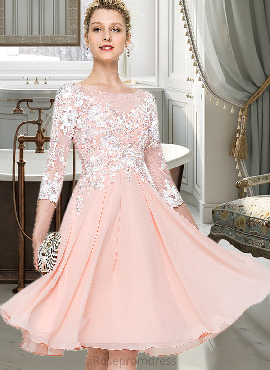 Brynlee Scoop Neck Knee-Length Chiffon Wedding Dress SRSP0013805