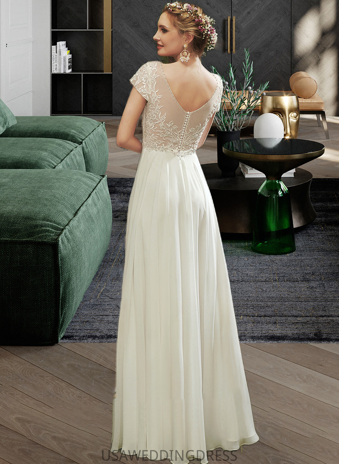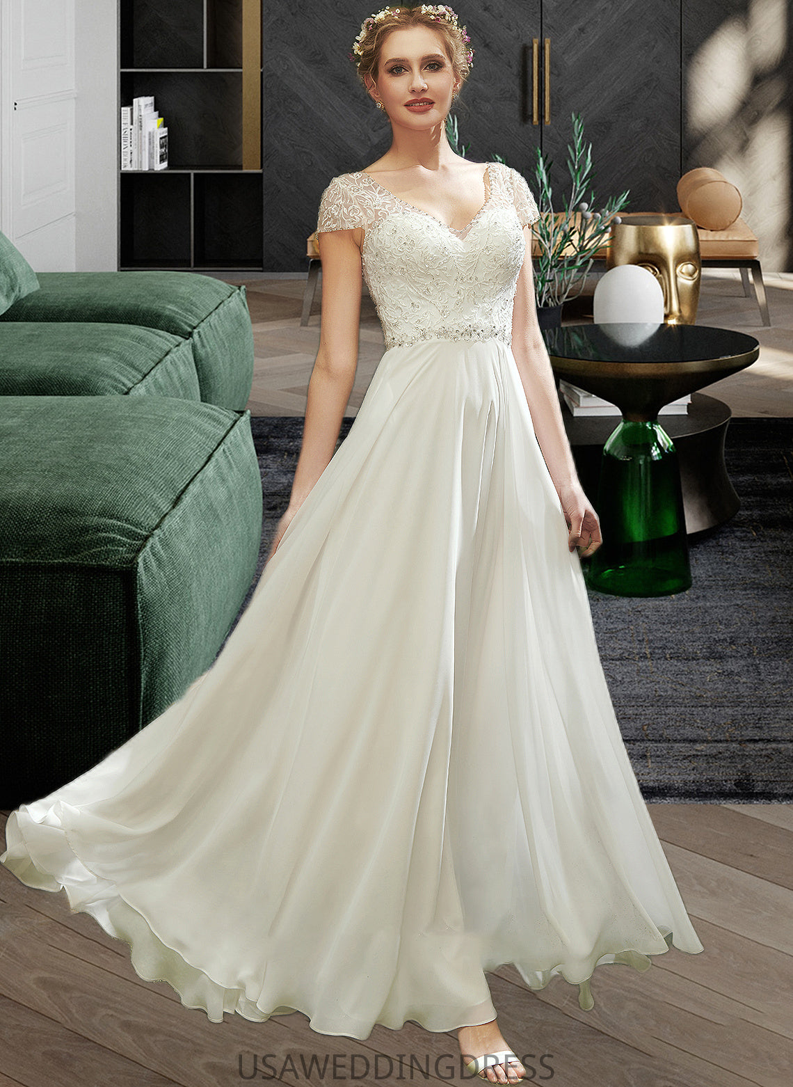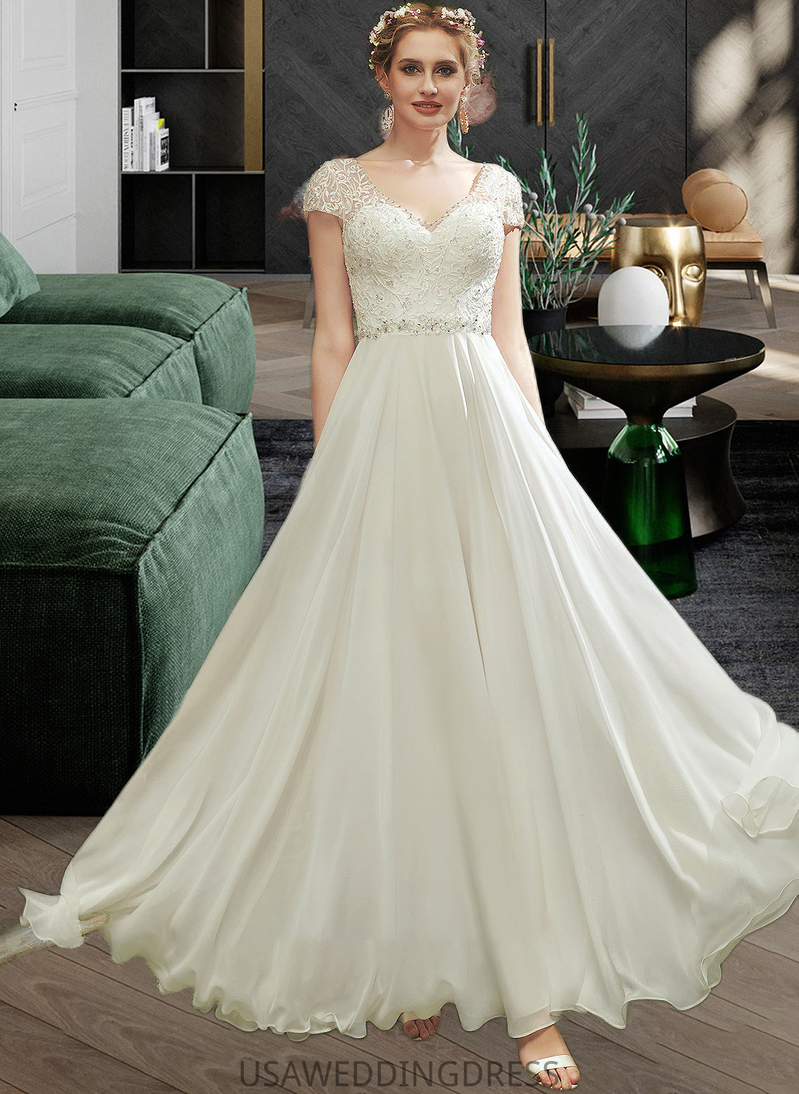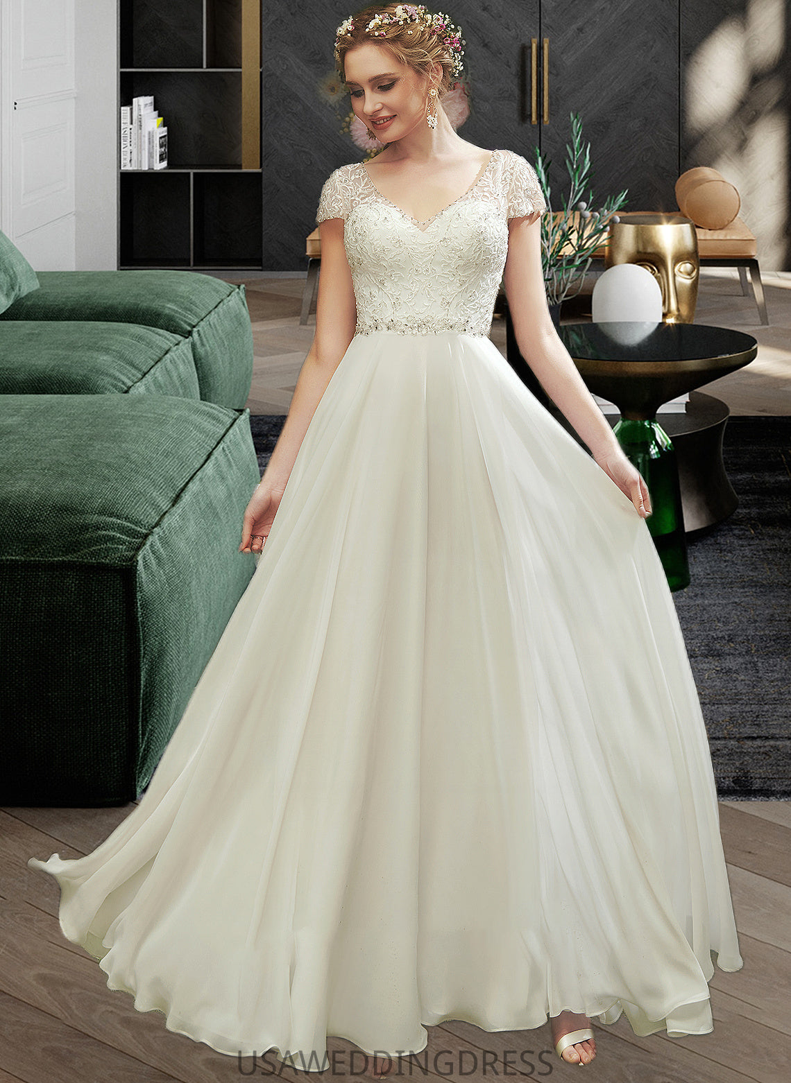 Caitlyn A-Line V-neck Floor-Length Wedding Dress With Lace Beading Sequins DSP0013784