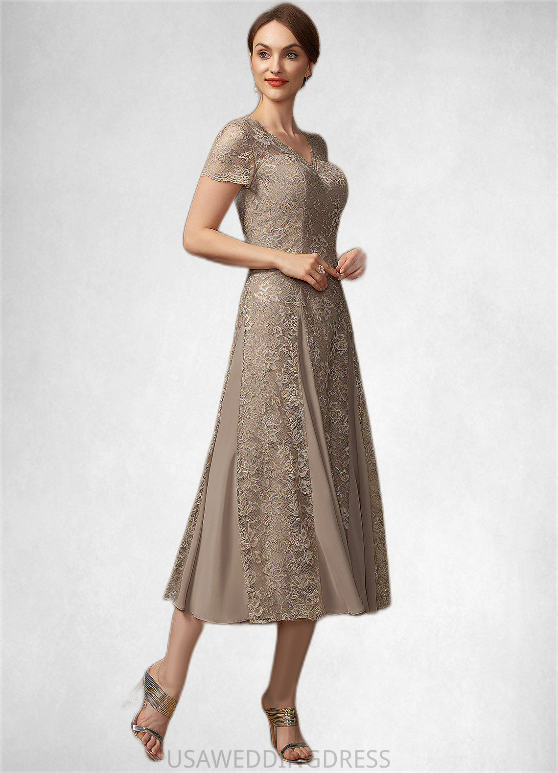 Callie A-line V-Neck Tea-Length Chiffon Lace Mother of the Bride Dress DS126P0014644