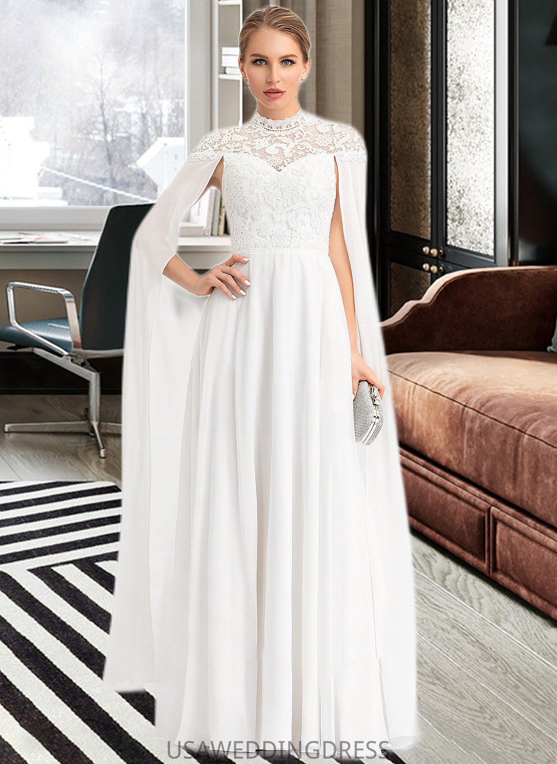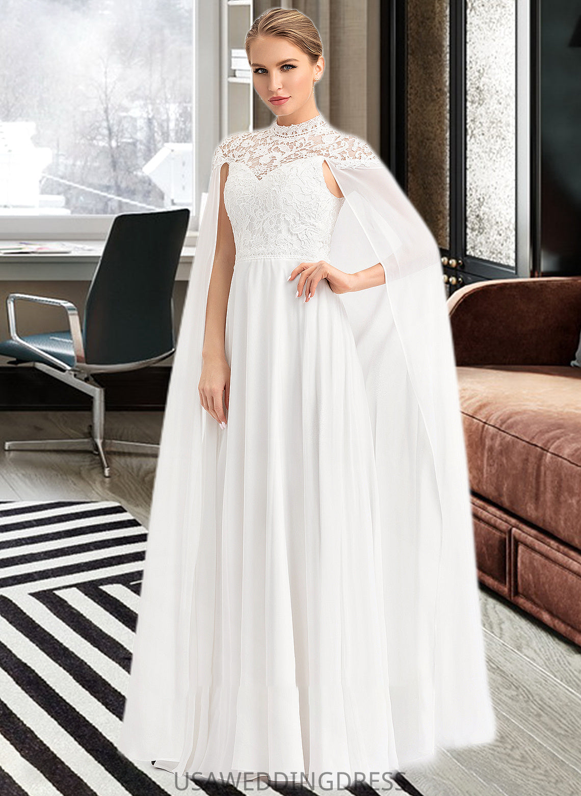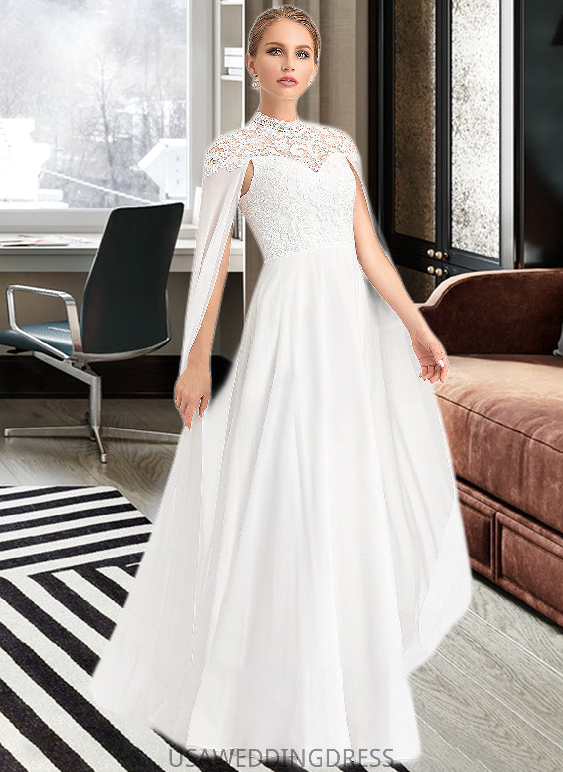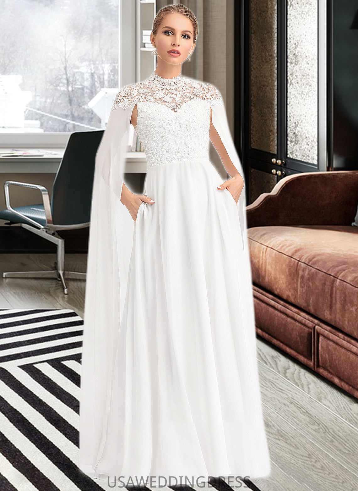 Camryn A-Line High Neck Floor-Length Chiffon Wedding Dress DSP0013748