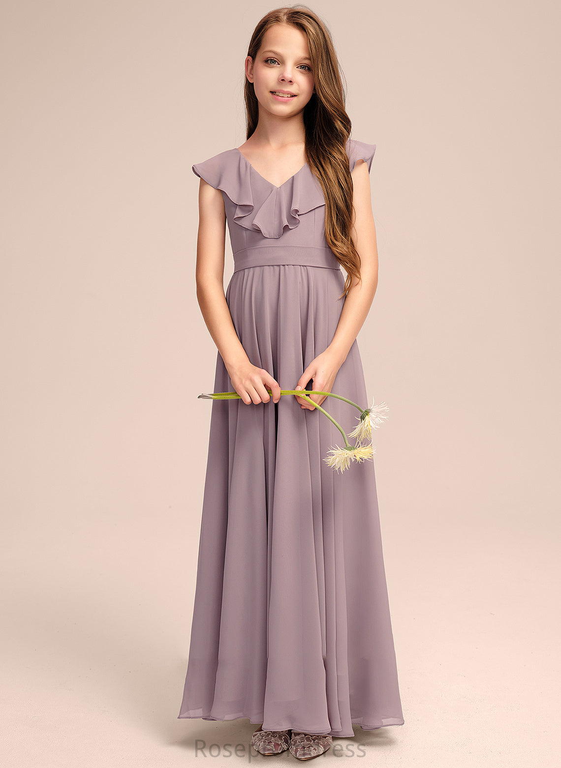 Cascading A-Line Chiffon V-neck Junior Bridesmaid Dresses Muriel Ruffles With Floor-Length