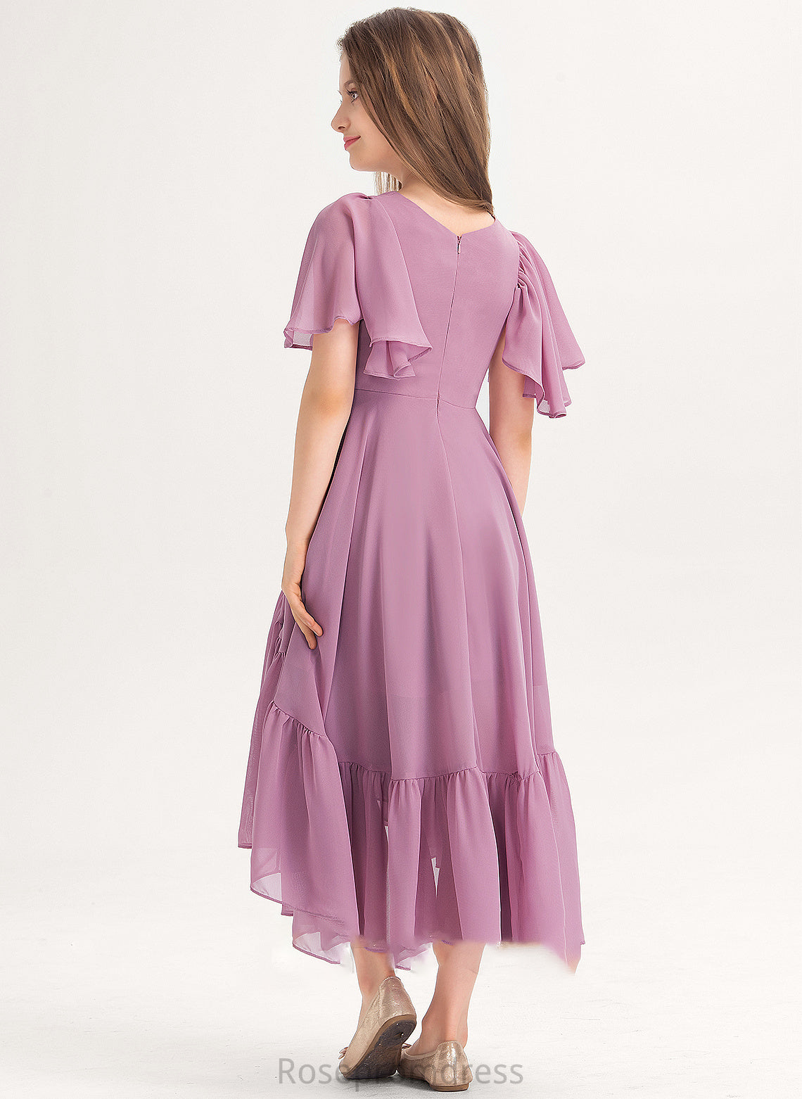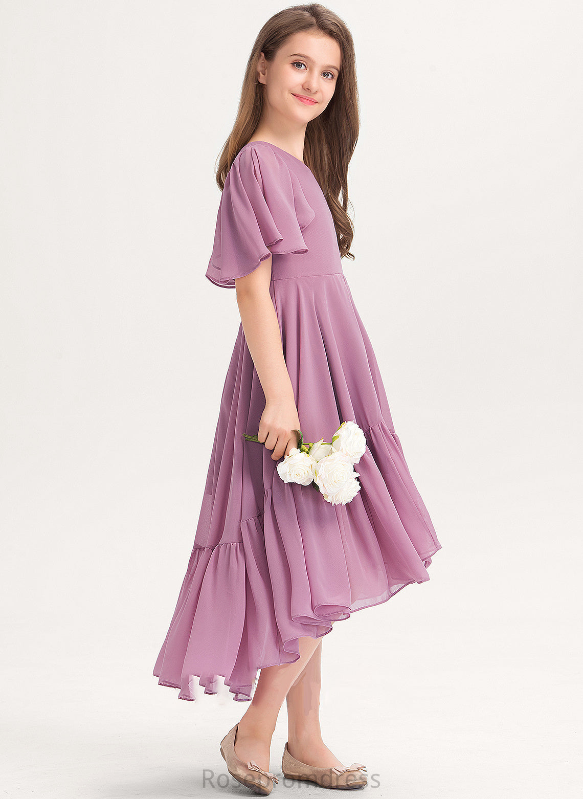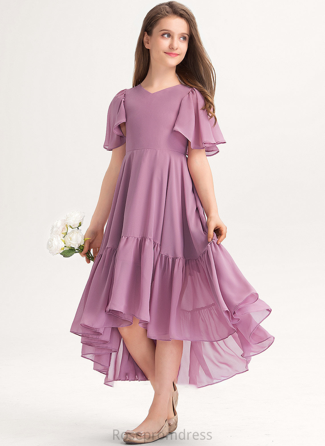 Cascading Asymmetrical Prudence Ruffles With Junior Bridesmaid Dresses Chiffon V-neck A-Line