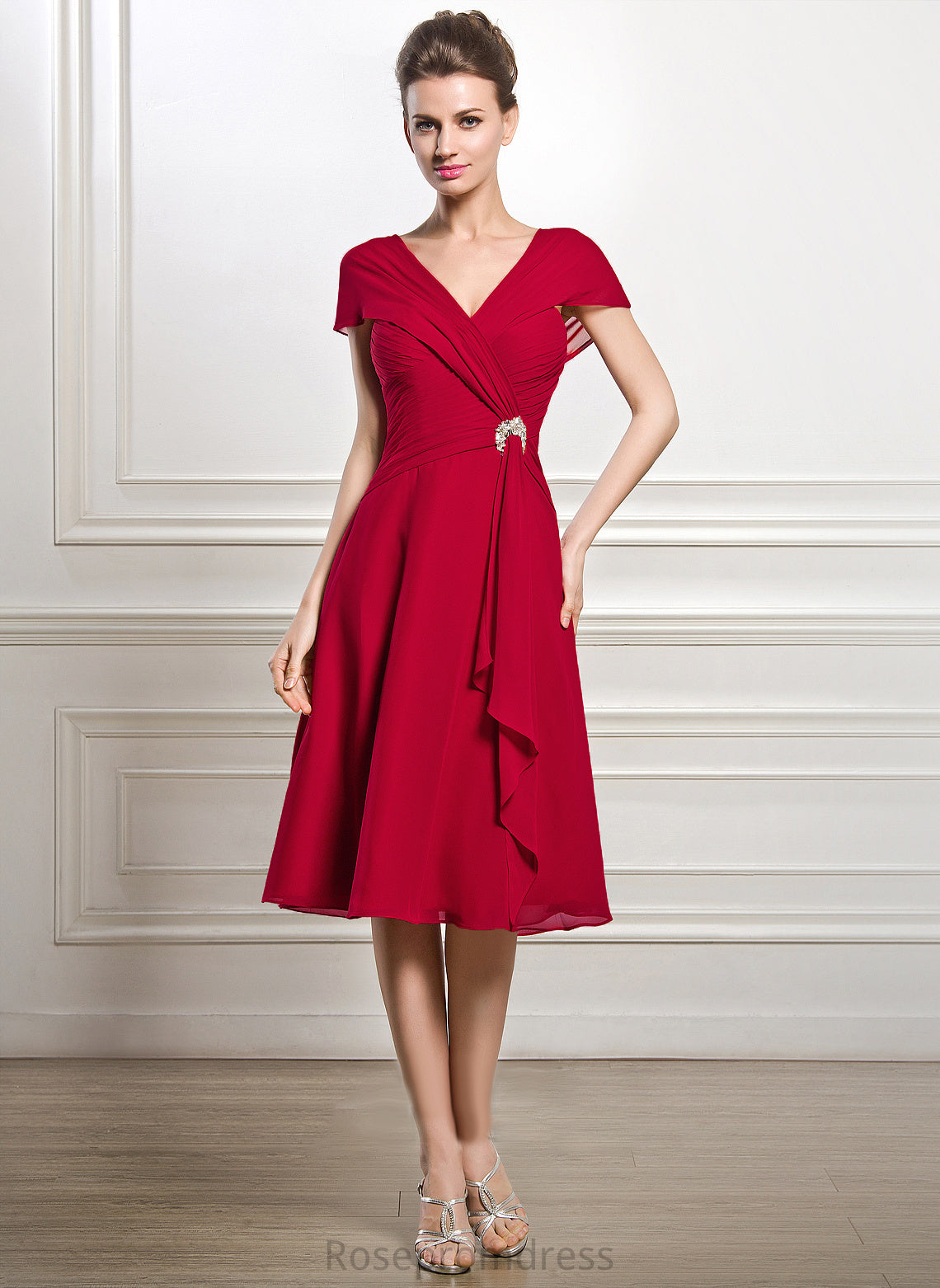 Cascading Ruffles of Bride With Chiffon Knee-Length Mother Dress Beading Madalynn Mother of the Bride Dresses the Sequins V-neck A-Line