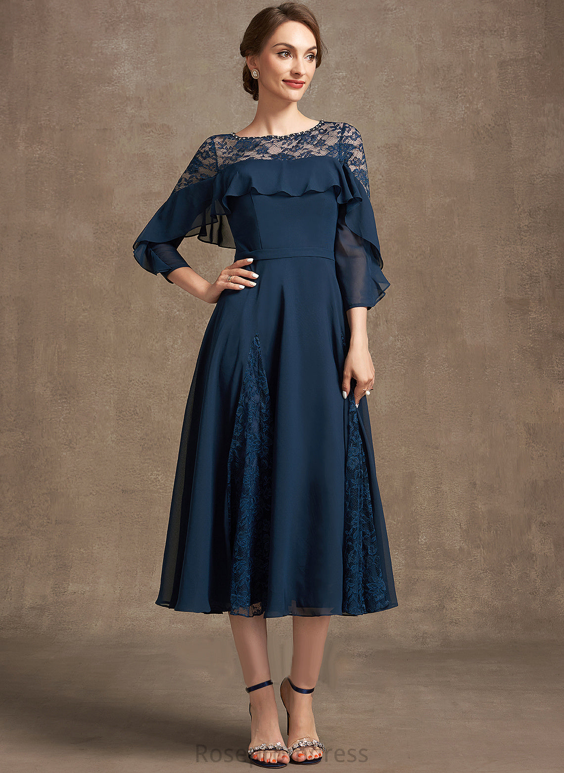 Cascading the Mother Scoop With Beading of A-Line Bride Zoie Neck Mother of the Bride Dresses Ruffles Chiffon Dress Tea-Length Lace