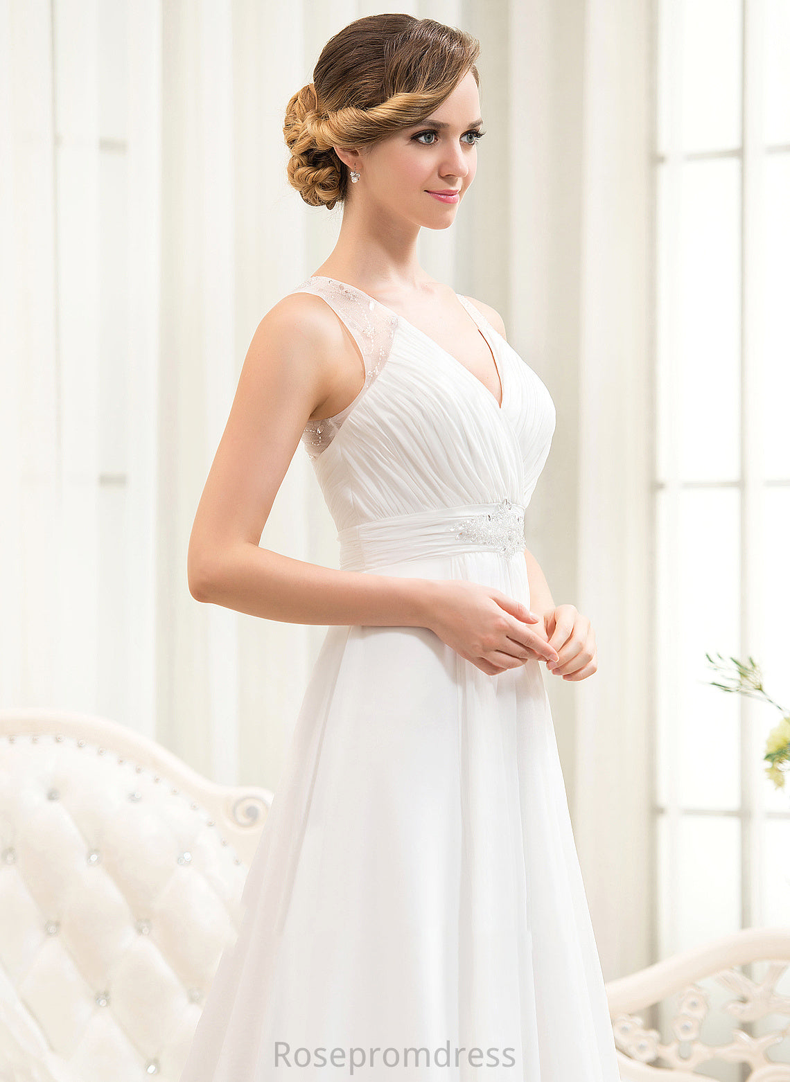 Cascading Wedding Michaela Wedding Dresses Chiffon Beading A-Line V-neck Train With Dress Sweep Ruffles Sequins