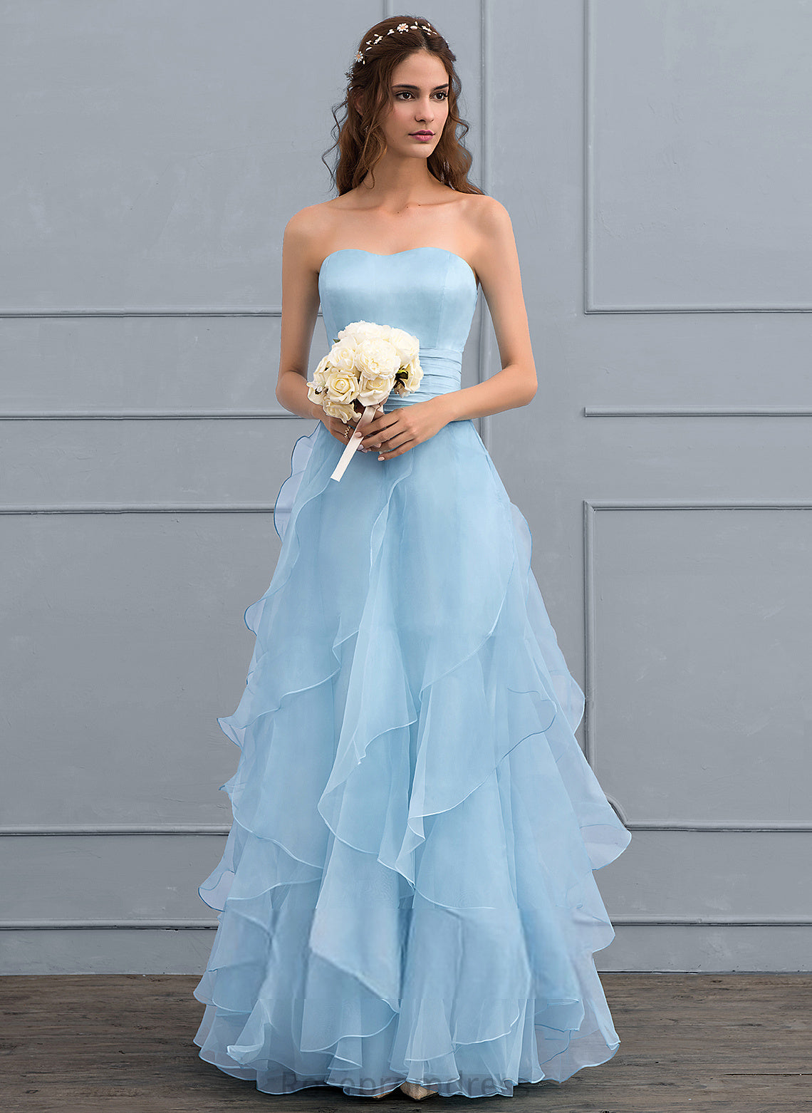 Charmeuse With Floor-Length Organza Cascading Sweetheart Wedding Wedding Dresses Ruffles Marcie A-Line Dress