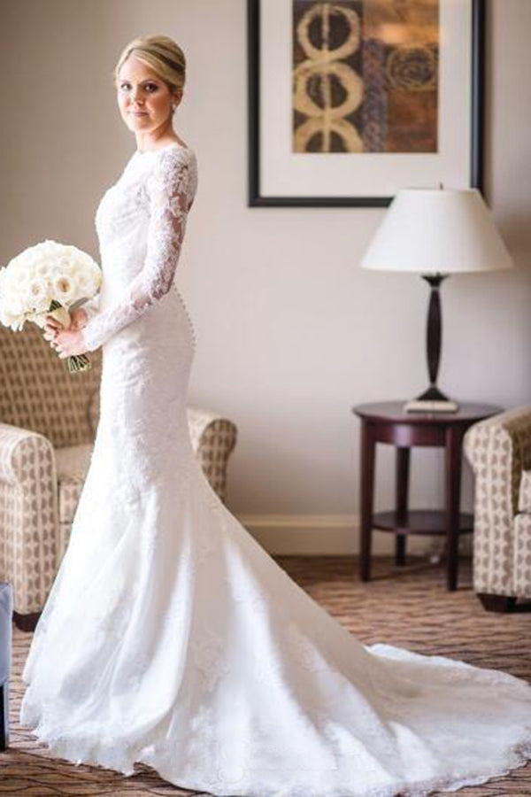Charming Lace Long Sleeves Open Back With Trailing Wedding Dresses