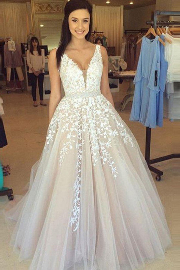Charming Long Tulle Sleeveless Appliques Wedding Dresses