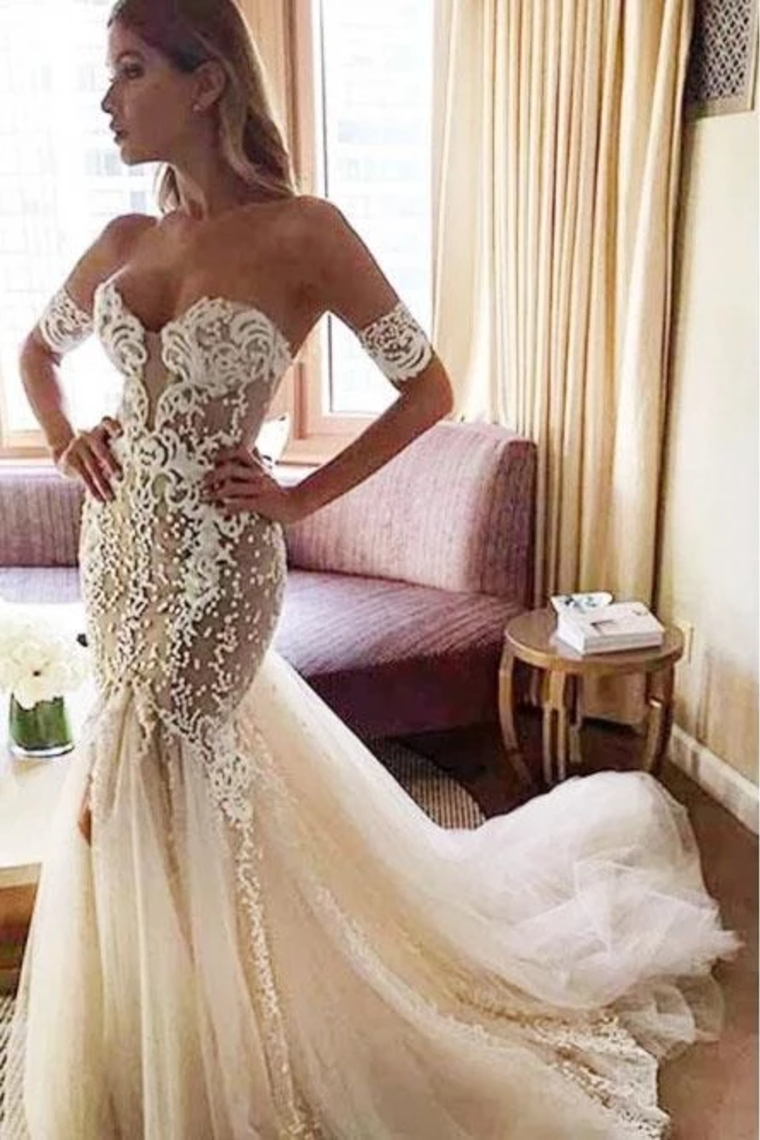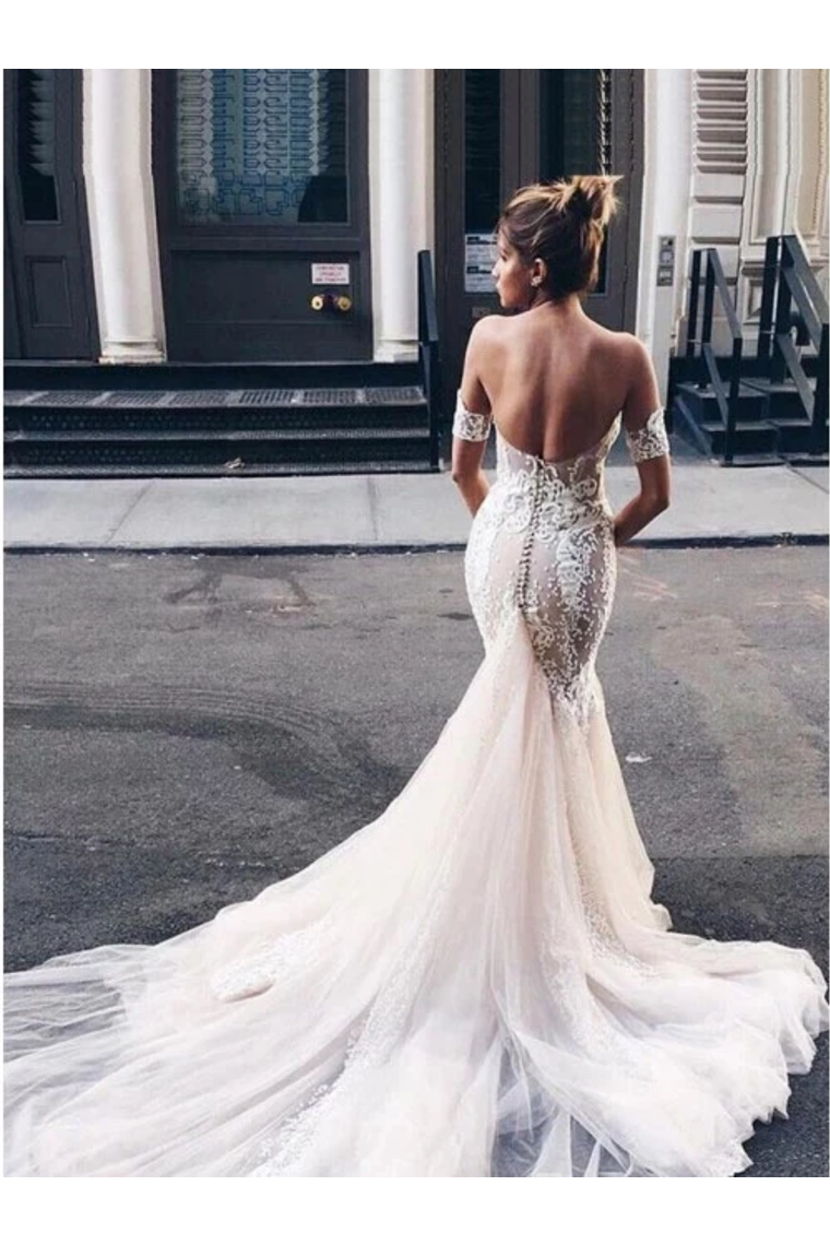 Charming Mermaid Sweetheart Backless Tulle Wedding Dresses With SRSPH8491GT