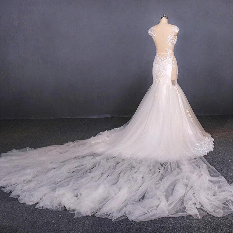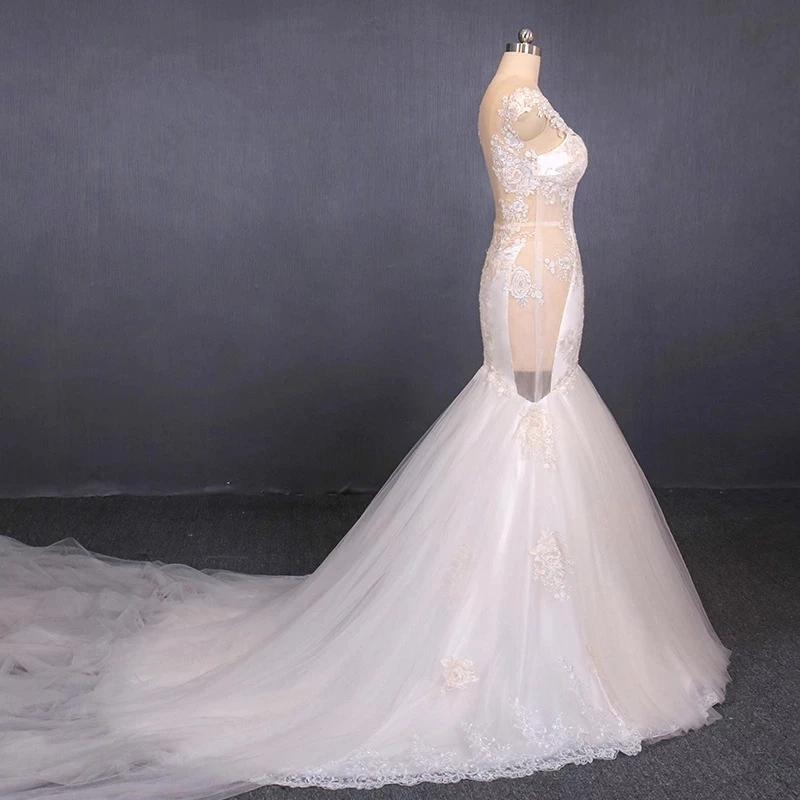 Charming Mermaid Tulle V-neck Wedding Dress, Sheer Back Long Bridal Dresses SRS15112