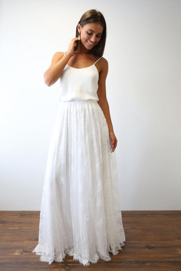 Charming Simple Ivory A Line Spaghetti Straps Lace Beach Wedding Dresses