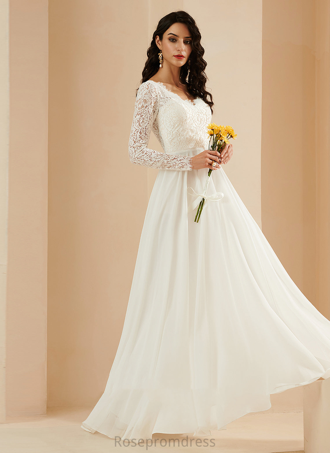 Chasity Train Wedding Dresses Wedding Lace A-Line With V-neck Sweep Chiffon Dress