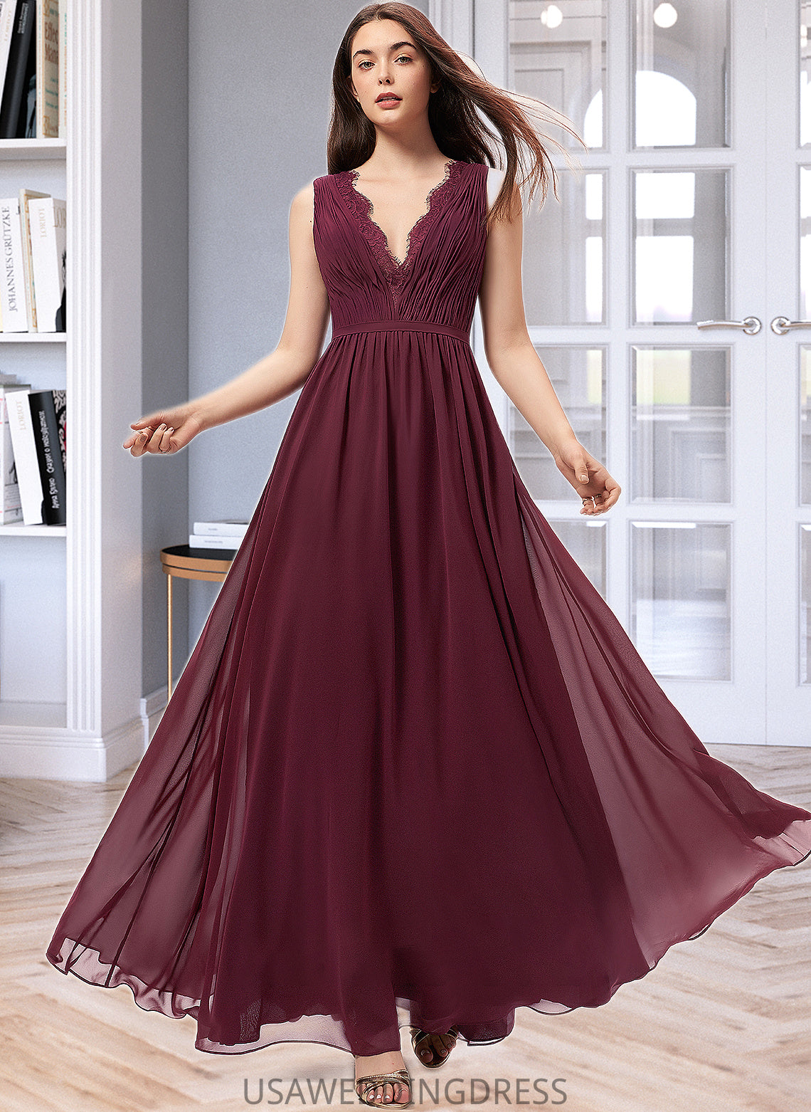 Chelsea A-Line V-neck Floor-Length Chiffon Bridesmaid Dress With Ruffle Lace DSP0013129