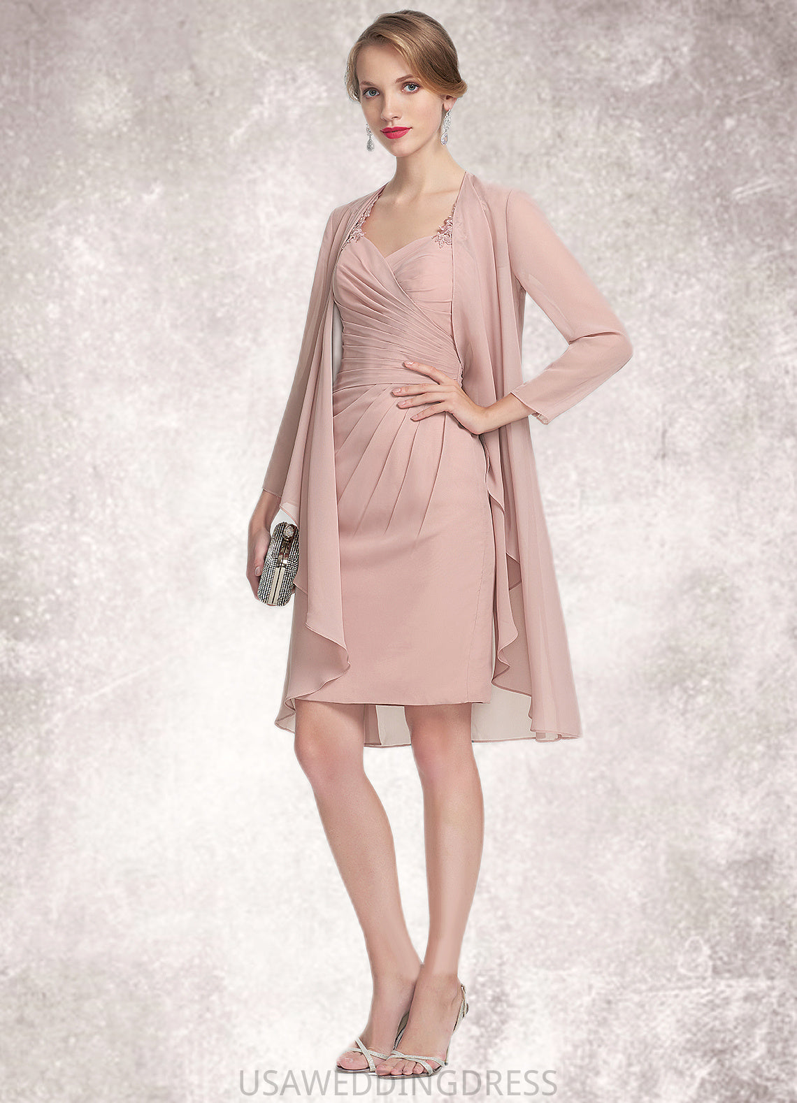Cheyenne Sheath/Column Sweetheart Knee-Length Chiffon Mother of the Bride Dress With Ruffle Lace DS126P0014929