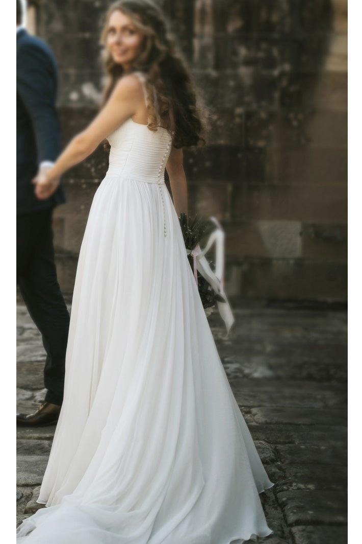 Chic Fairy Elegant Long A-line Zipper Back V Neck Sleeveless Chiffon Beach Wedding Dresses With Button